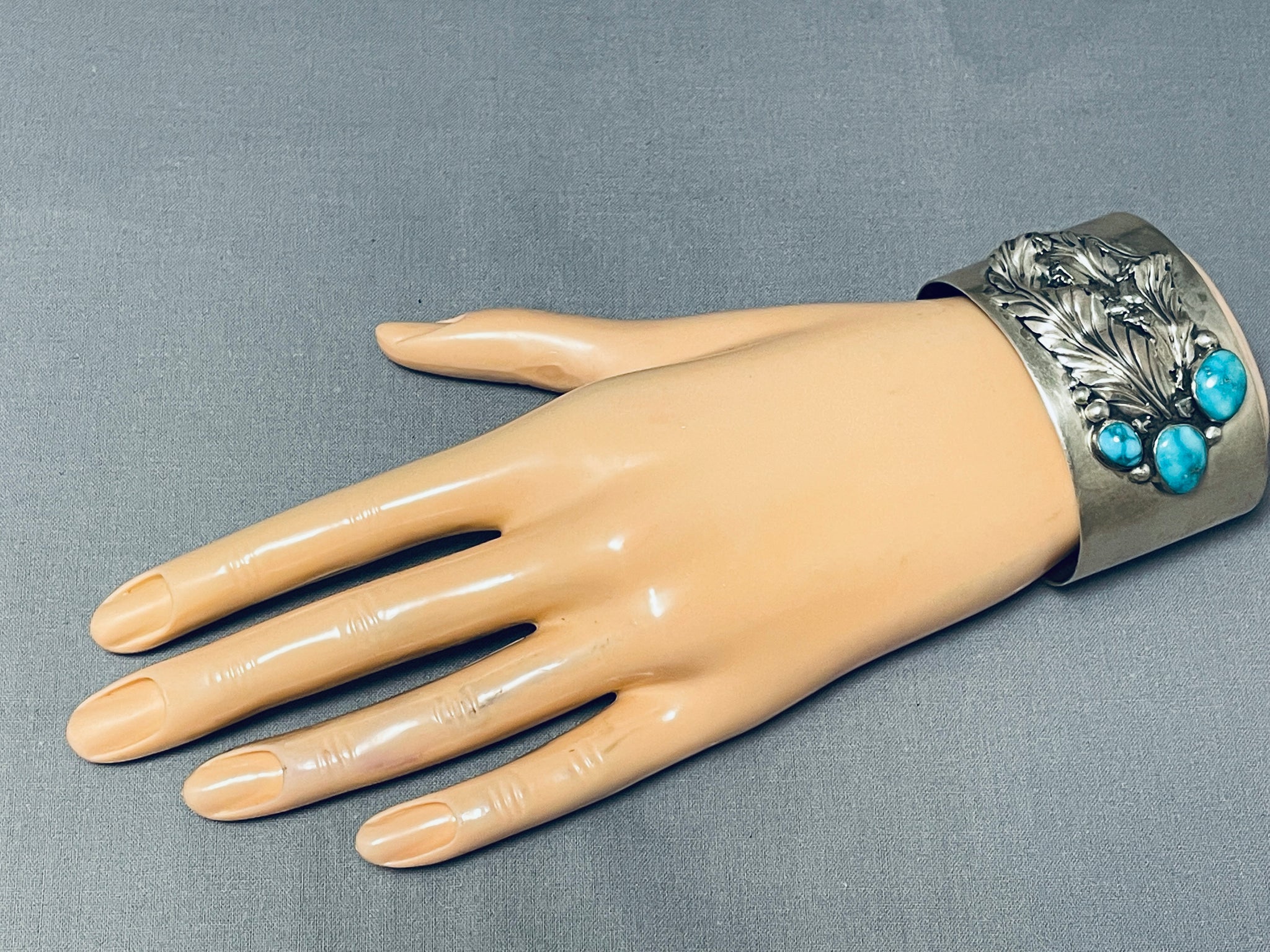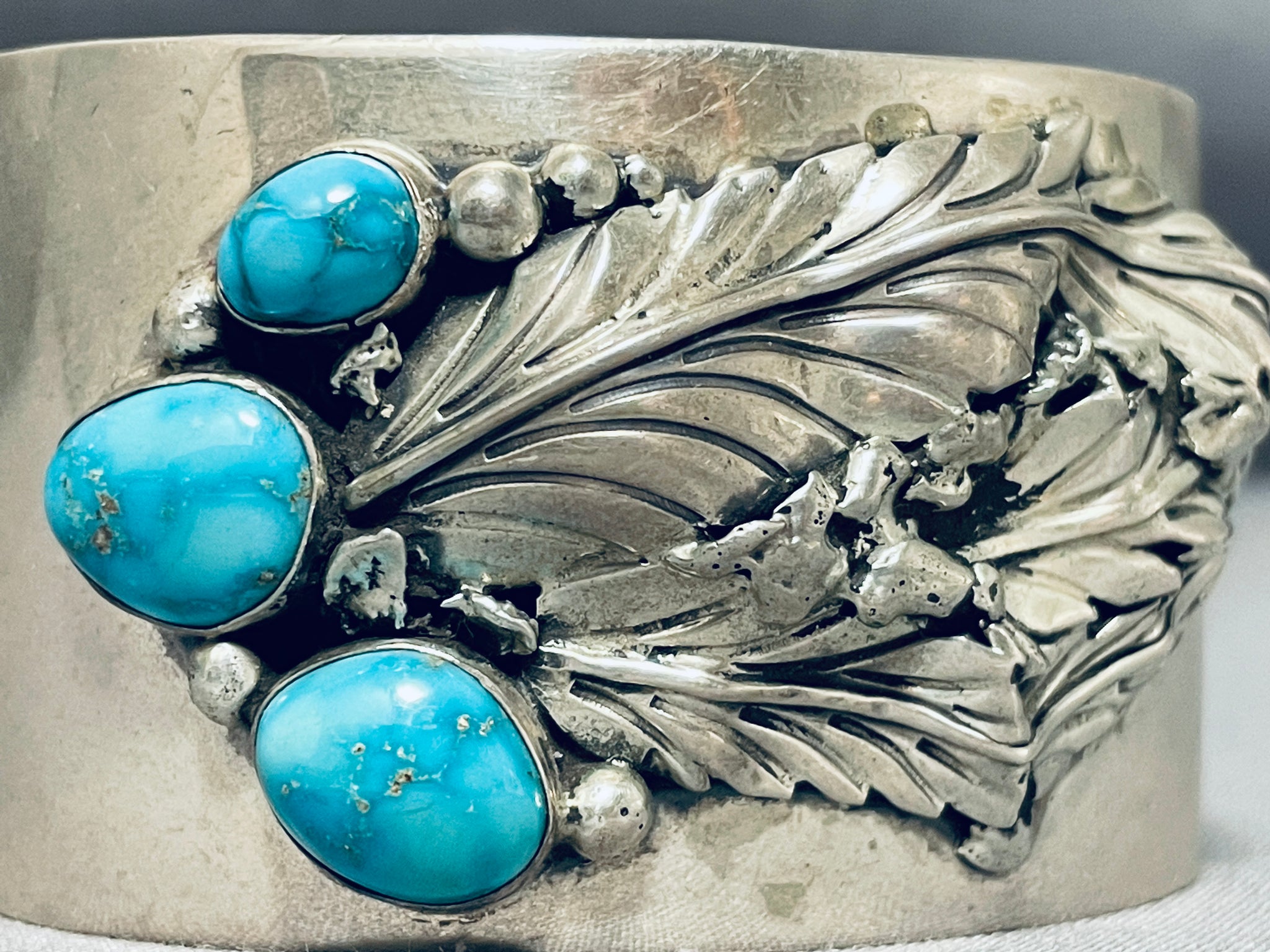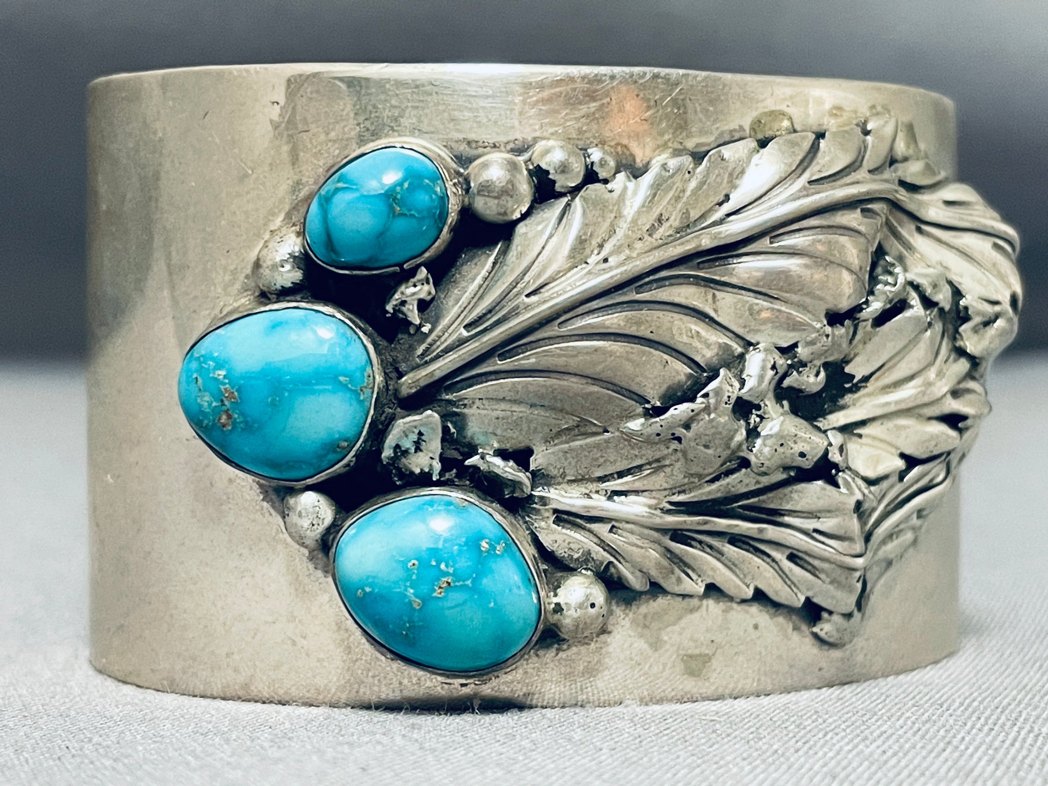 Important Blue Thunder Turquoise Vintage Native American Navajo Sterling Silver Bracelet