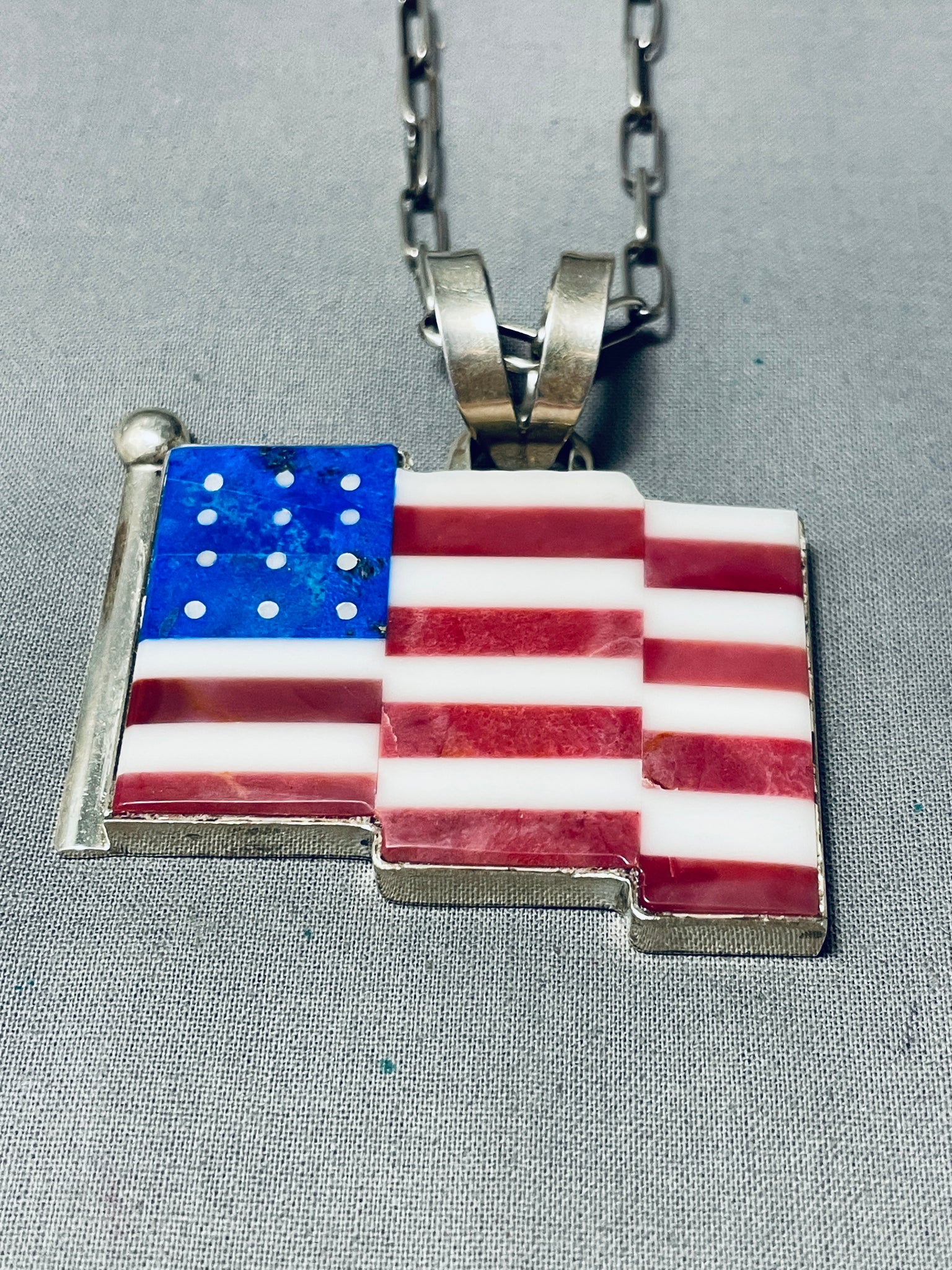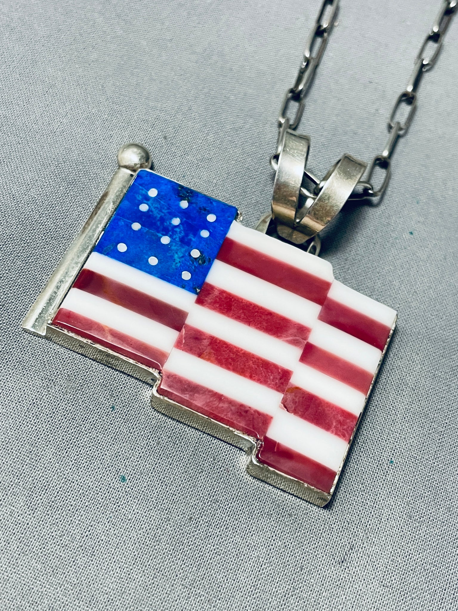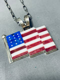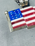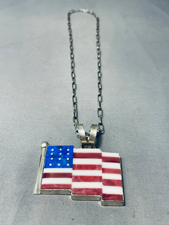 Important Cal Desson Thick Native American Navajo American Flag Sterling Silver Necklace