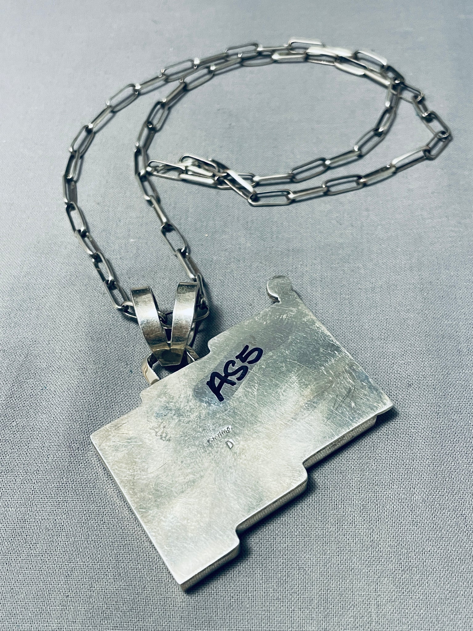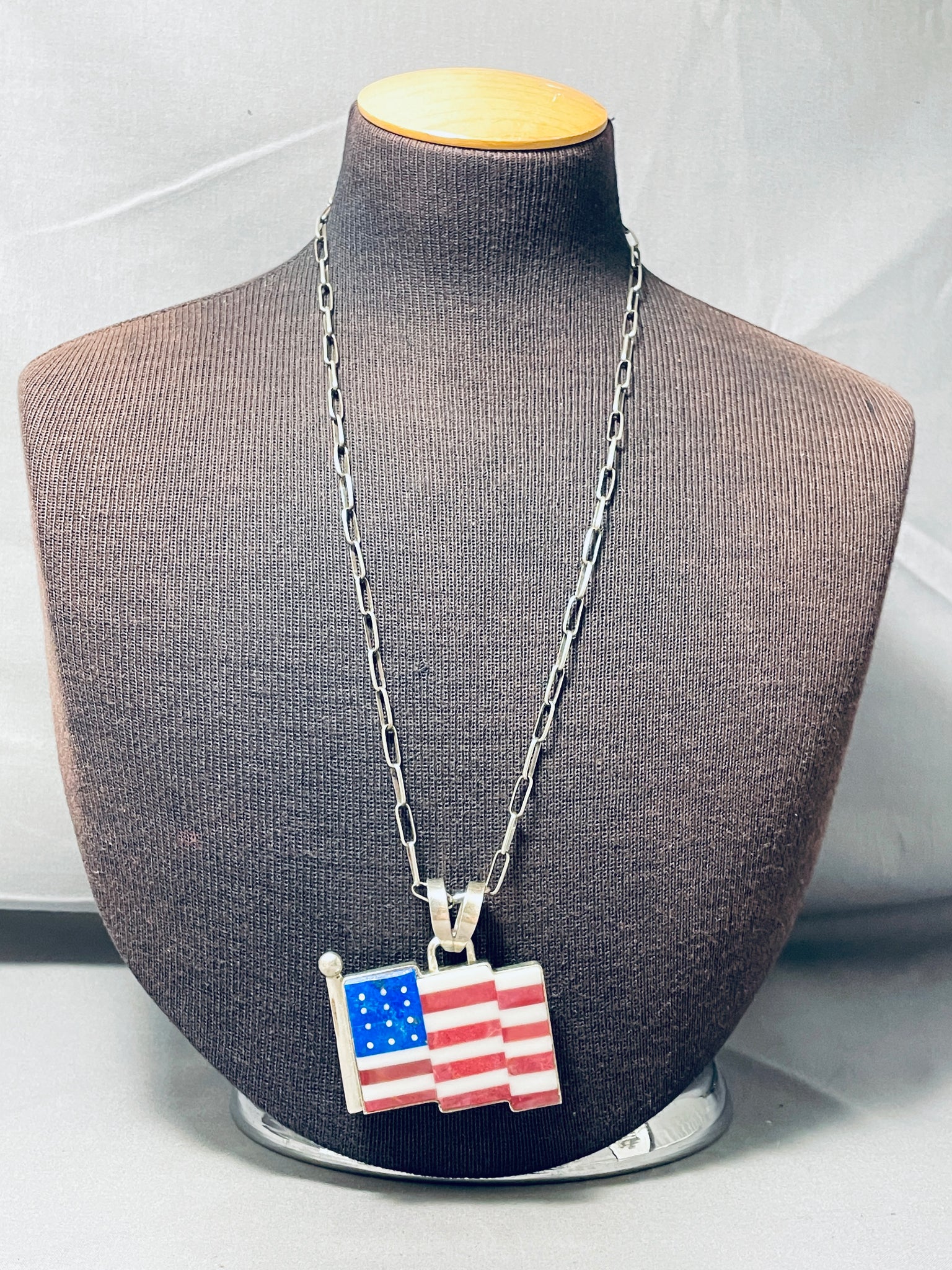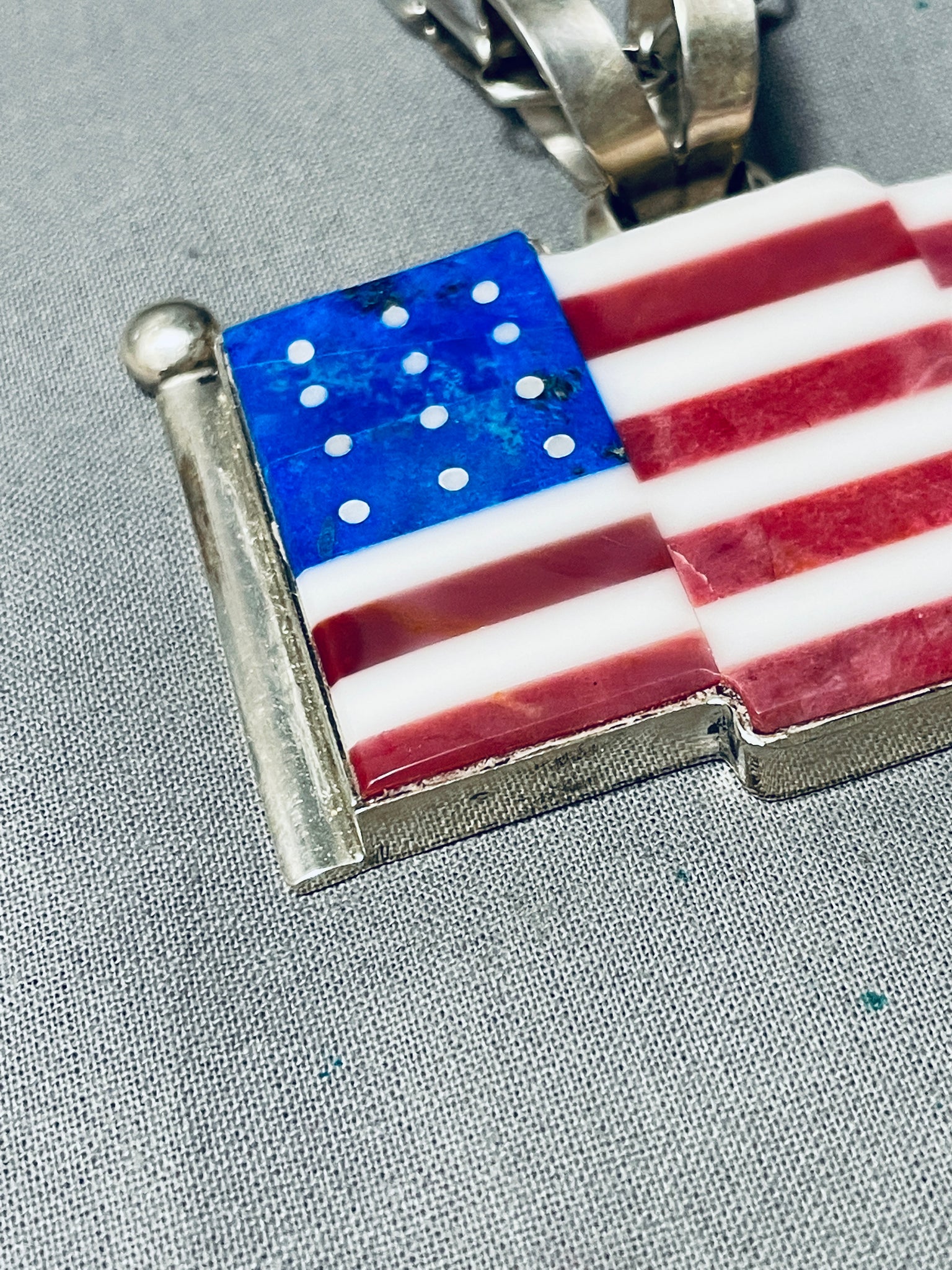 Important Cal Desson Thick Native American Navajo American Flag Sterling Silver Necklace
