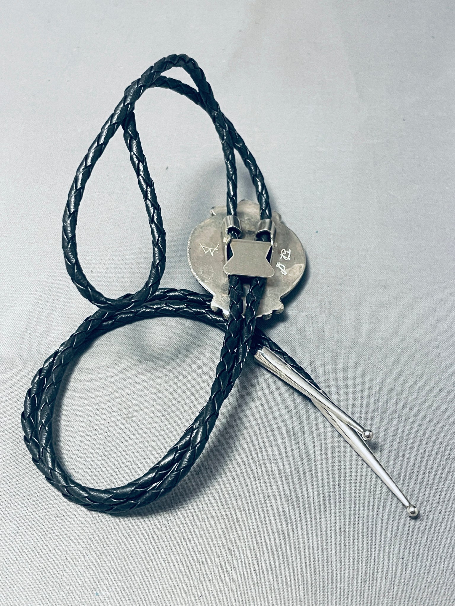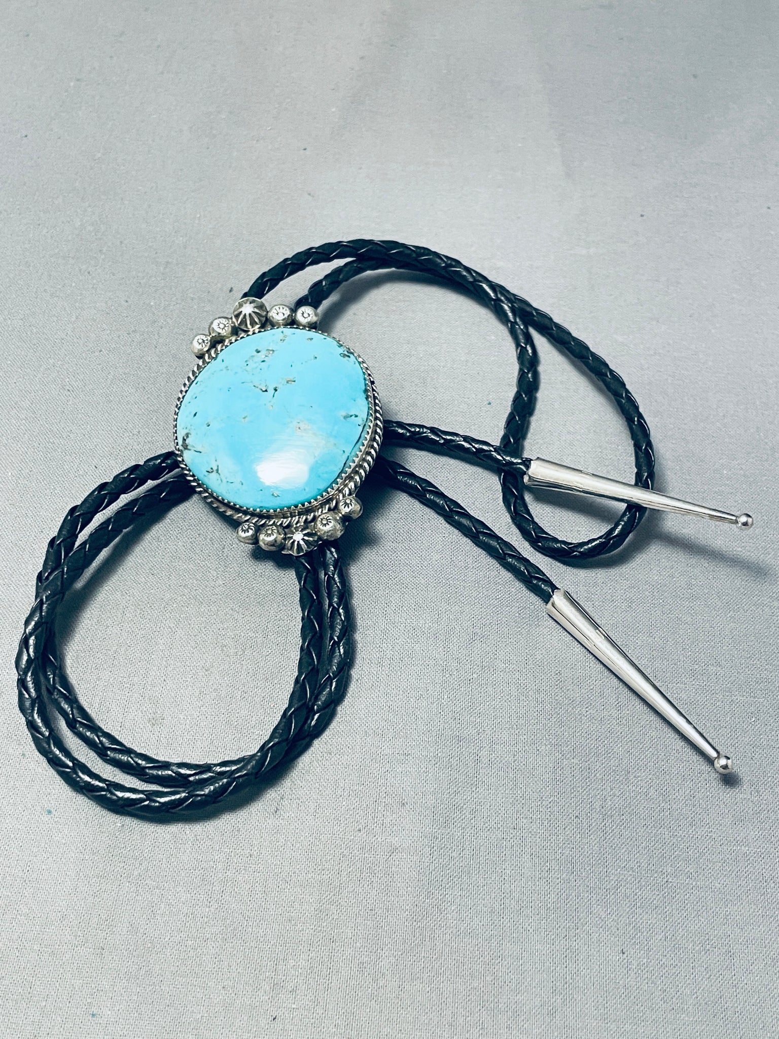 Important Daniel Benally Vintage Native American Navajo Turquoise Sterling Silver Bolo Tie