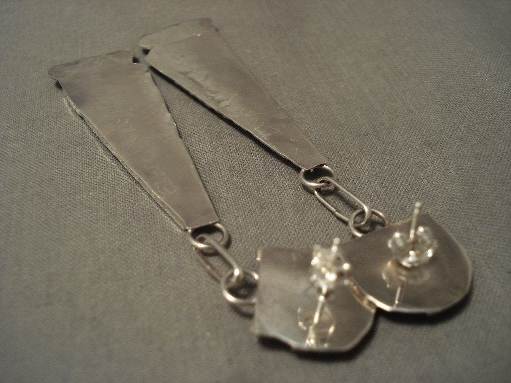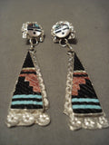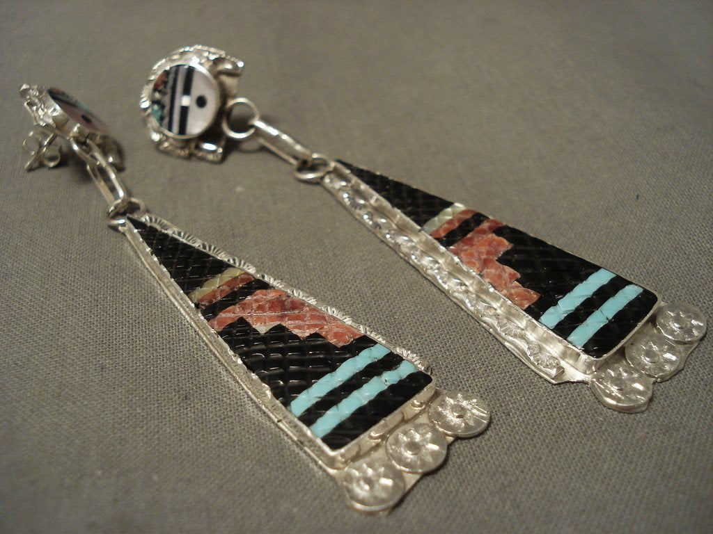 Important Eldred Martinez Zuni Turquoise Native American Jewelry Silver Earrings