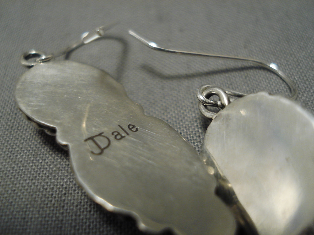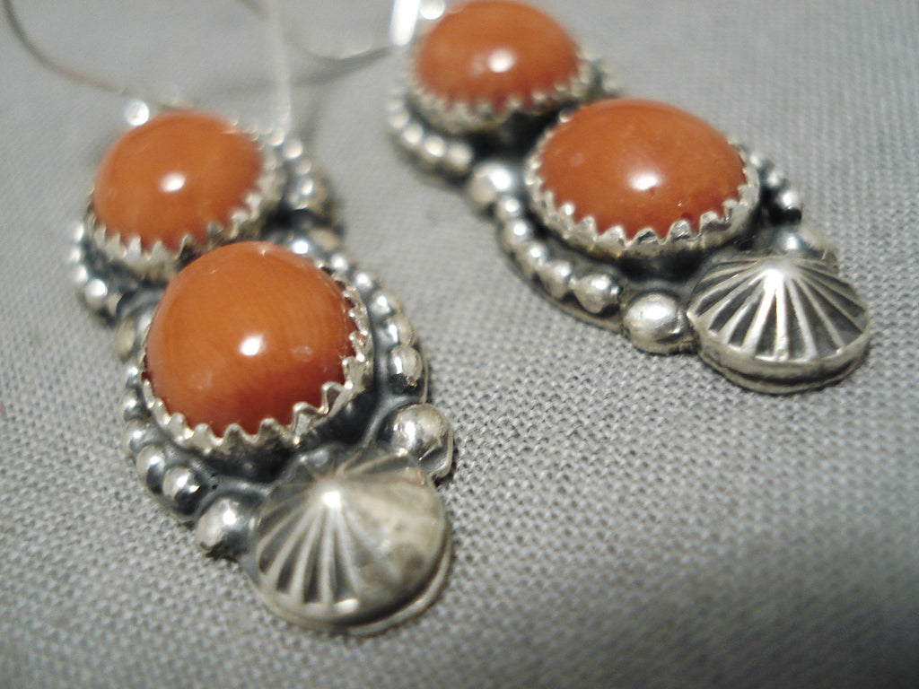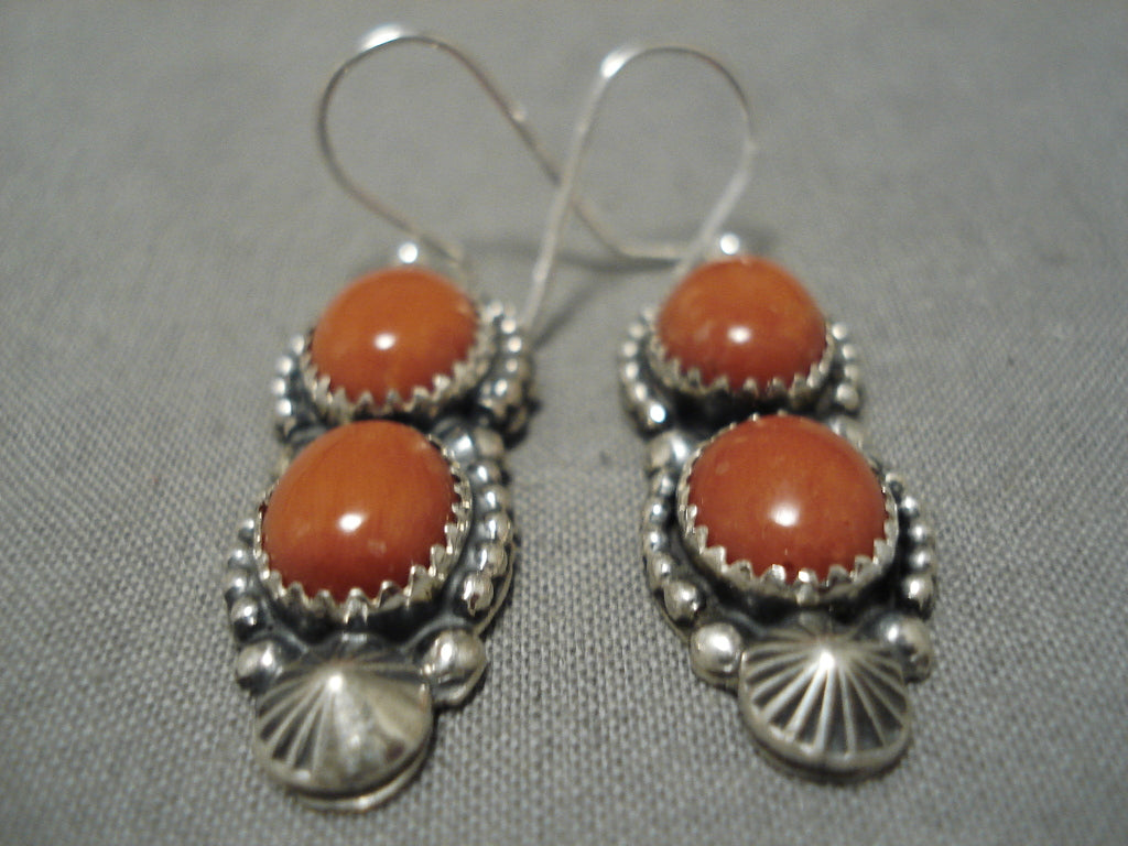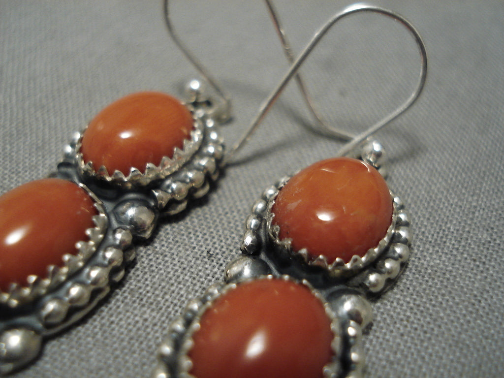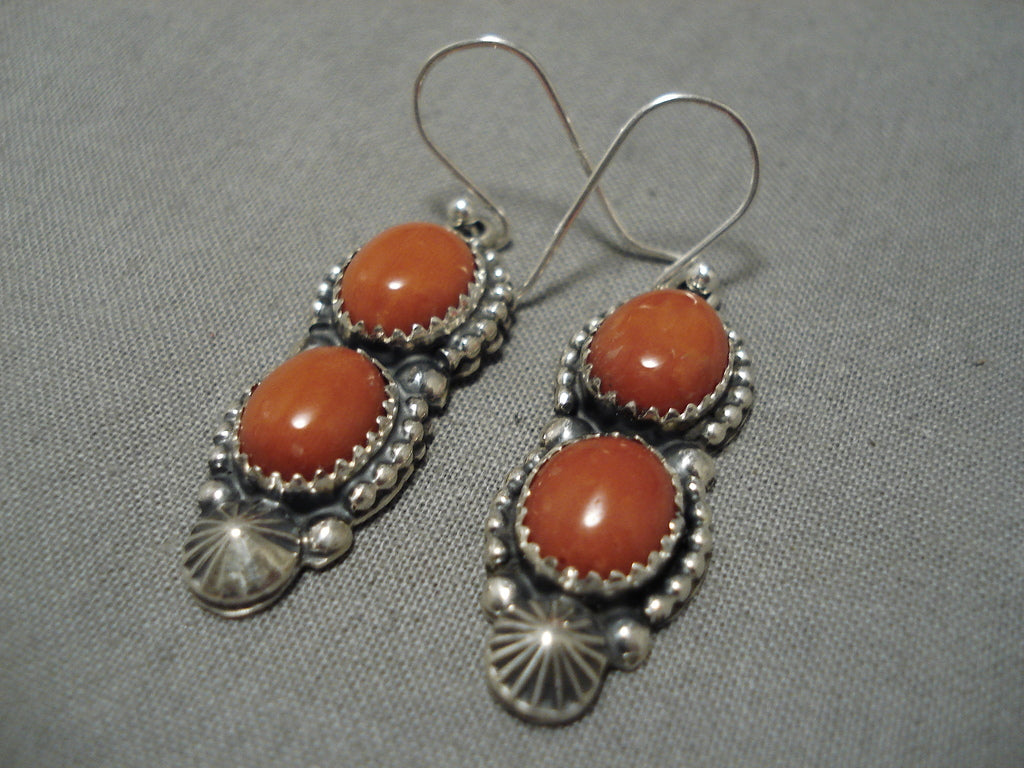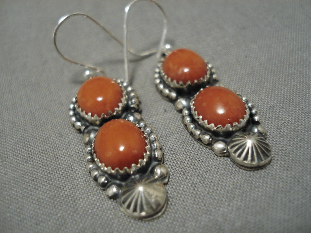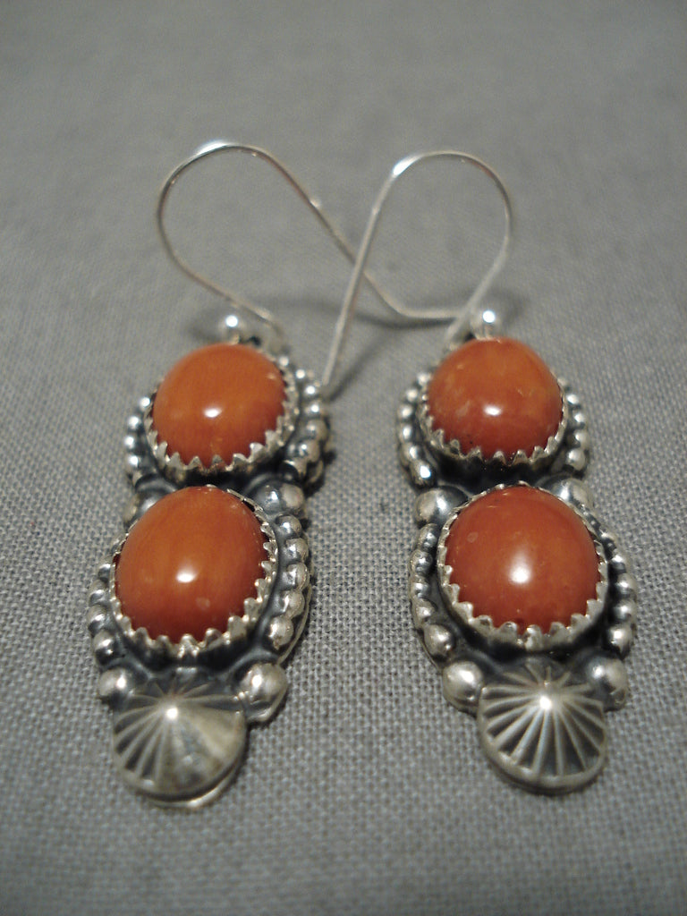 Important Fabulous Native American Navajo Jeanette Dale Sterling Silver Native American Navajo Coral Earrings