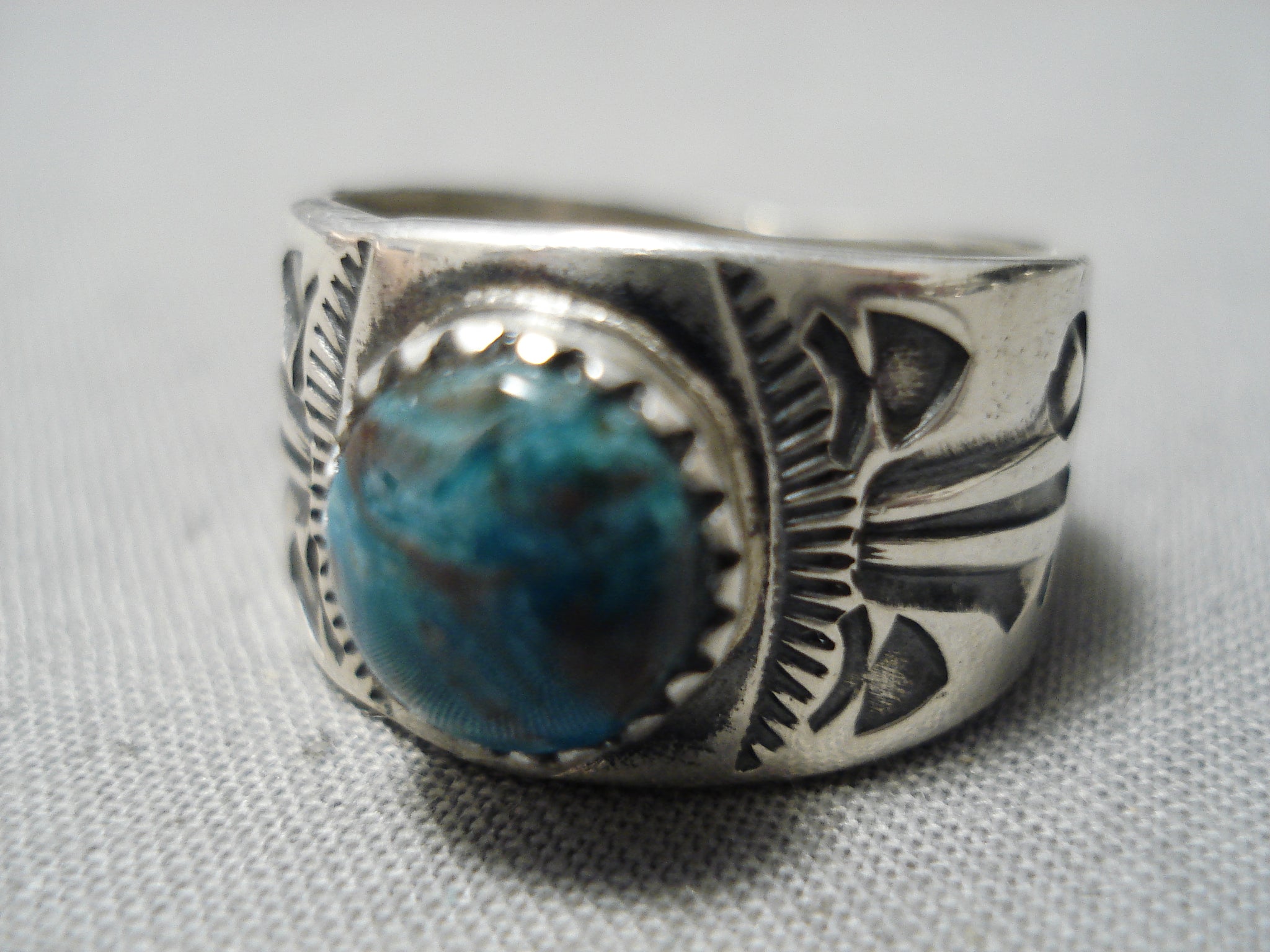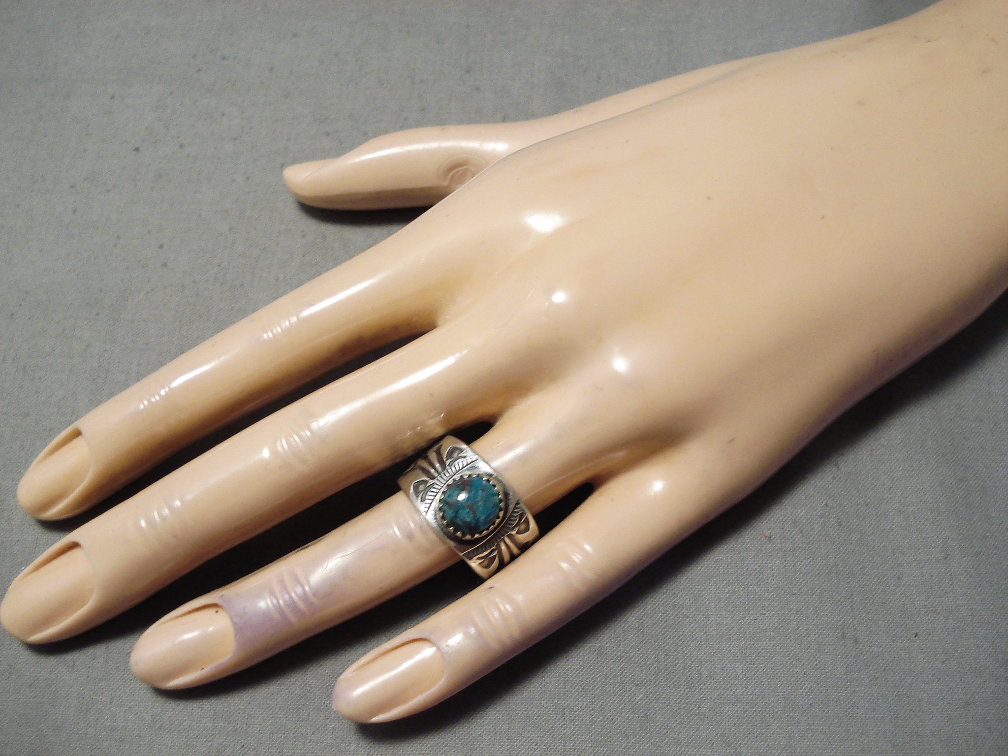 Important Female Artist Native American Navajo Turquoise Sterling Silver Ring
