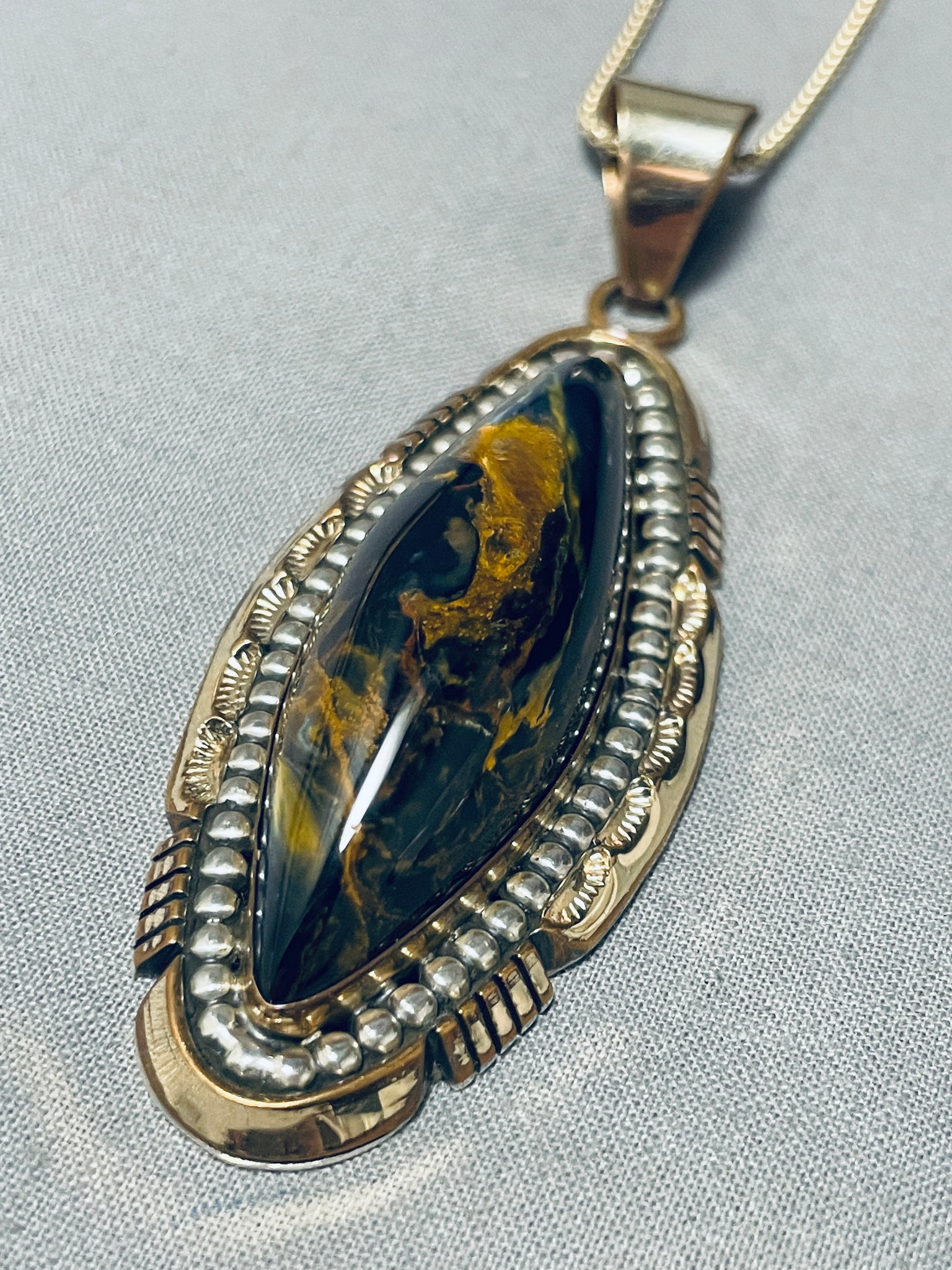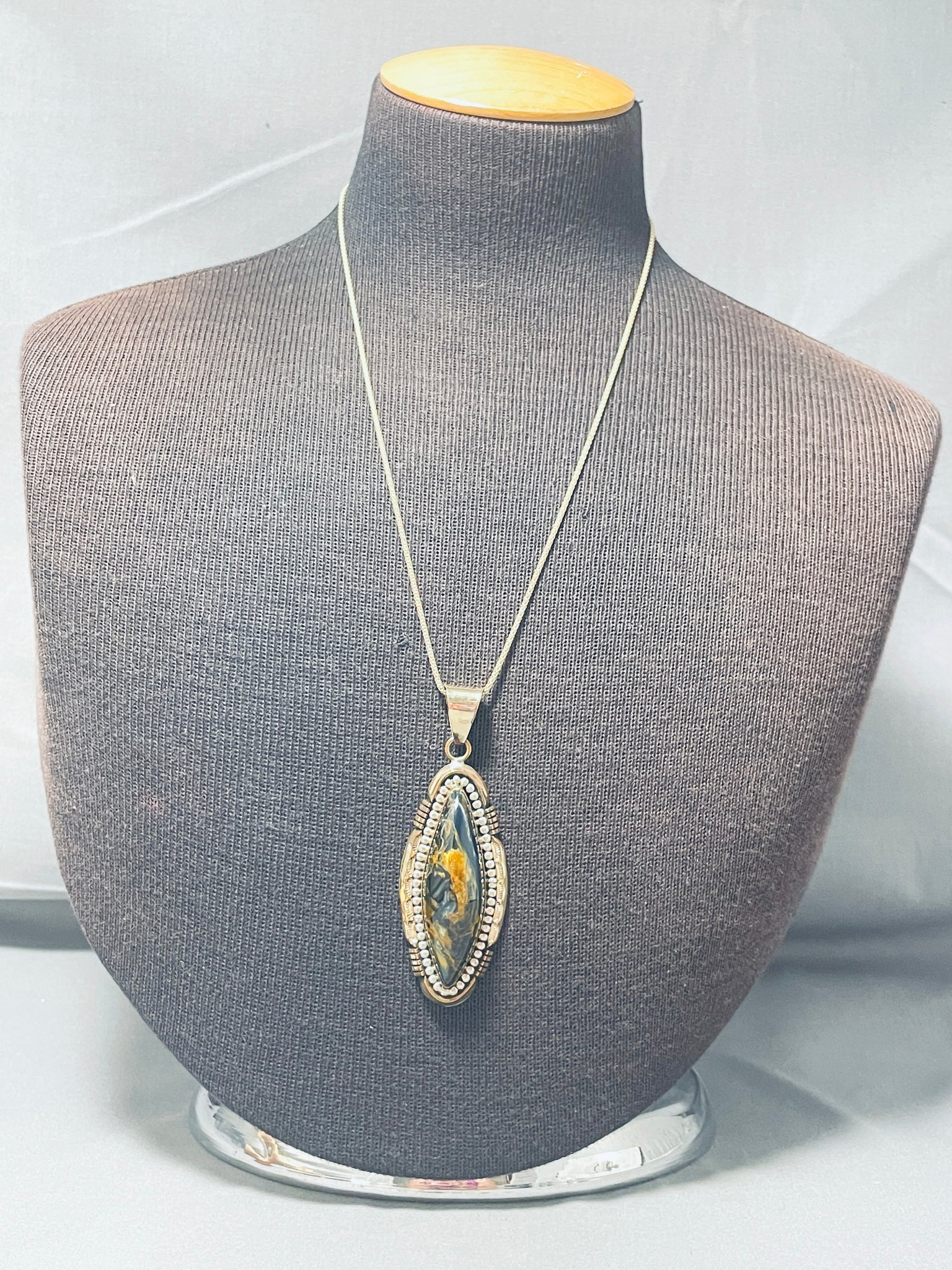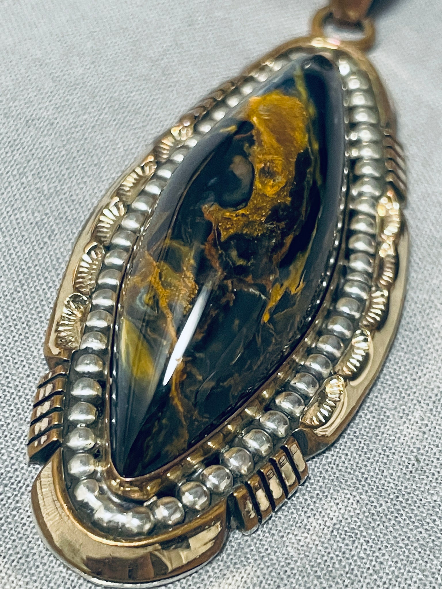 Important Gold Brown Stone Native American Navajo Sterling Silver Necklace