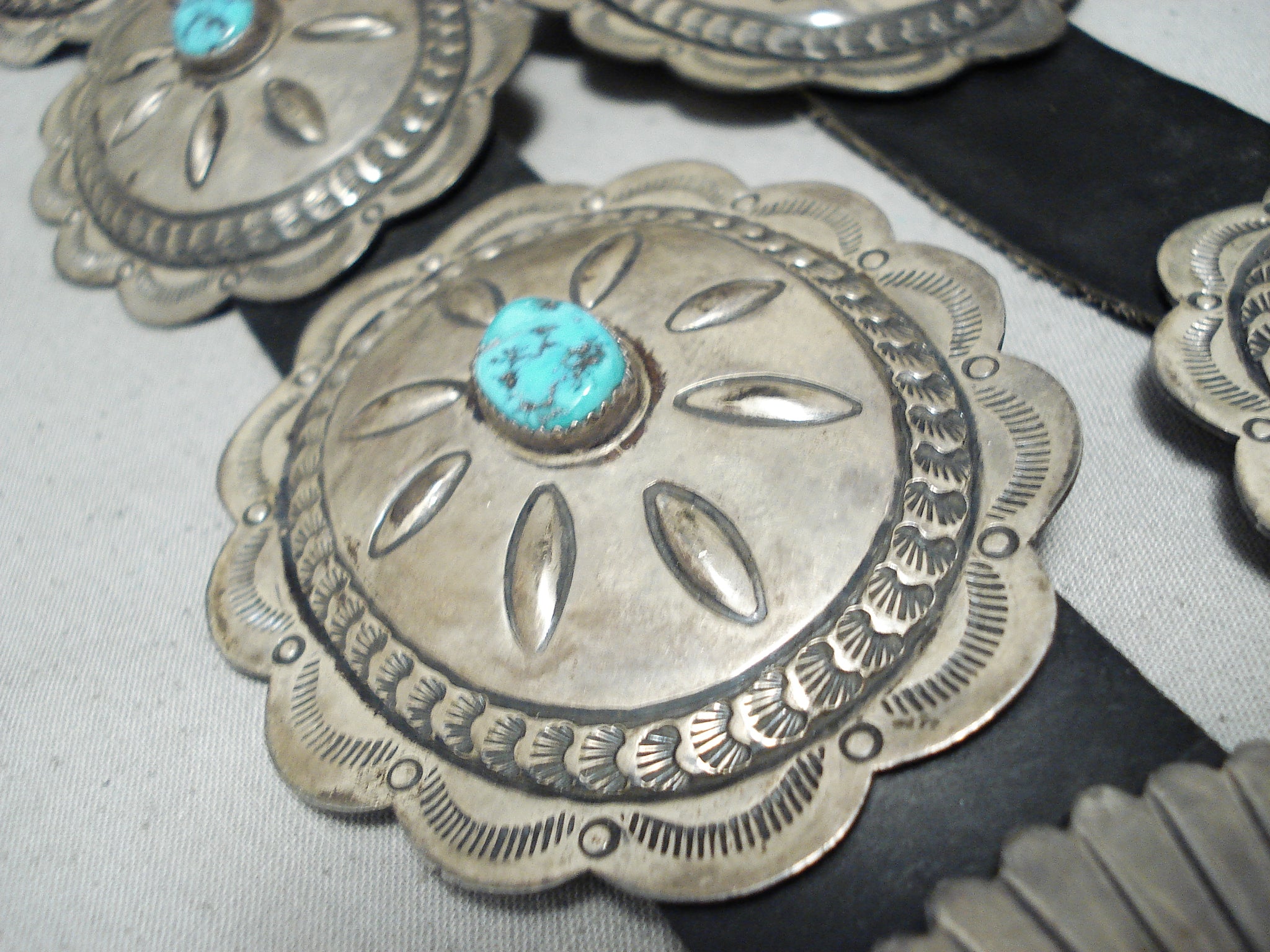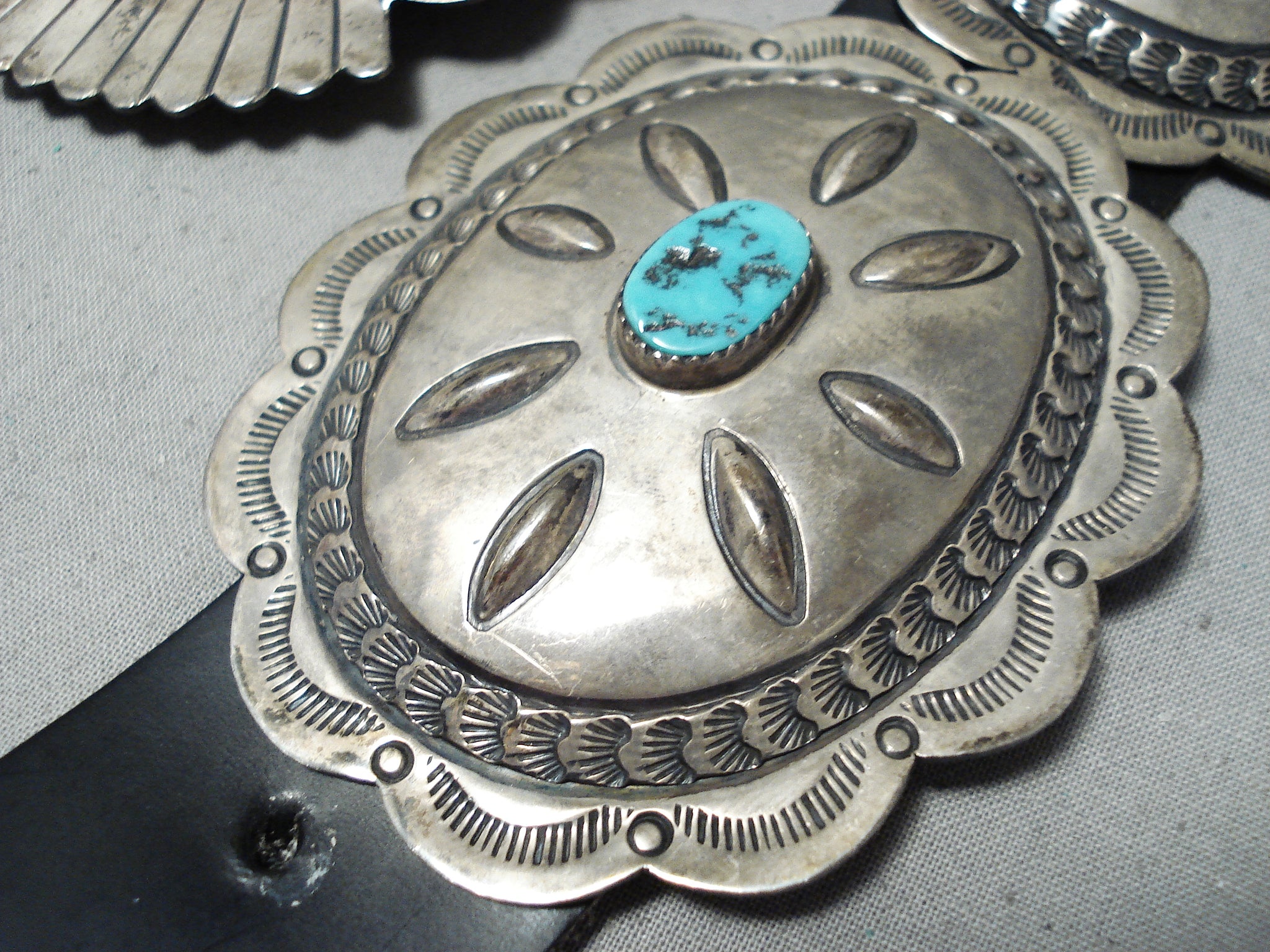 Important Guild Artist Vintage Native American Navajo Turquoise Sterling Silver Concho Belt
