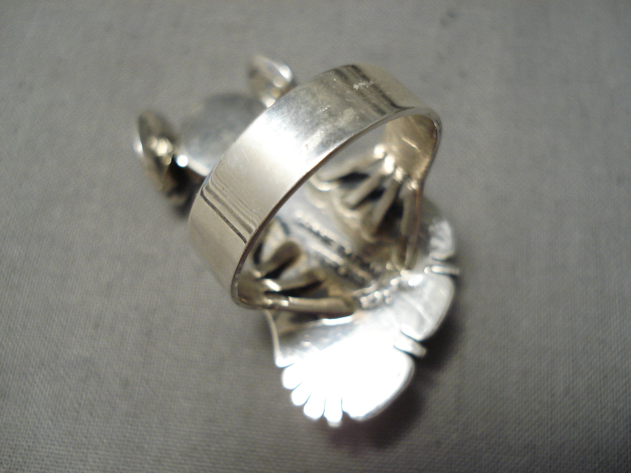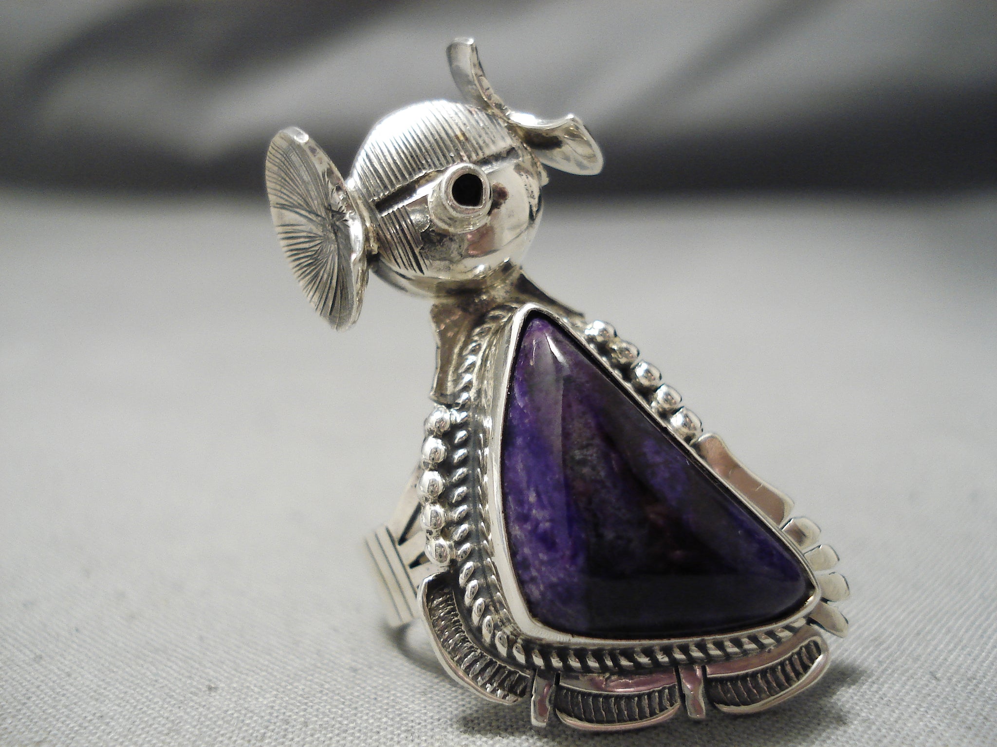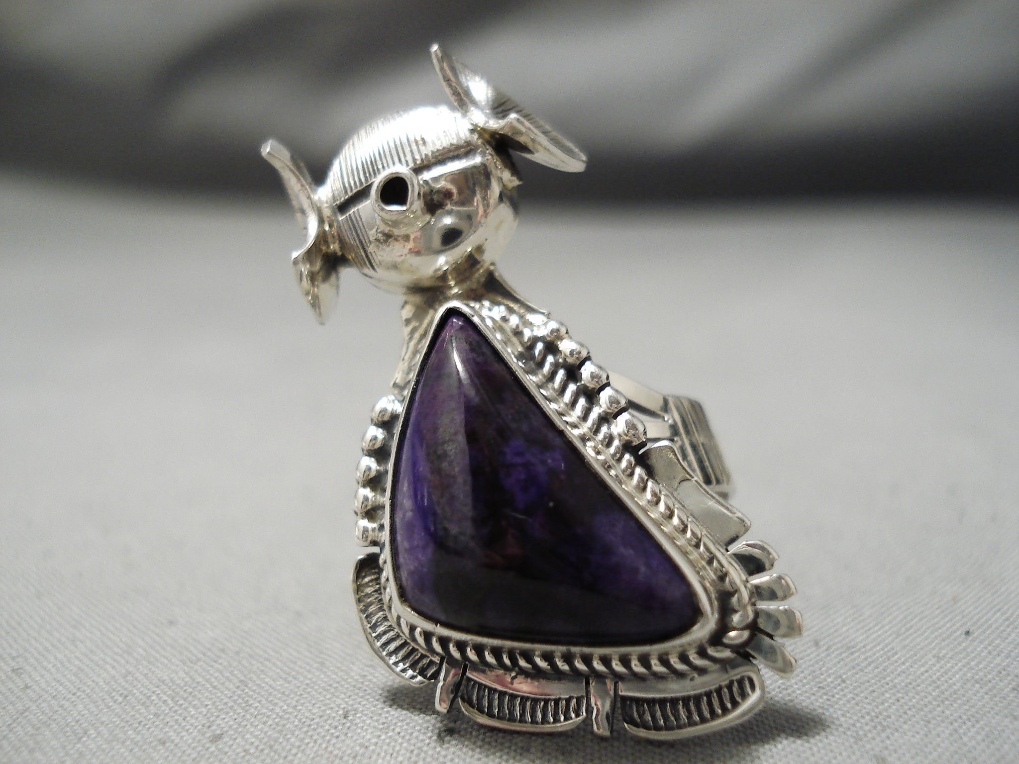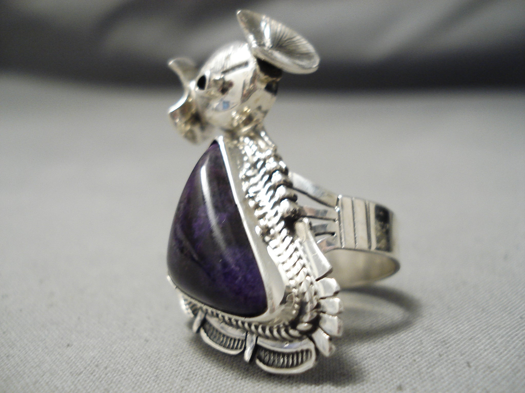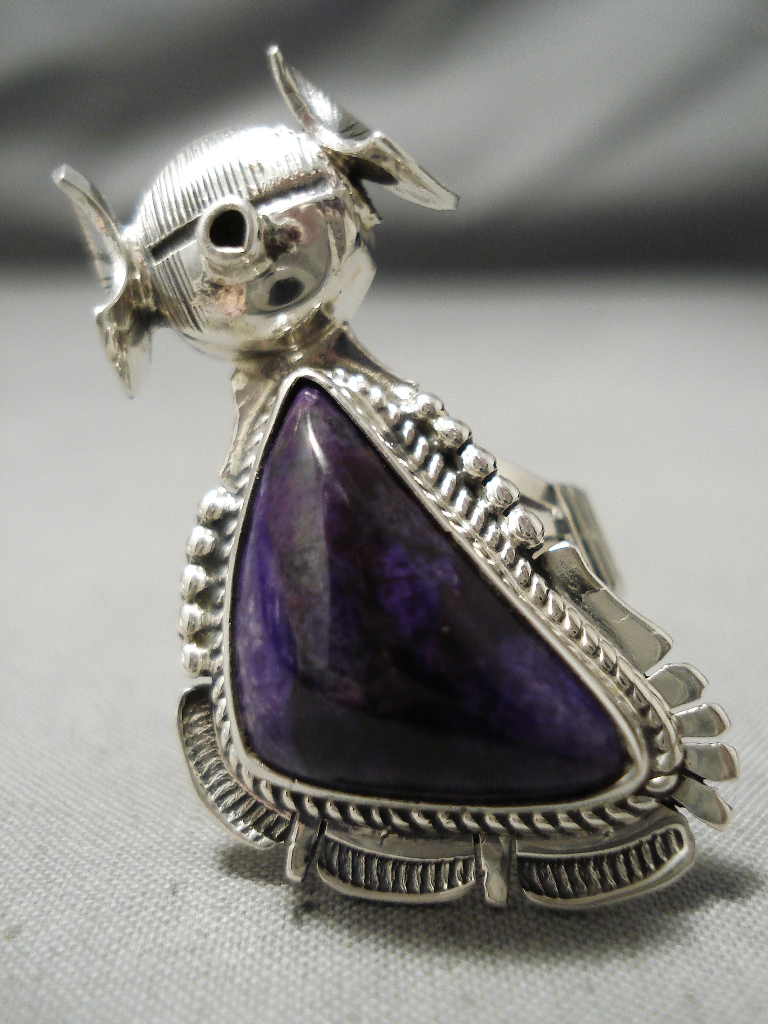 Important Hand Carved Native American Navajo Sugulite Sterling Silver Kachina Ring