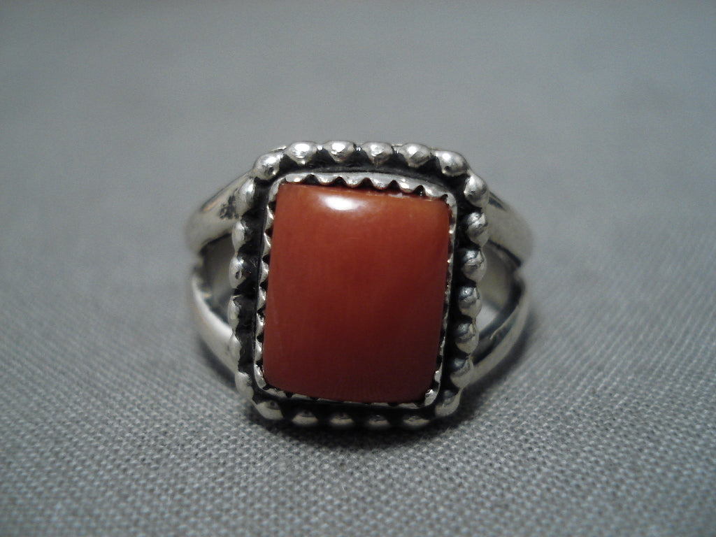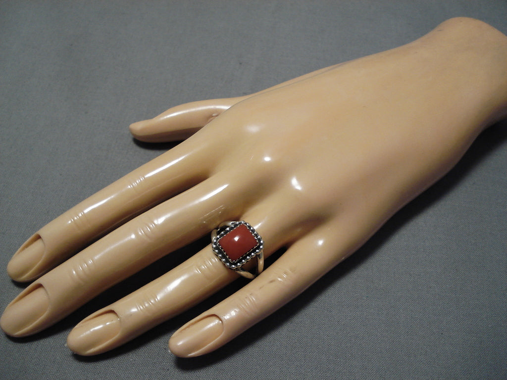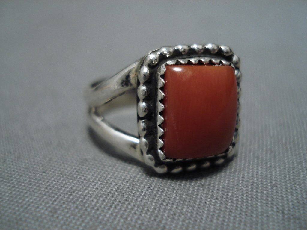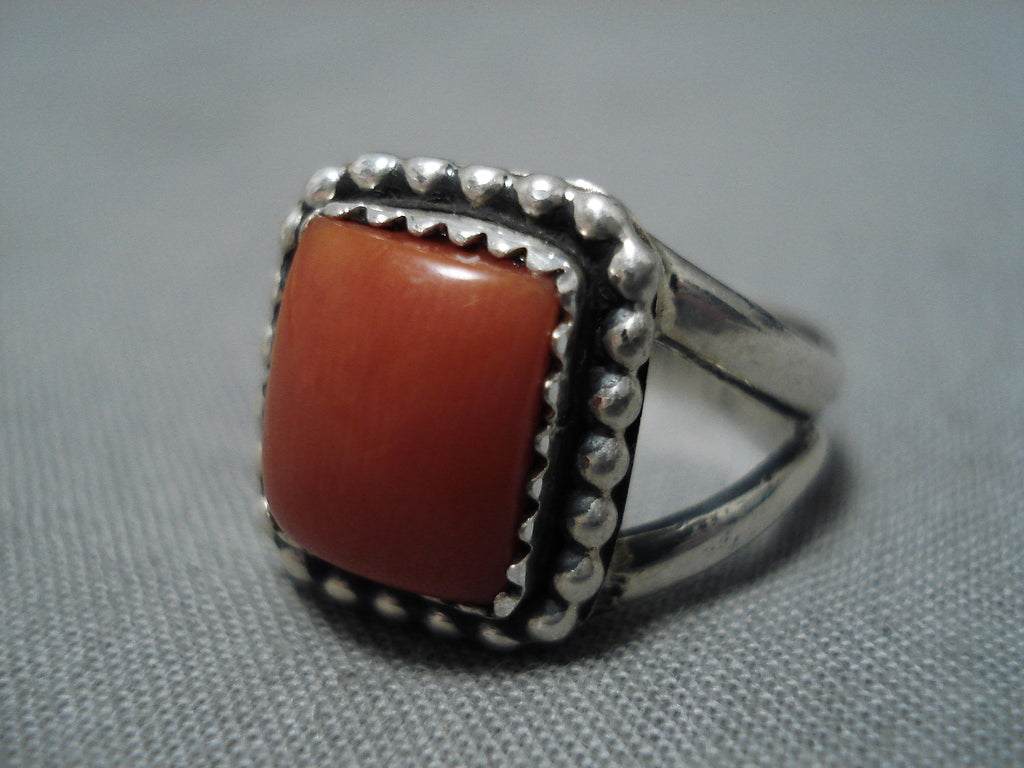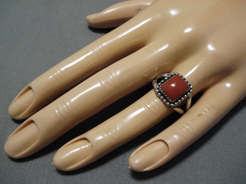 Important Jeanette Dale Navajo Native American Sterling Silver Coral Ring