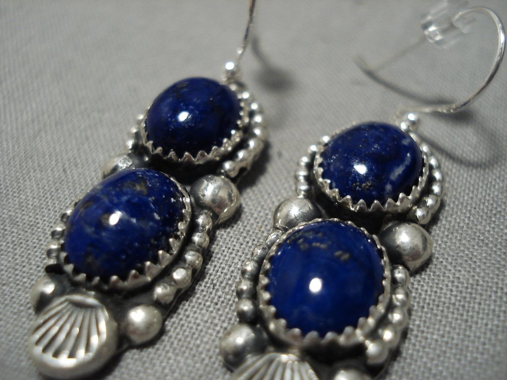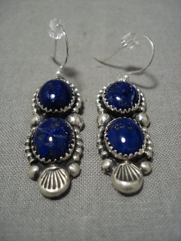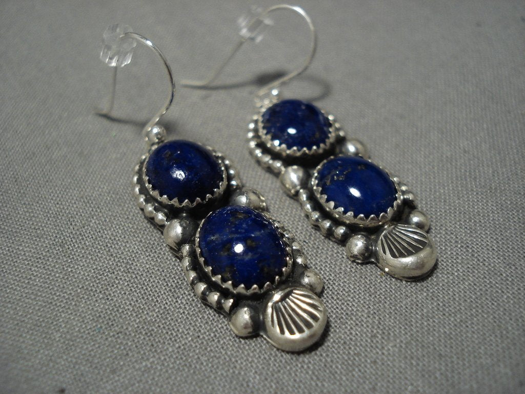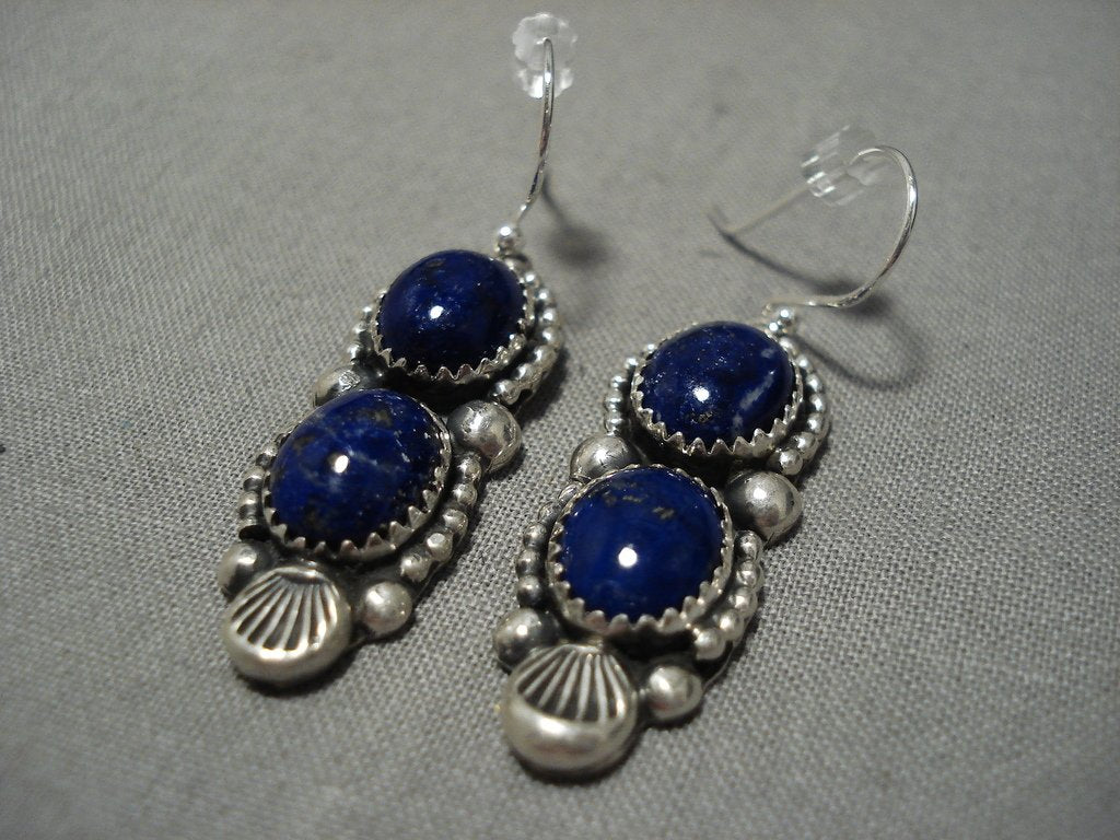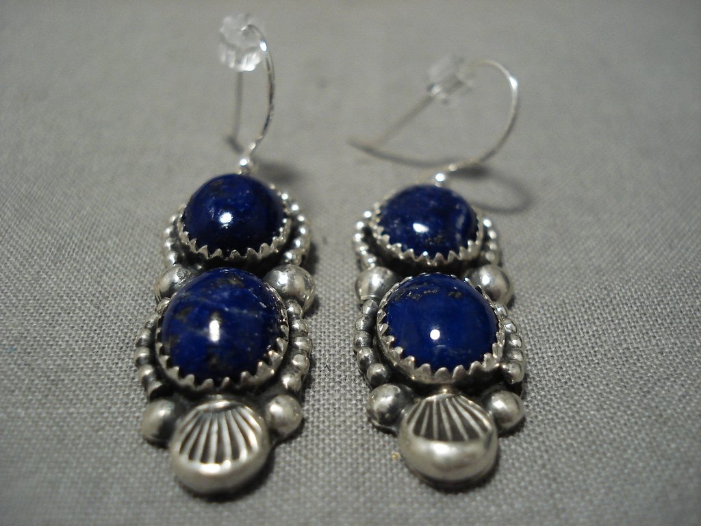 Important Jeanette Dale Navajo Sterling Silver Lapis Earrings Native American
