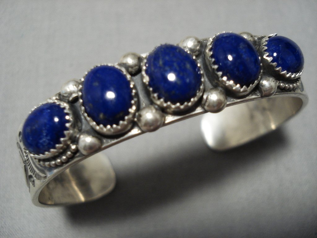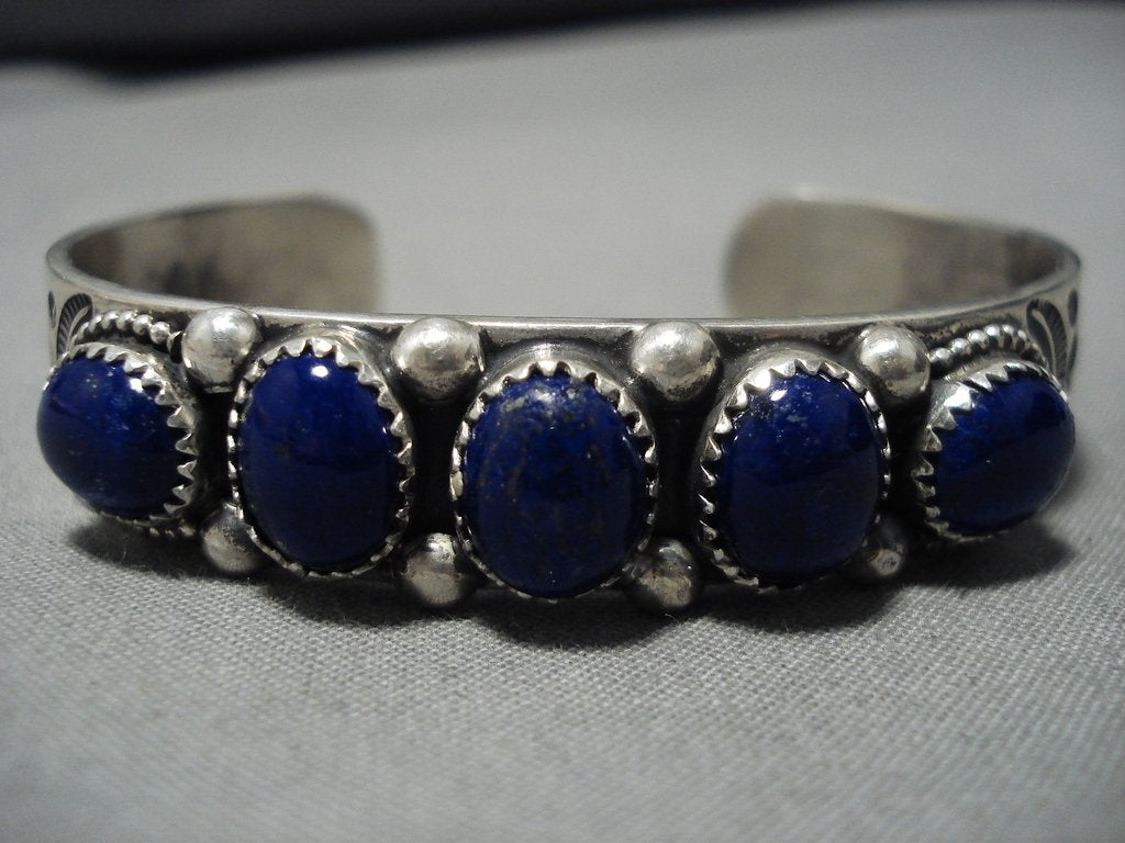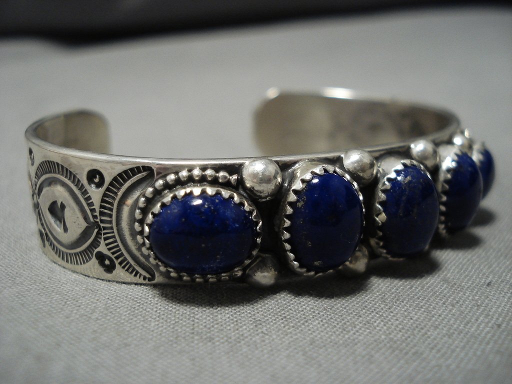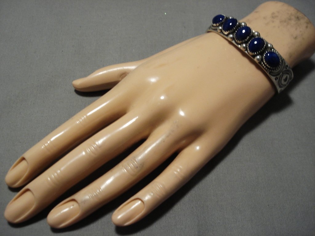 Important Jeanette Dale Sterling Silver Lapis Native American Navajo Bracelet Cuff