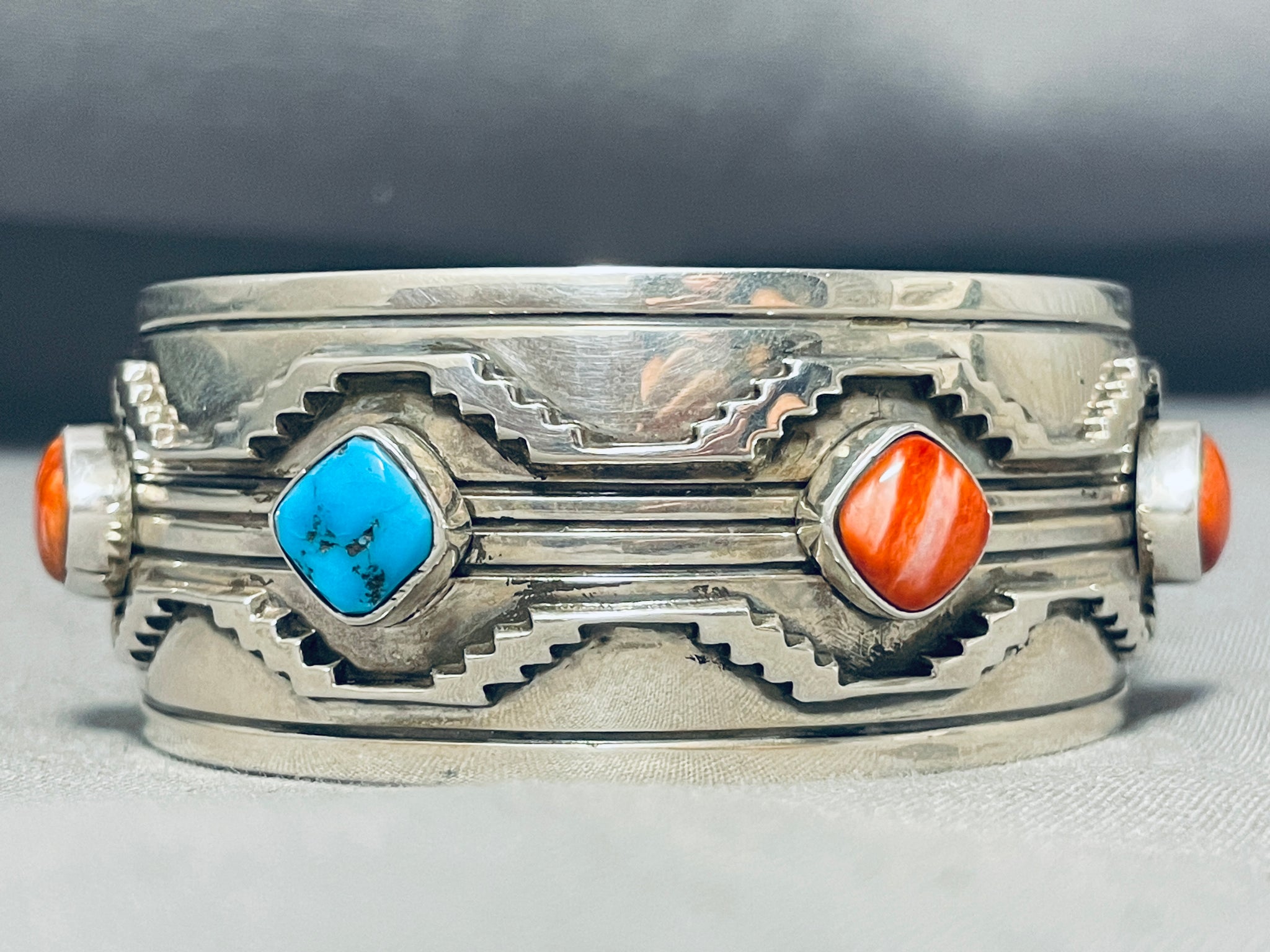 Important Kee Family Vintage Native American Navajo Turquoise Shell Sterling Silver Bracelet