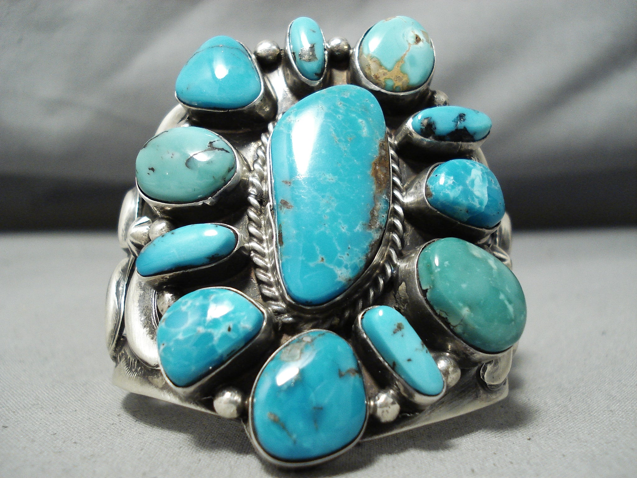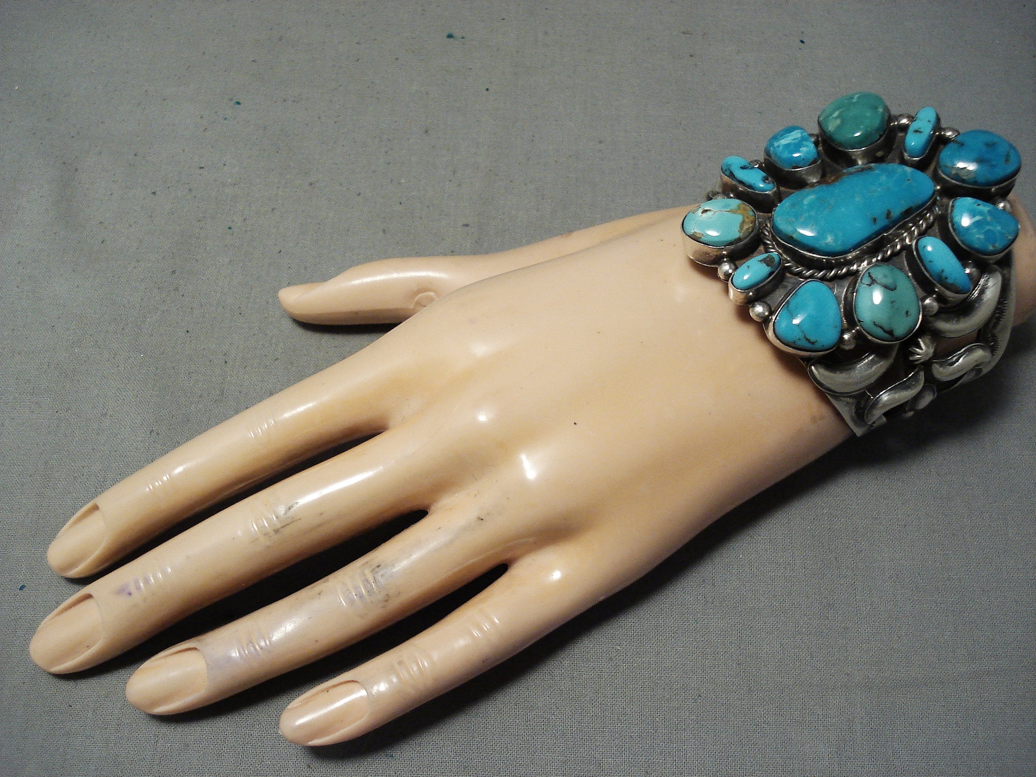 Important Kee Vintage Native American Navajo Turquoise Sterling Silver Bracelet