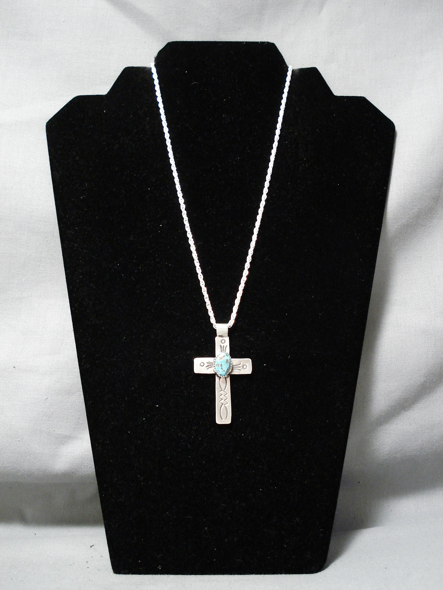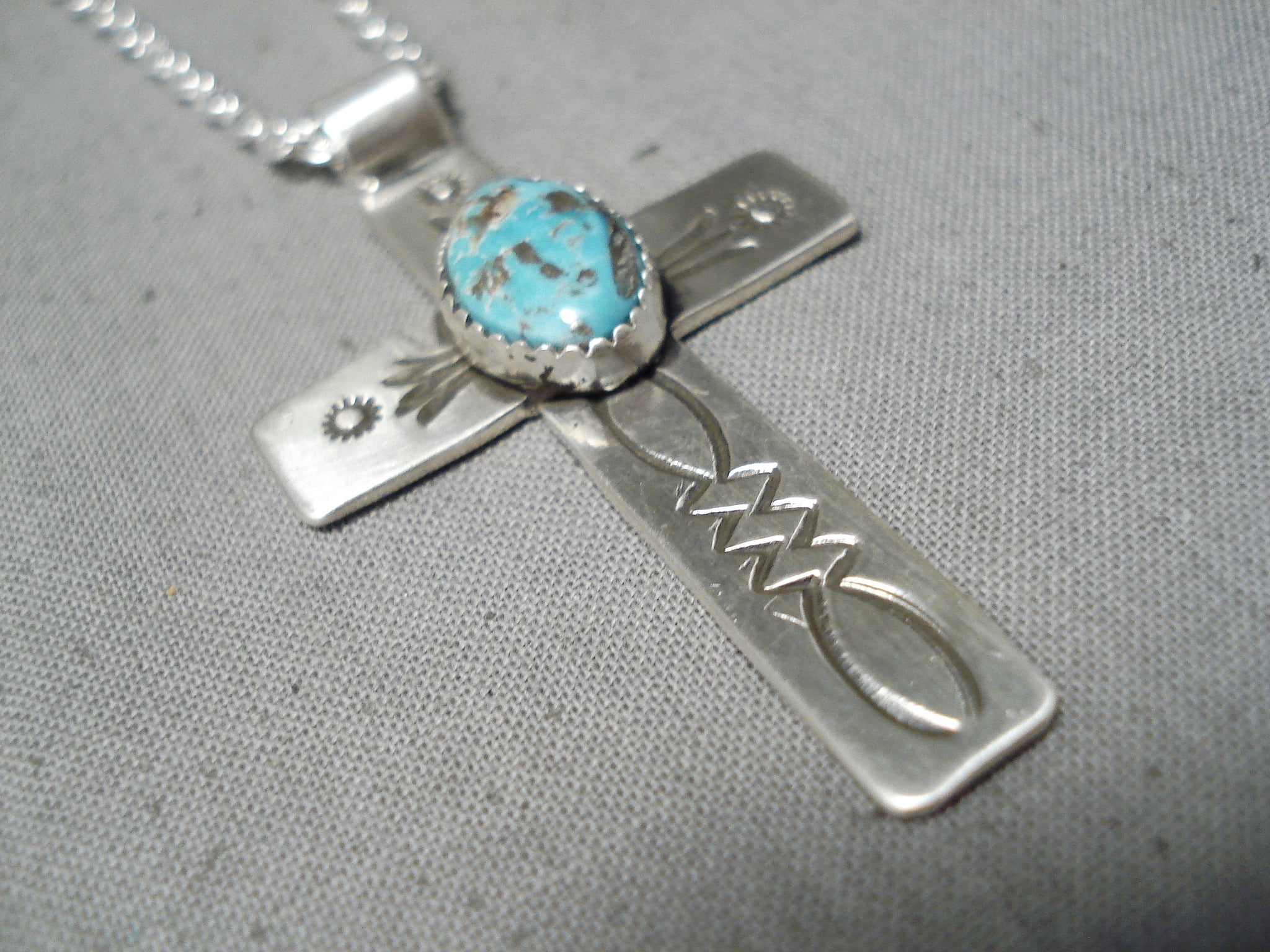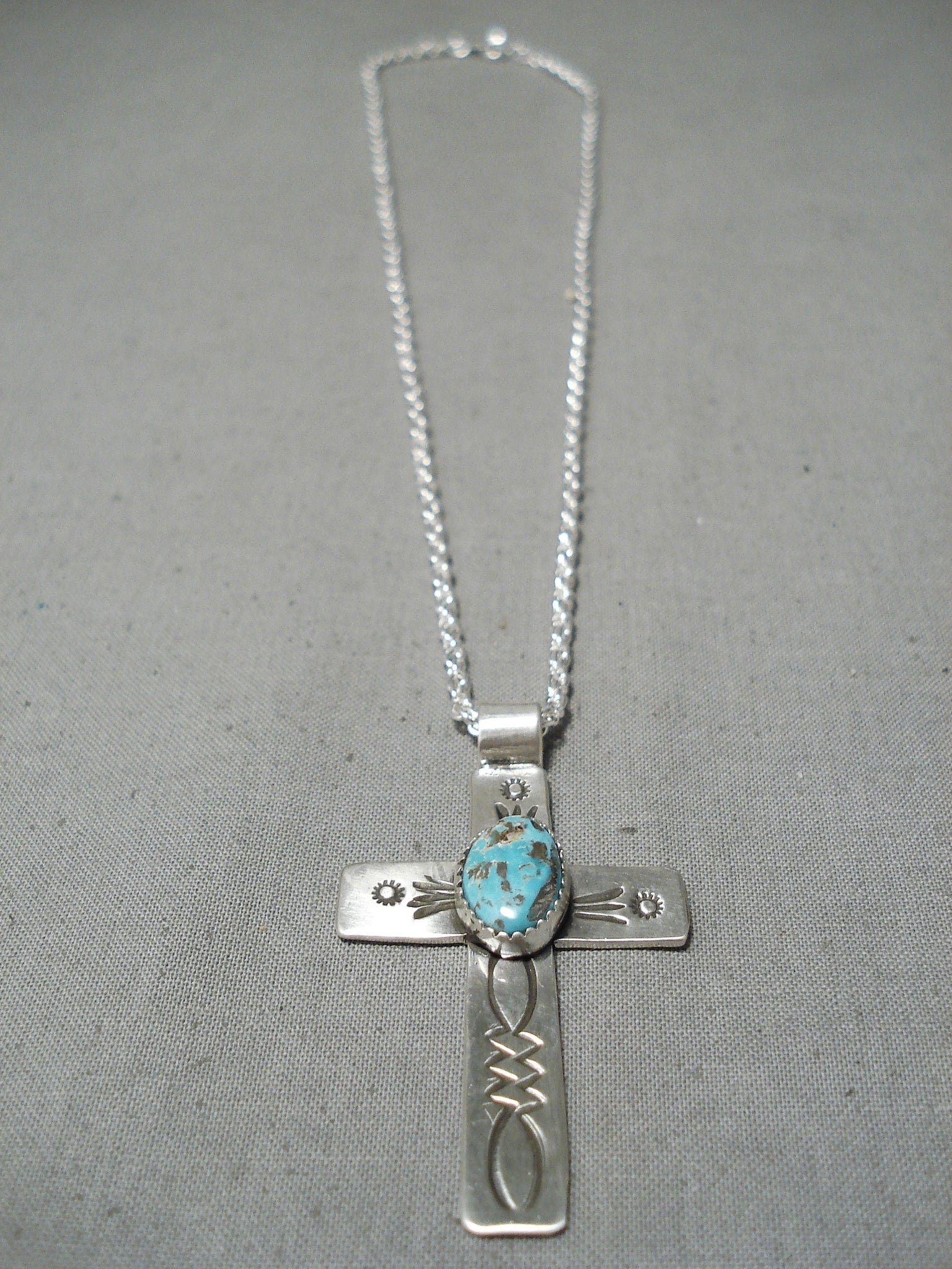Important Native American Navajo Royston Turquoise Sterling Silver Cross Necklace