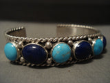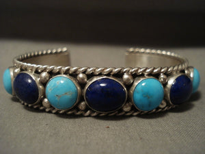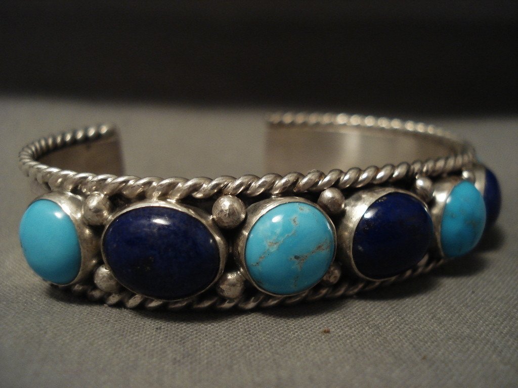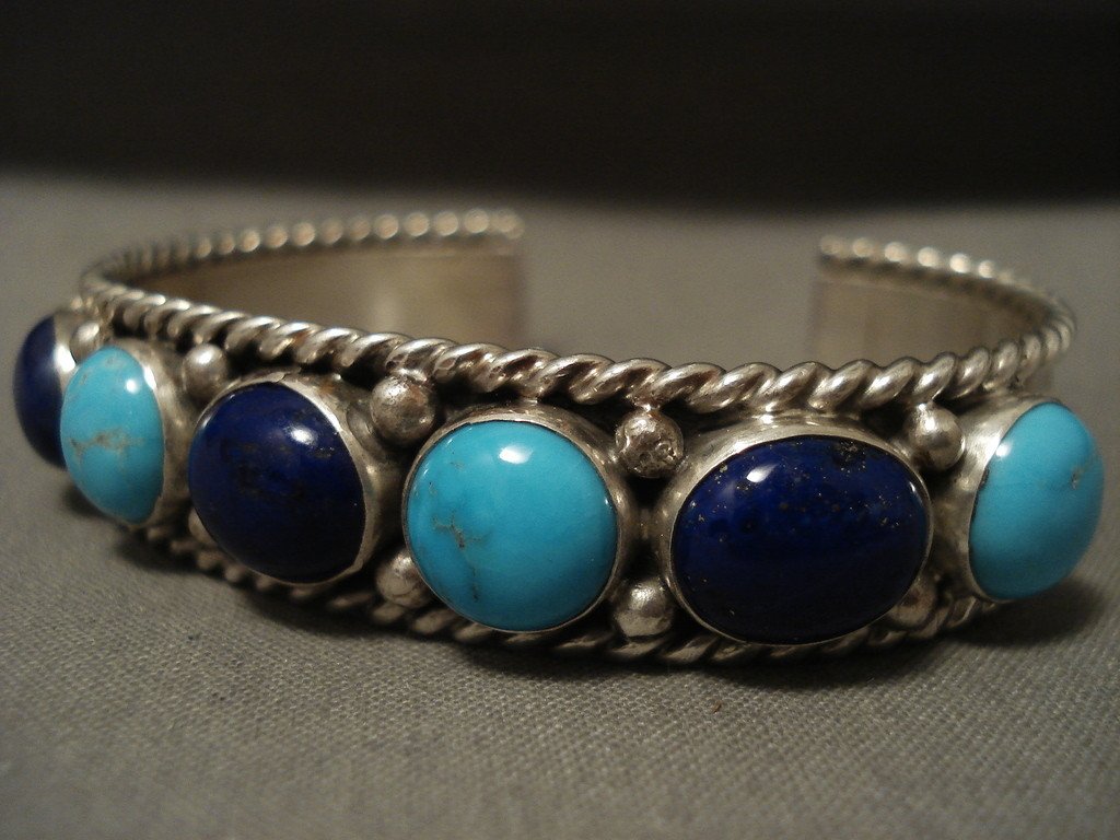 Important Navajo Ben Begaye Domed Turquoise And Lapis Native American Jewelry Silver Bracelet