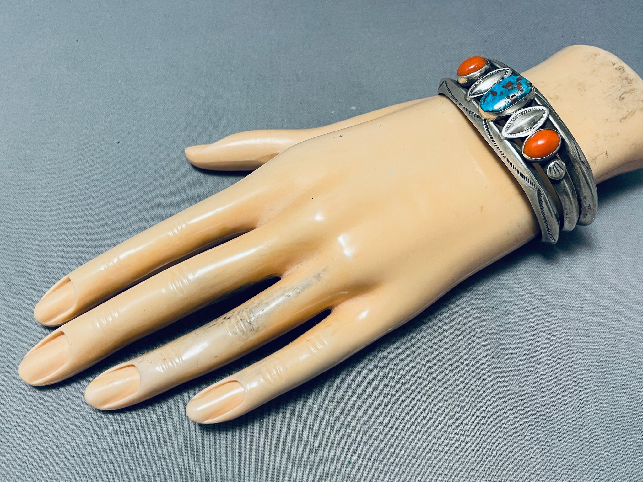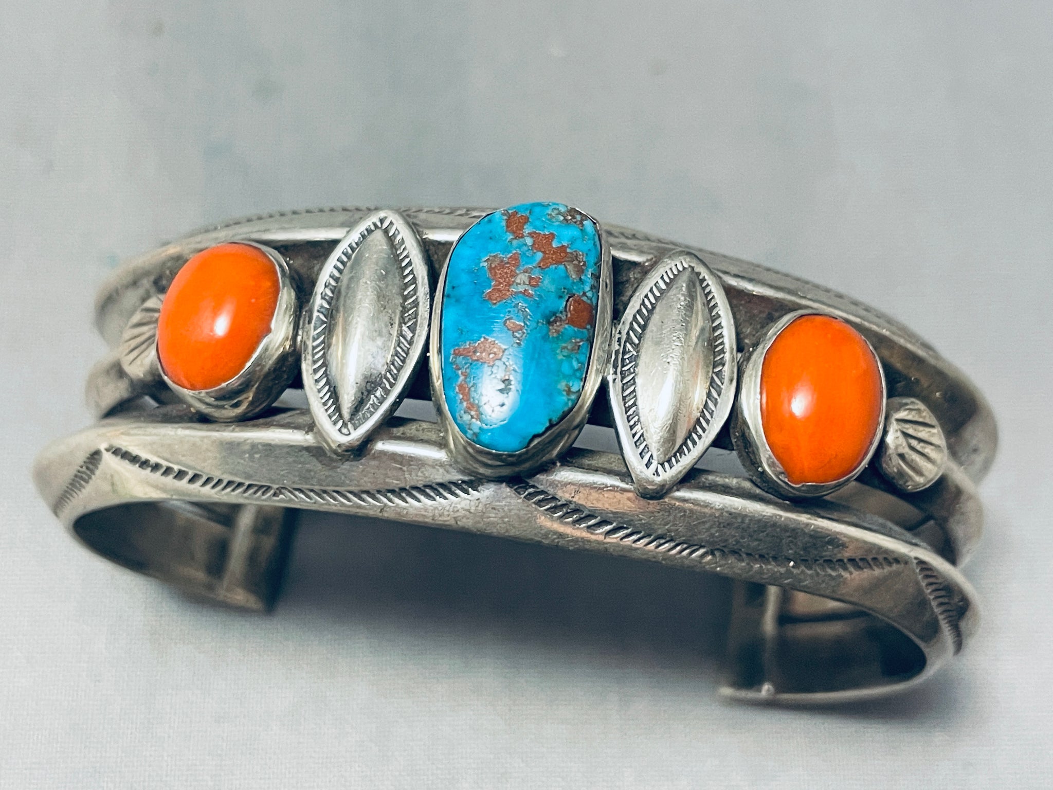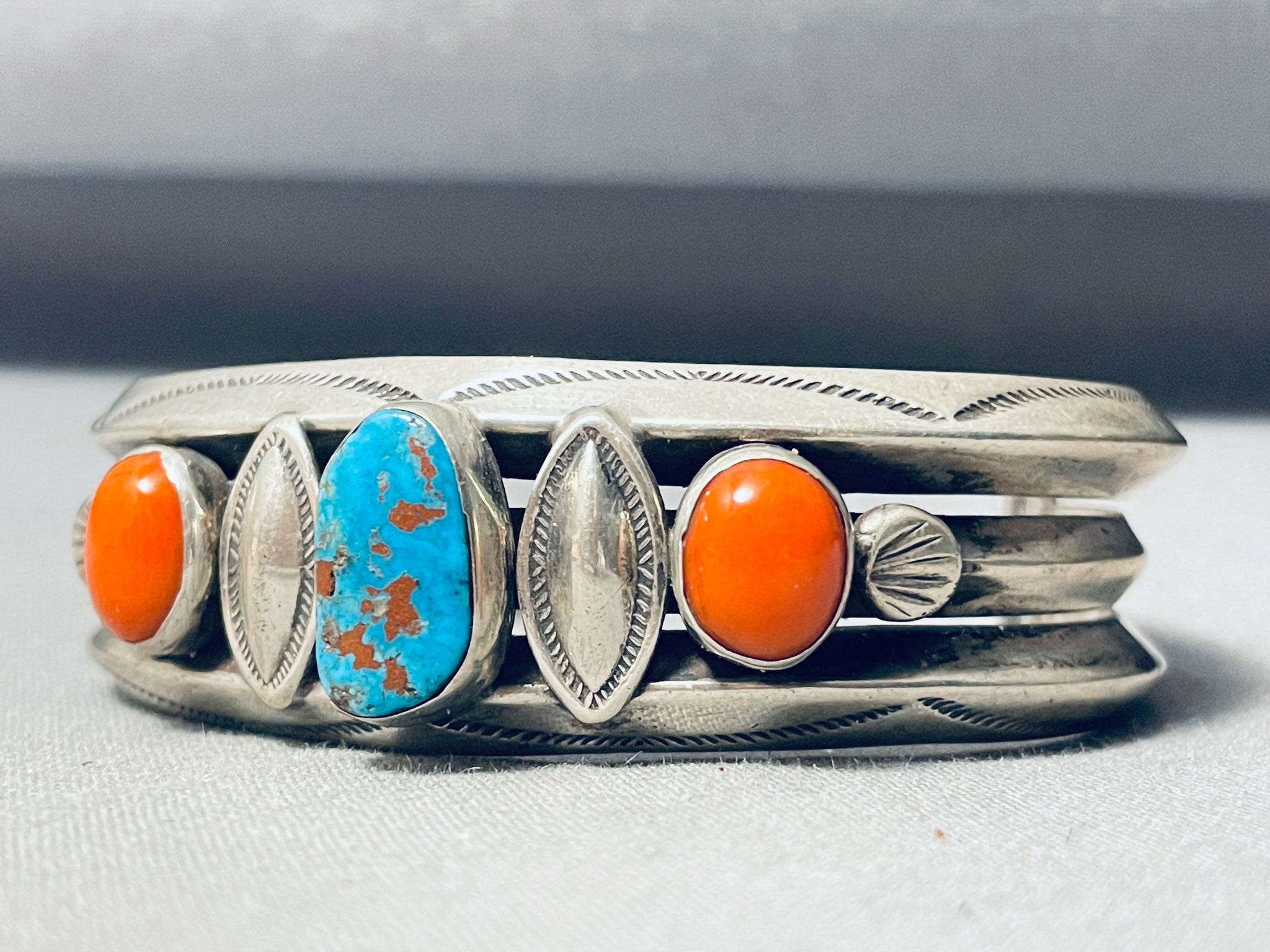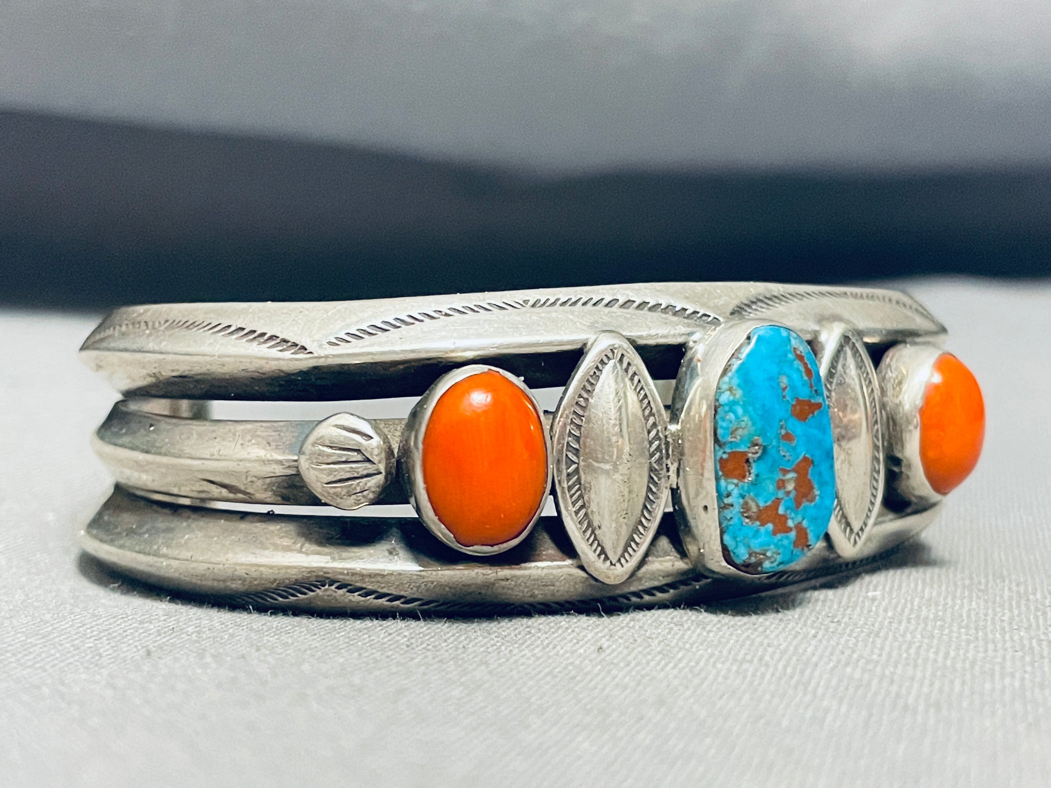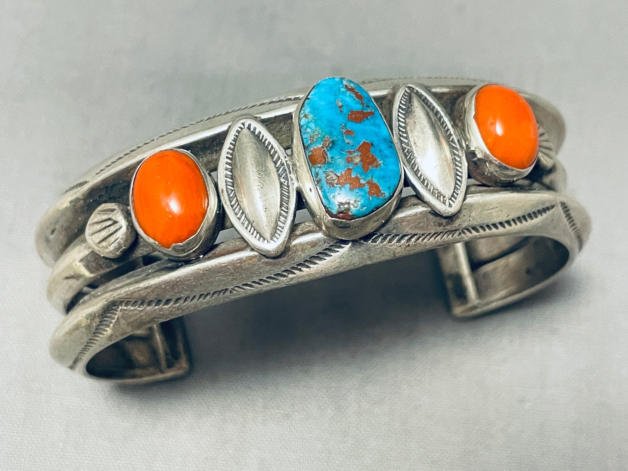 Important Red Mountain Mine Turquoise Vintage Native American Navajo Sterling Silver Bracelet