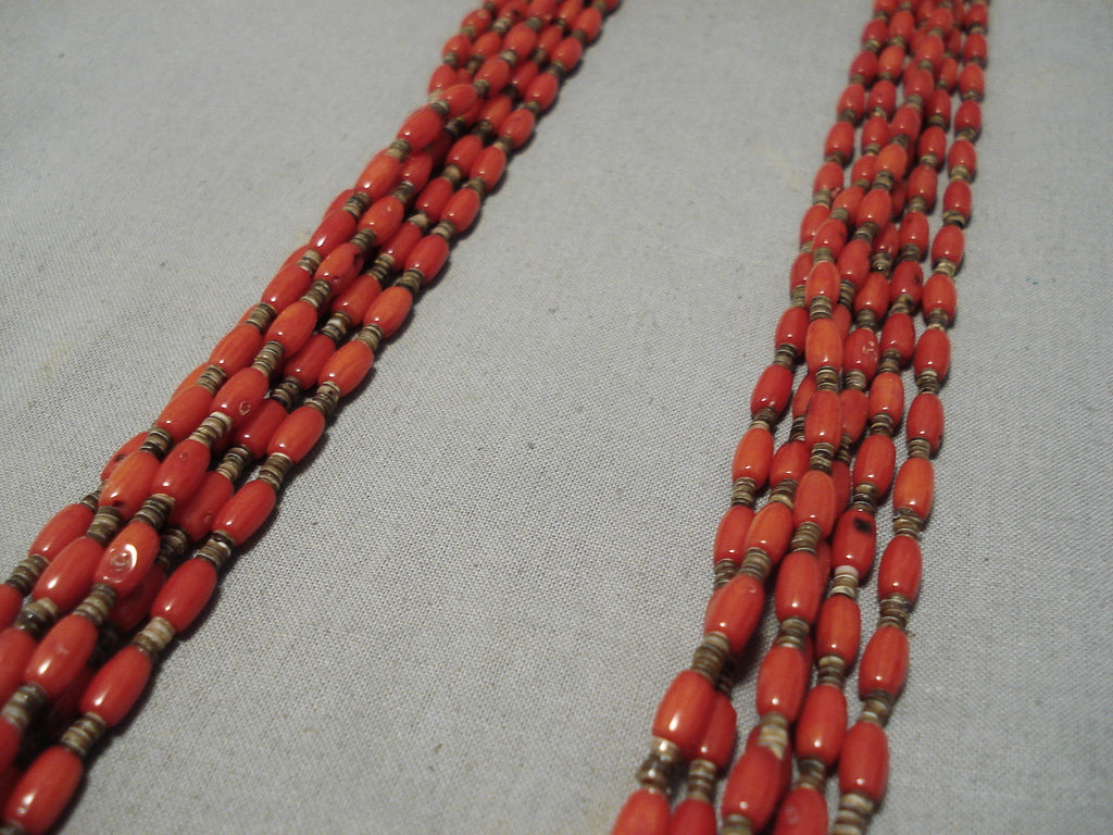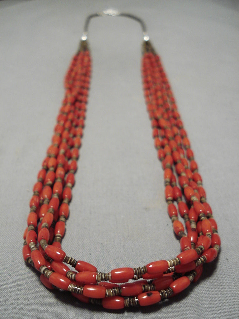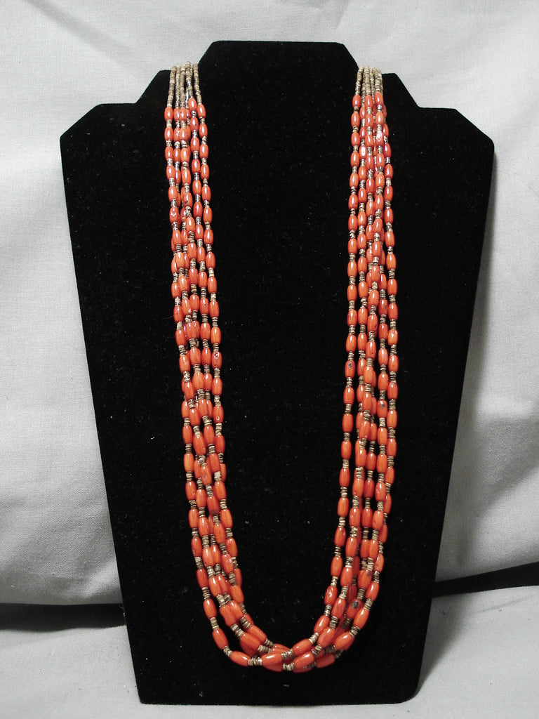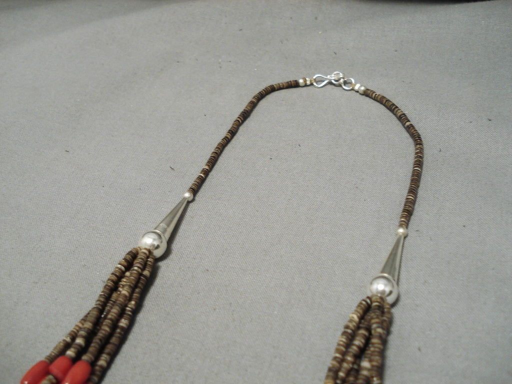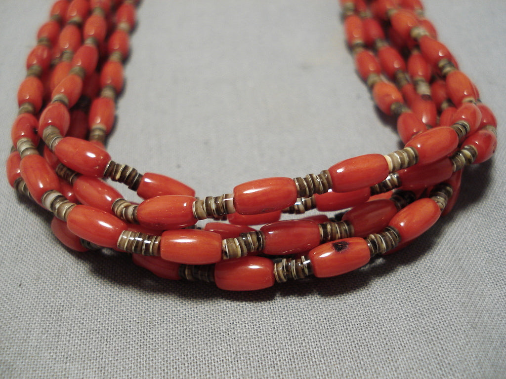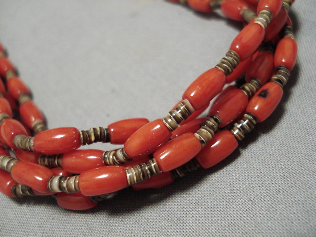 Important Roe Yazzie Coral Sterling Silver Heishi Necklace Native American