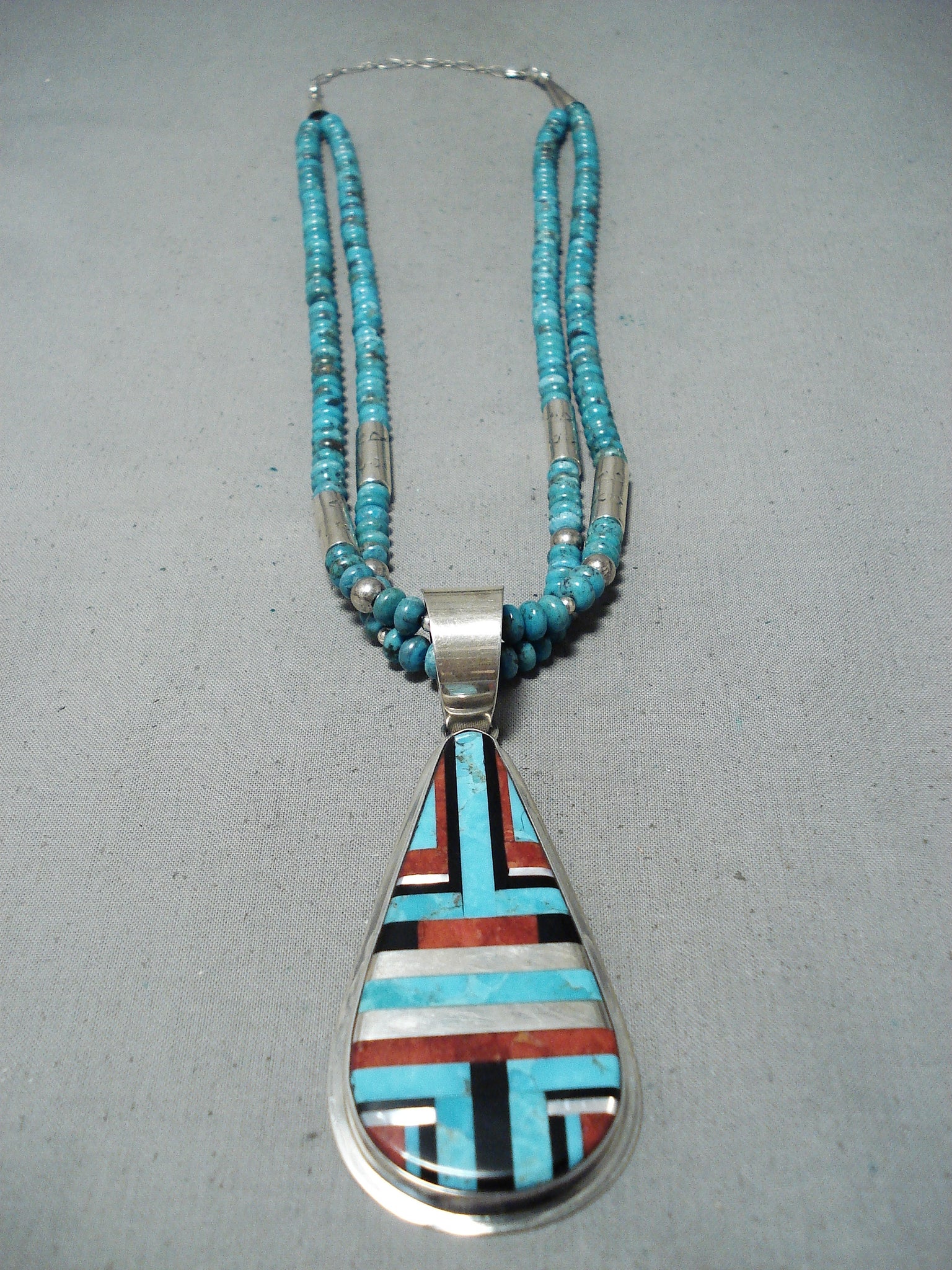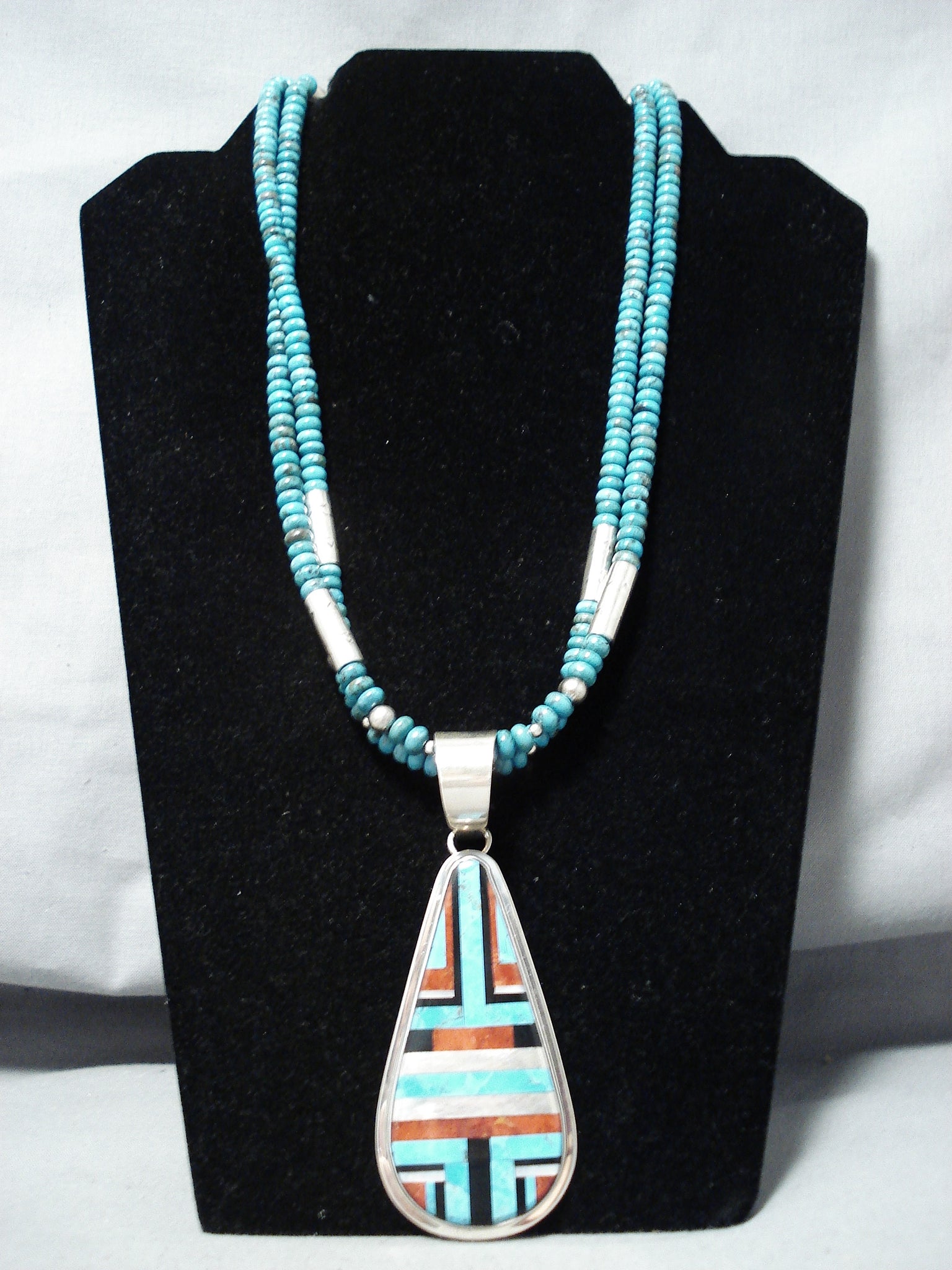 Important Santo Domingo Turquoise Sterling Silver Necklace Native American