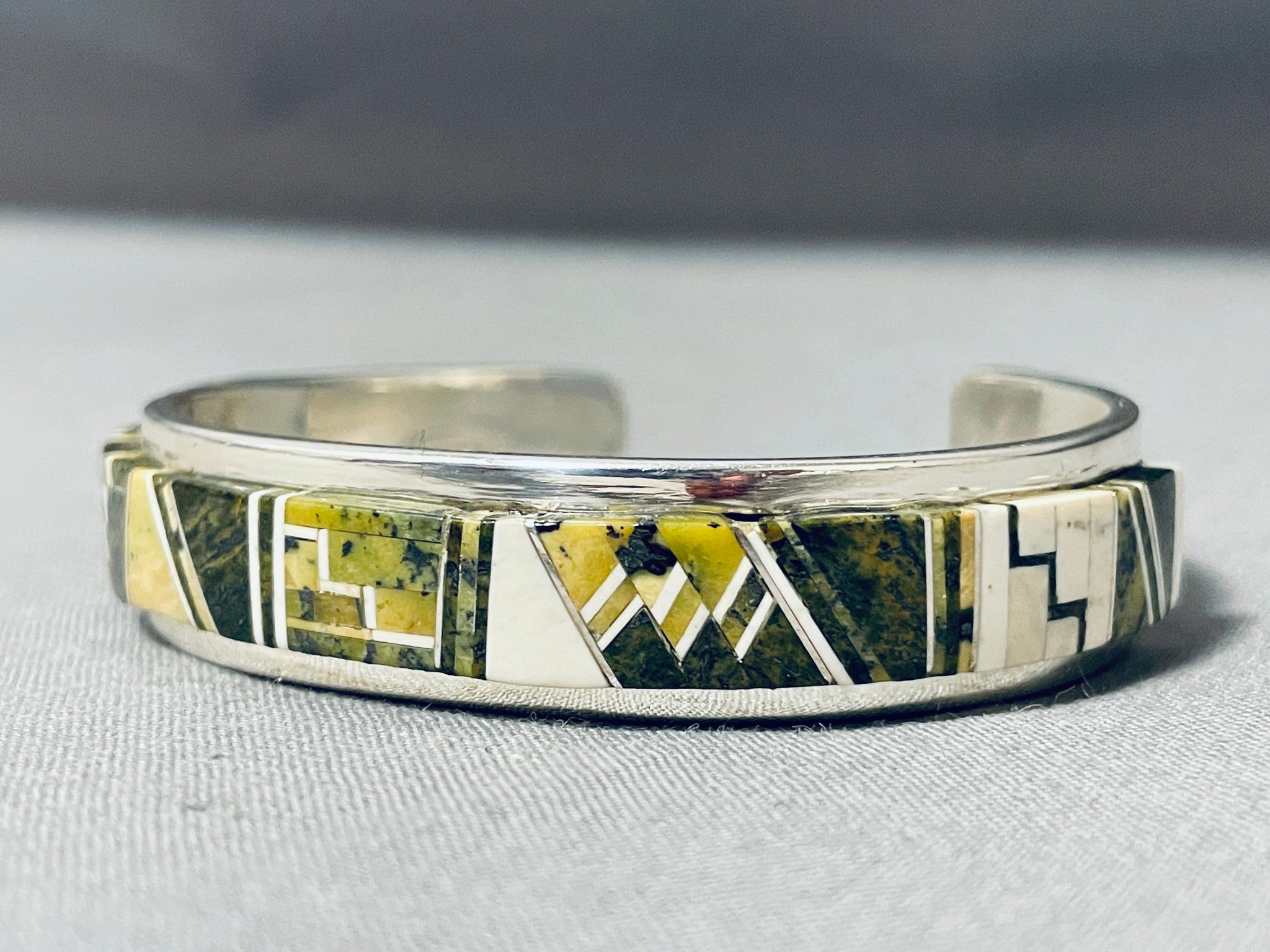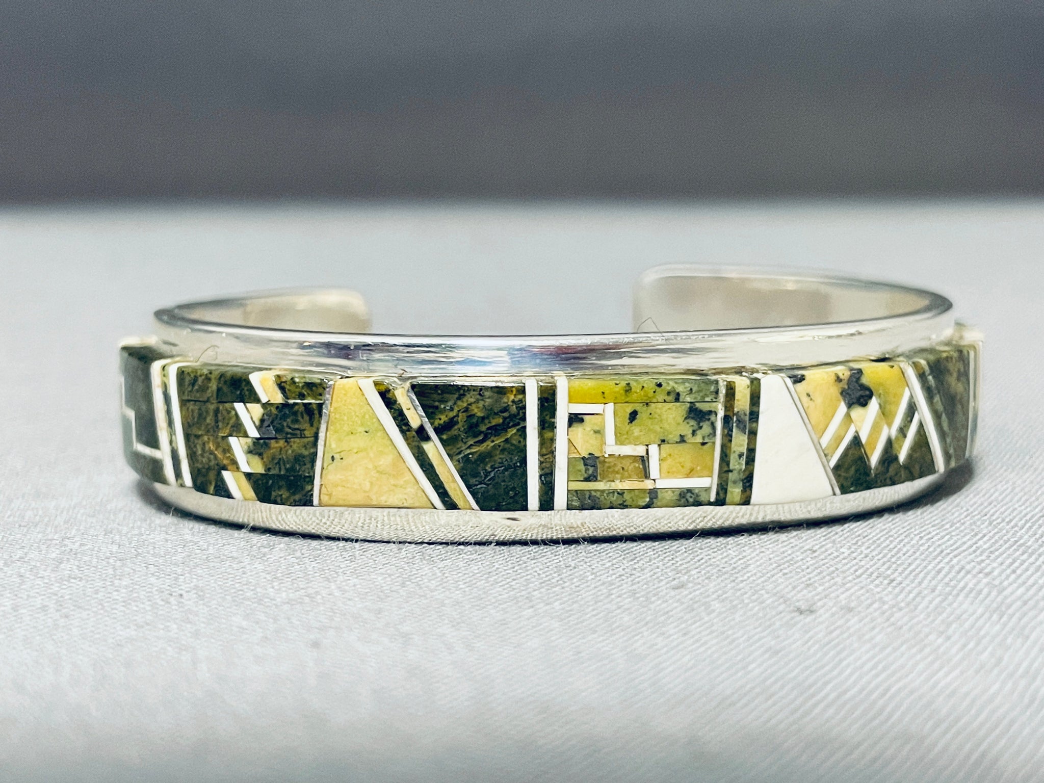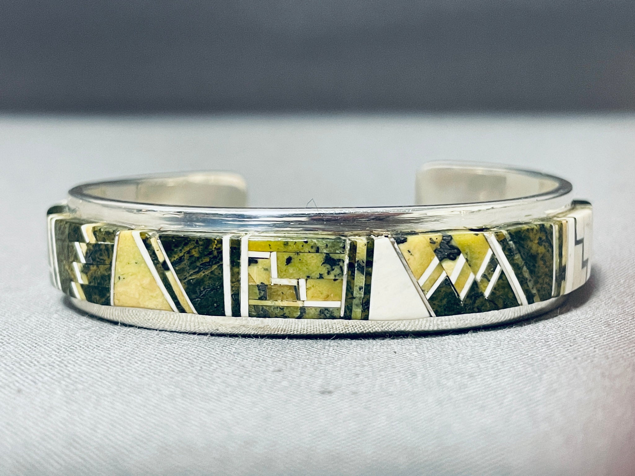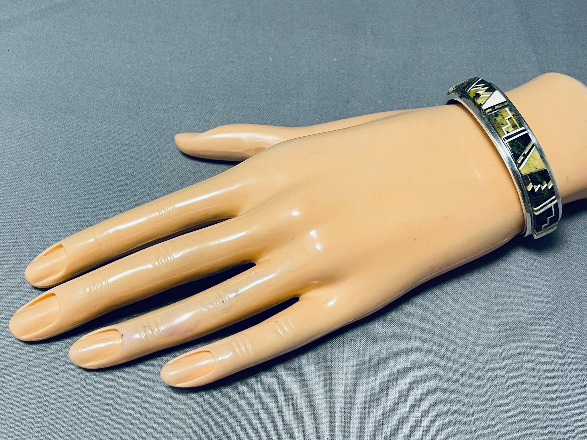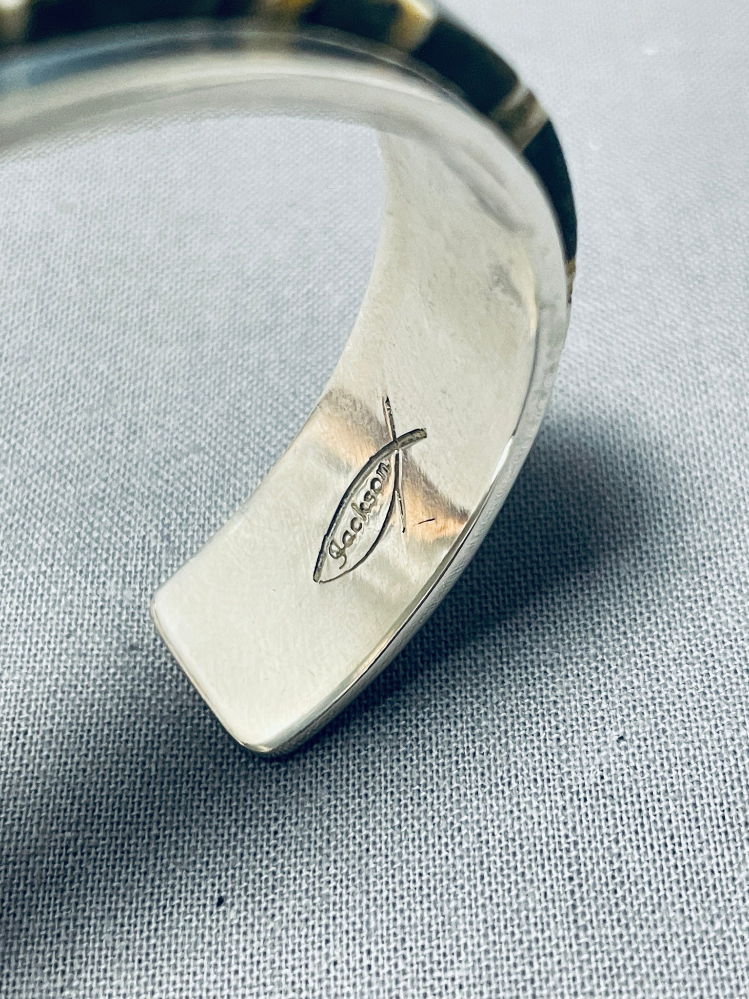 Important Tom Jackson Native American Navajo Extreme Inlay Sterling Silver Bracelet