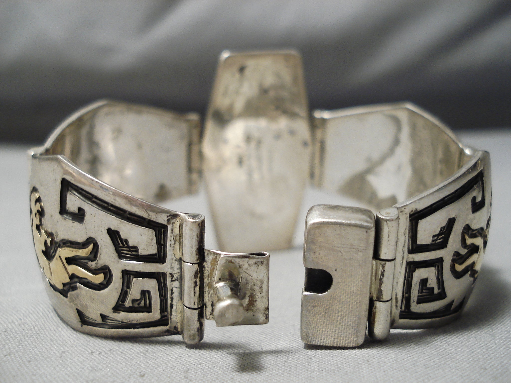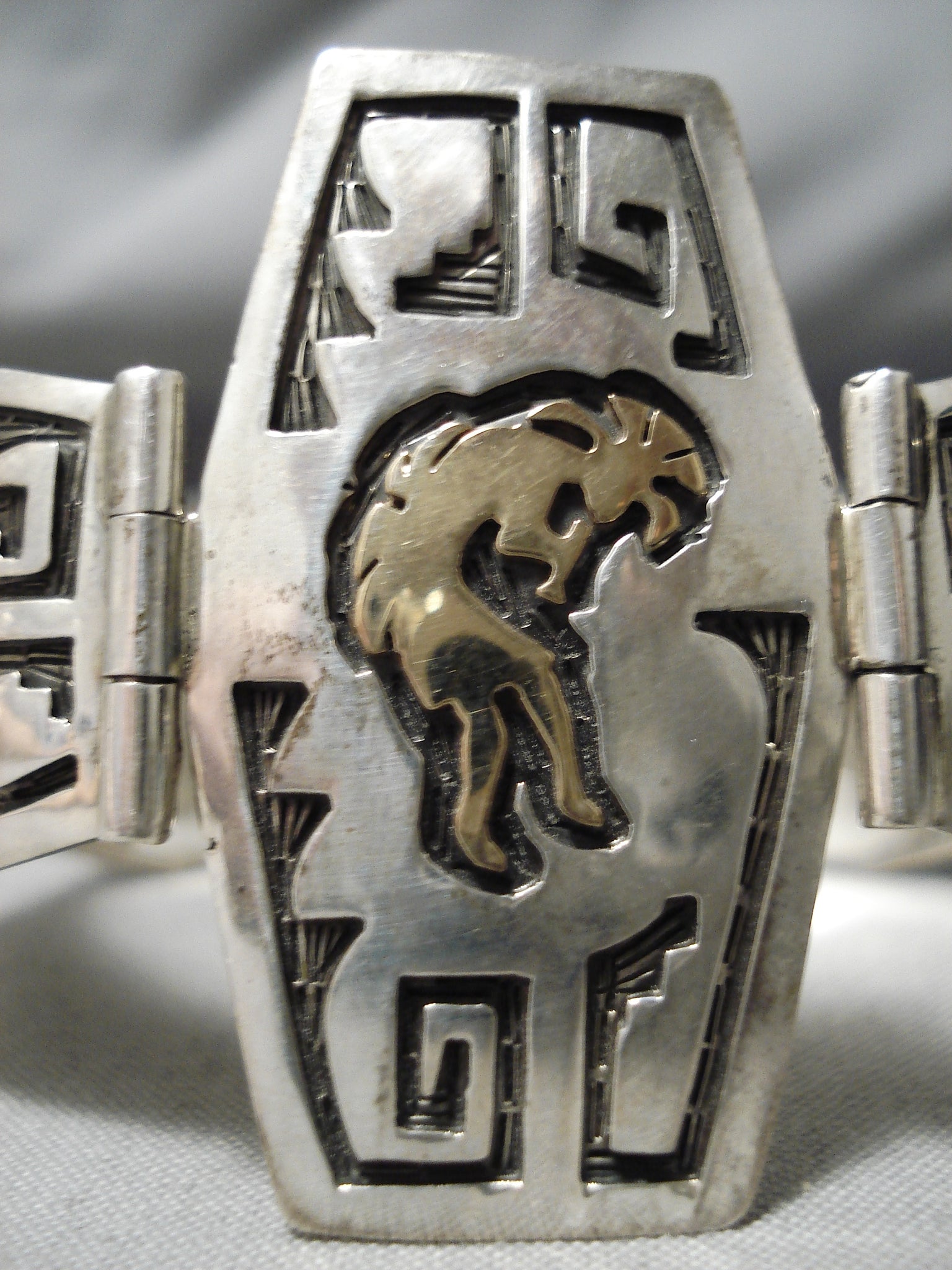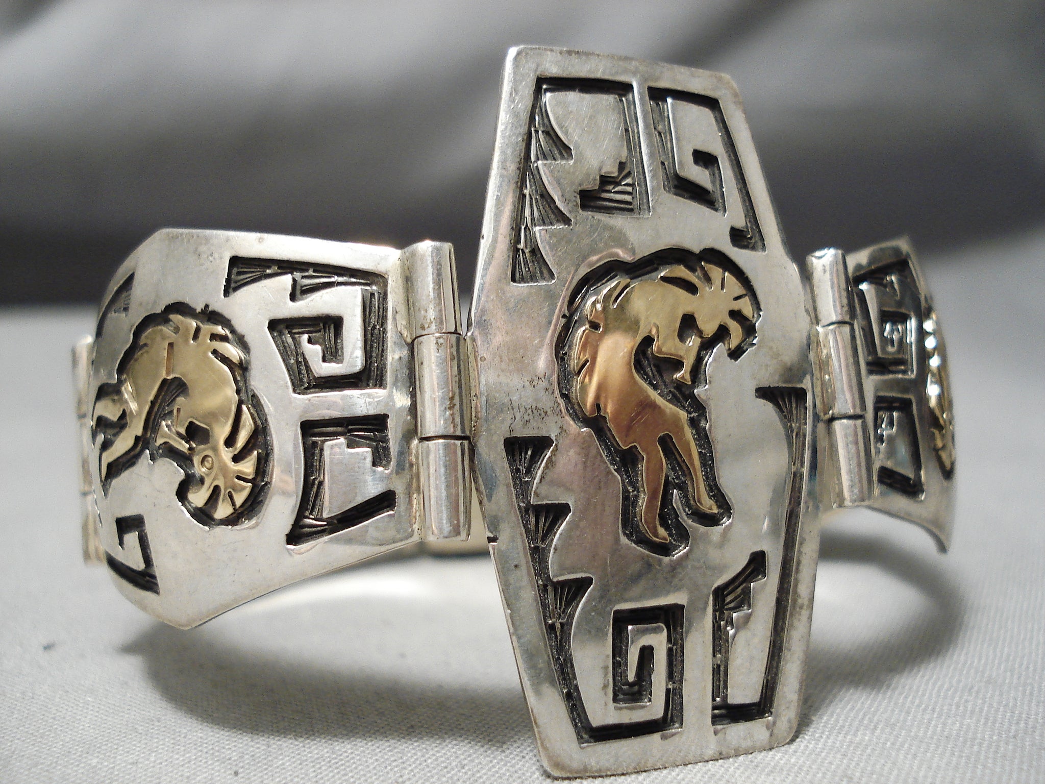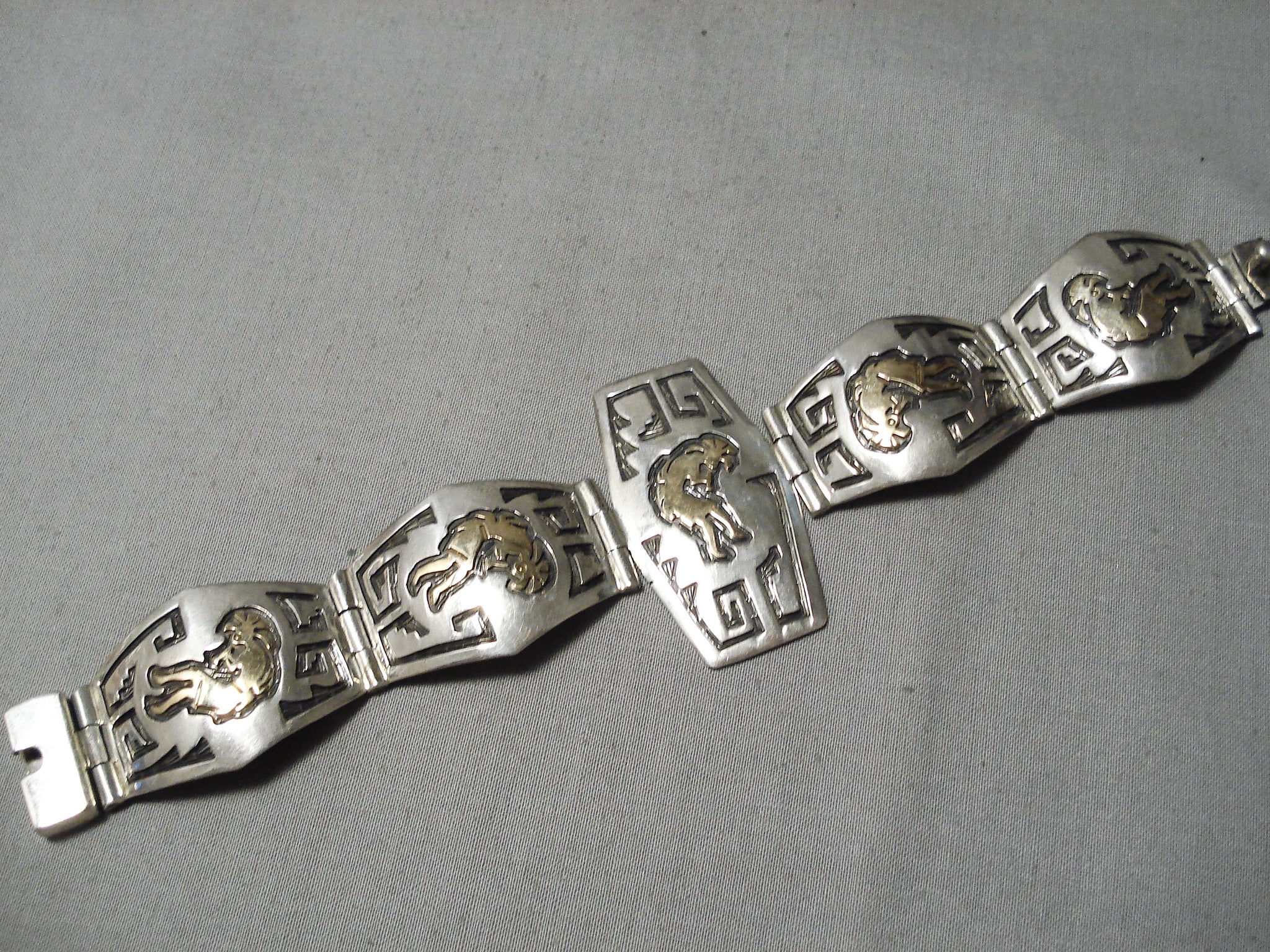 Important Vintage Native American Navajo 14k Gold Sterling Silver Link Bracelet