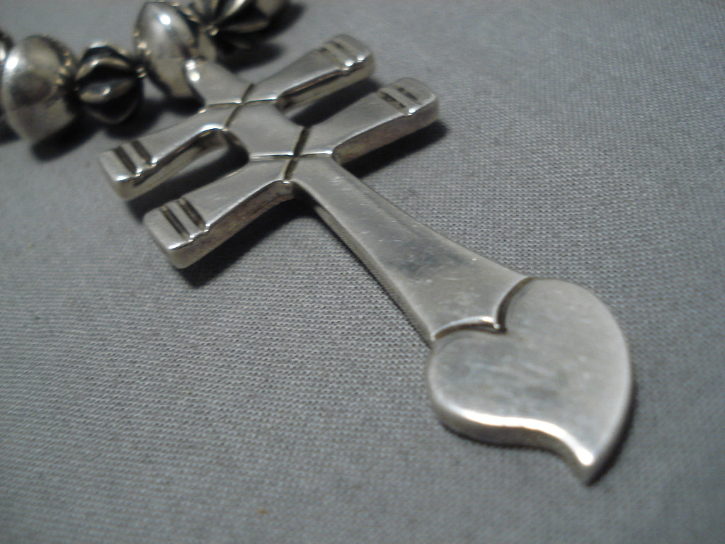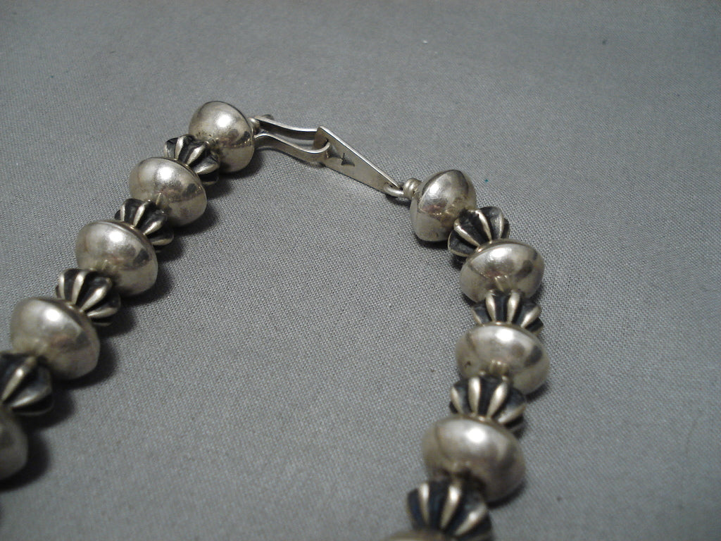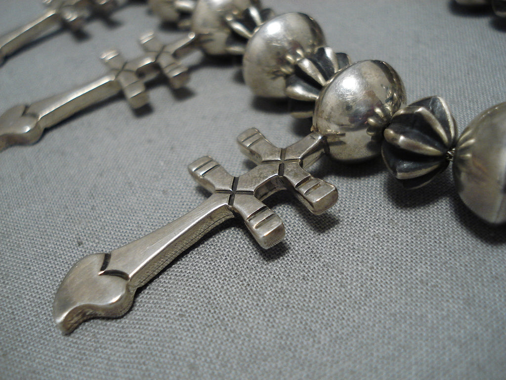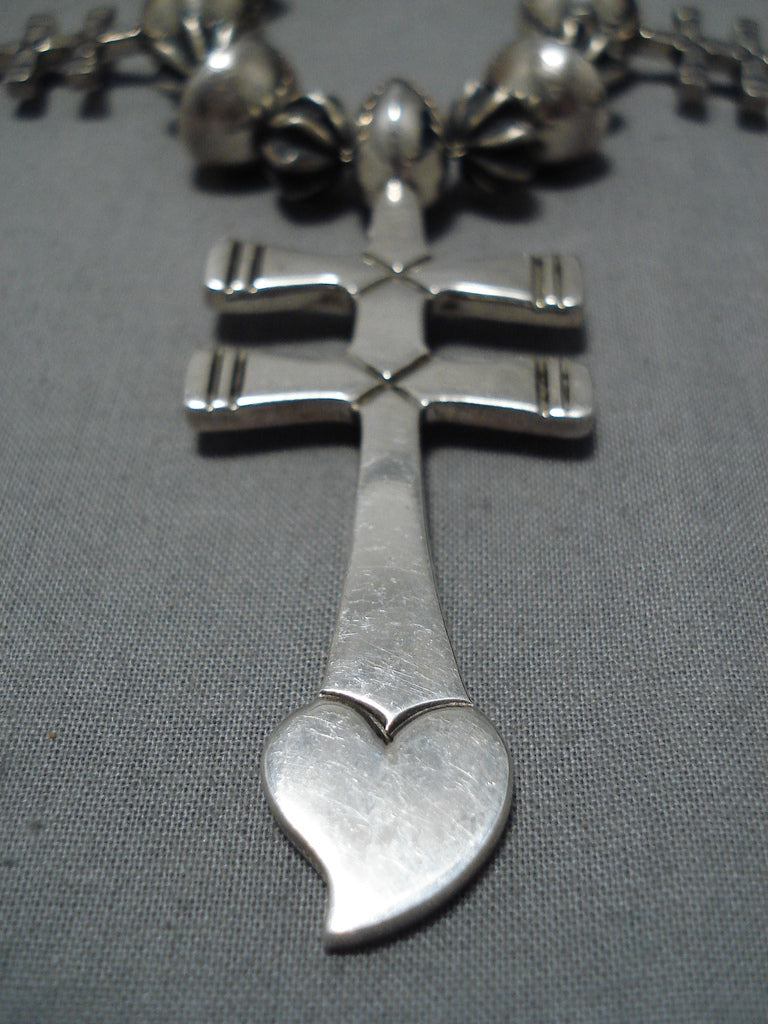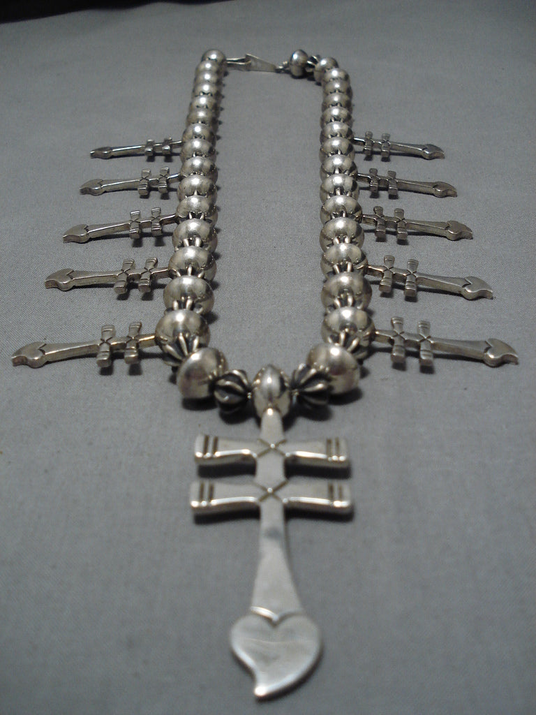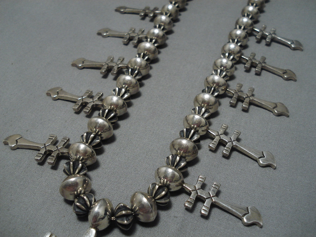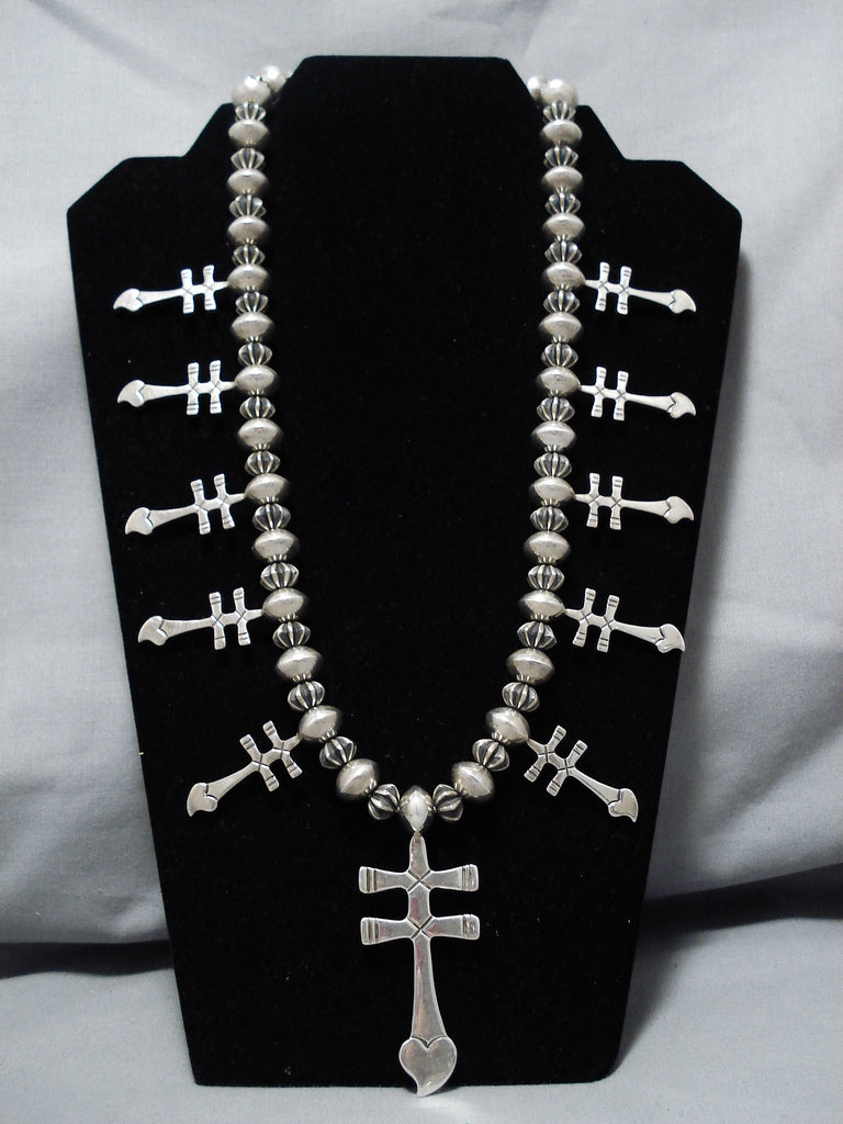 Important Vintage Native American Navajo Al Joe Cross Sterling Silver Squash Blossom Necklace