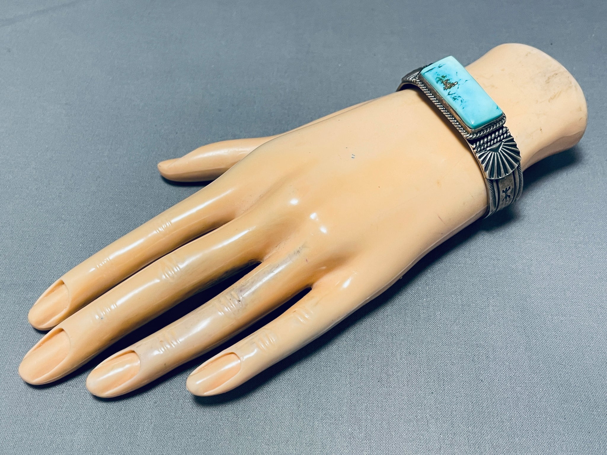 Important Vintage Native American Navajo Derrick Gordan Turquoise Sterling Silver Bracelet