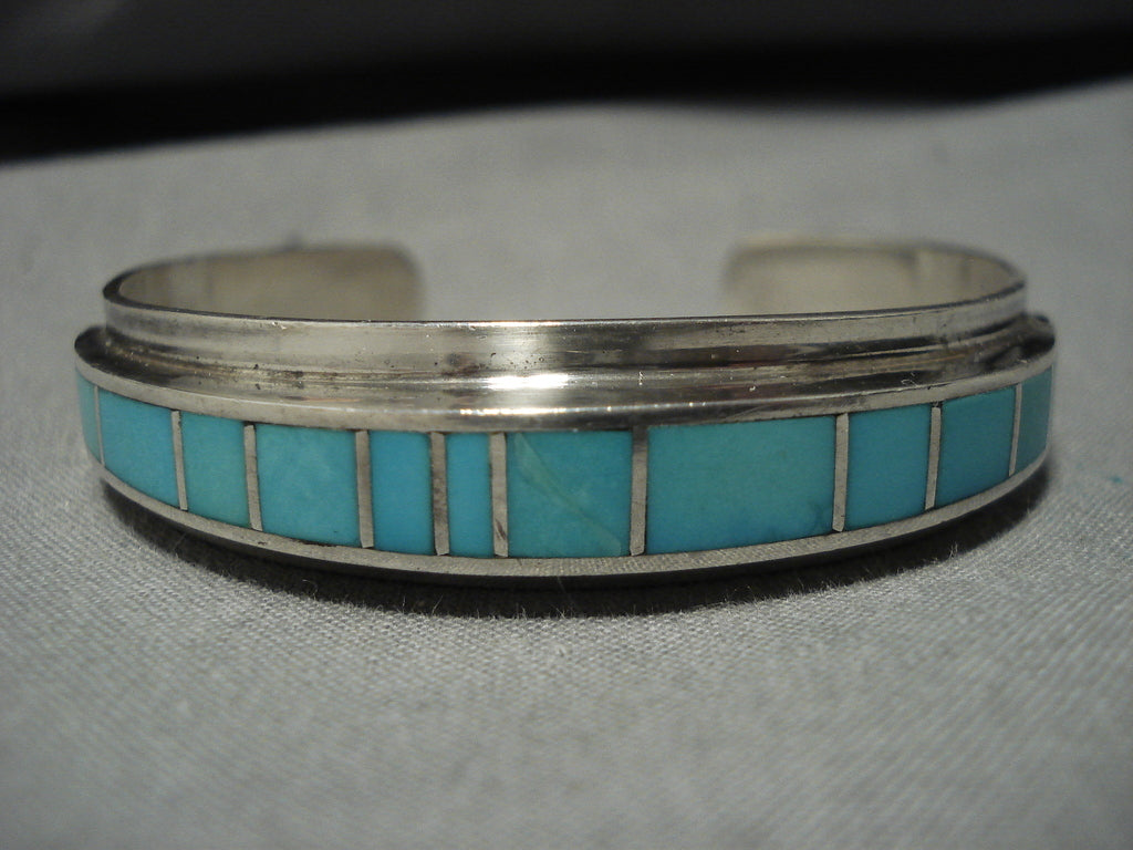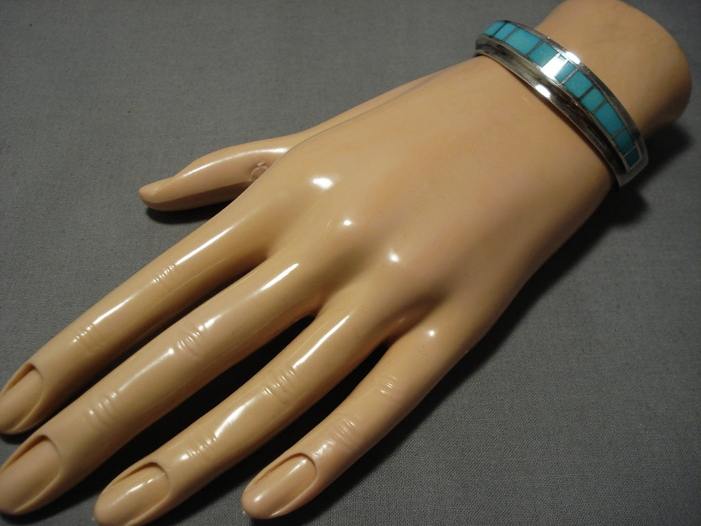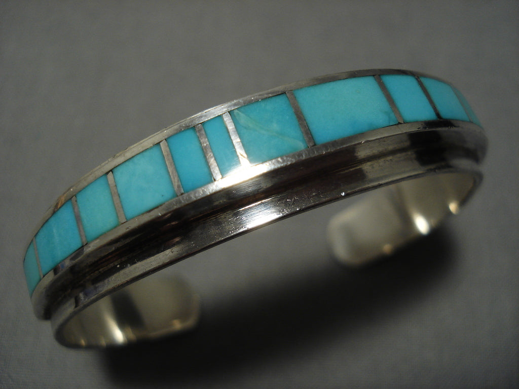 Important Vintage Native American Navajo Herm Smith Turquoise Sterling Silver Bracelet Old