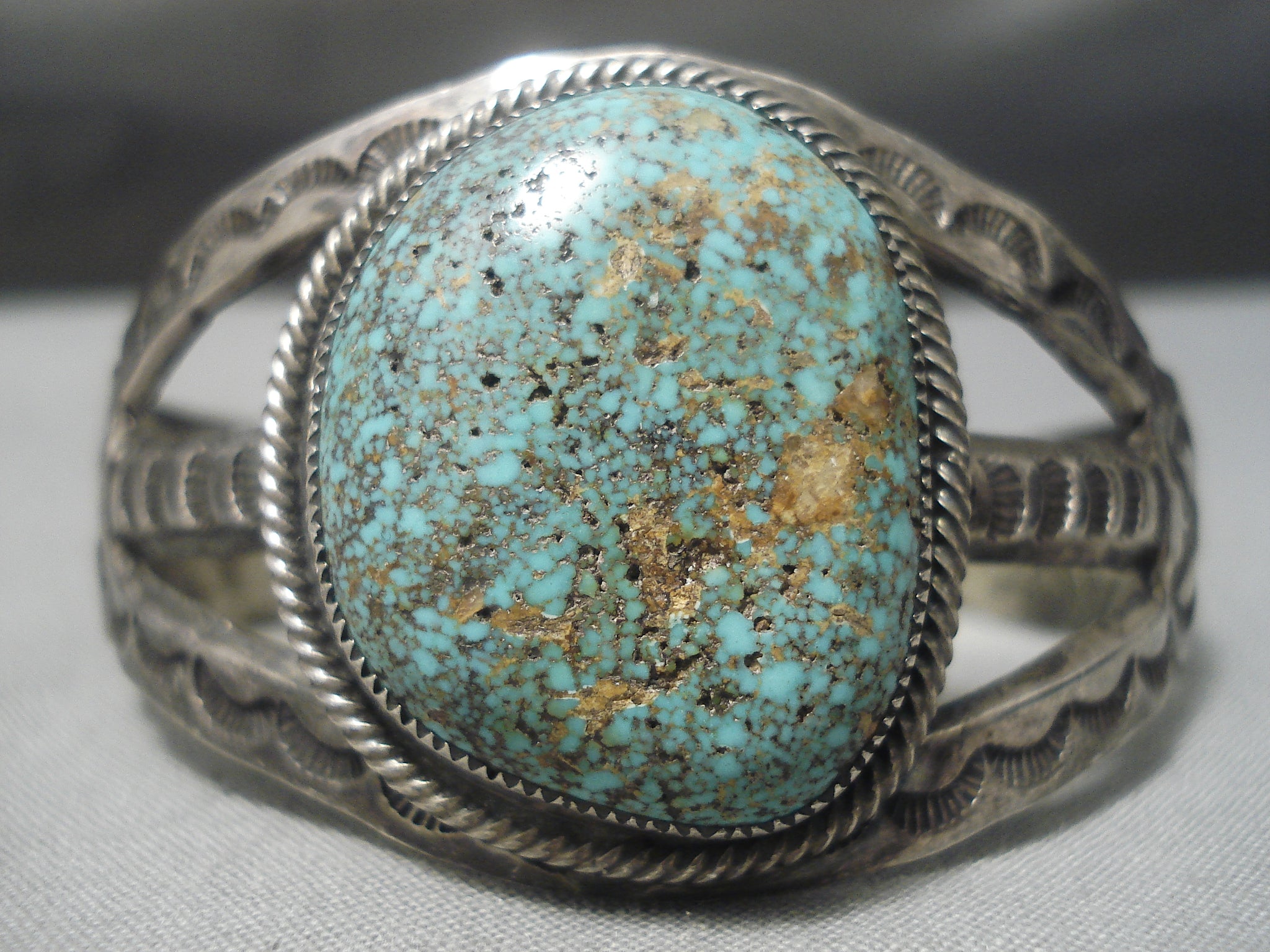Important Vintage Native American Navajo Lone Mountain Turquoise Sterling Silver Bracelet Old