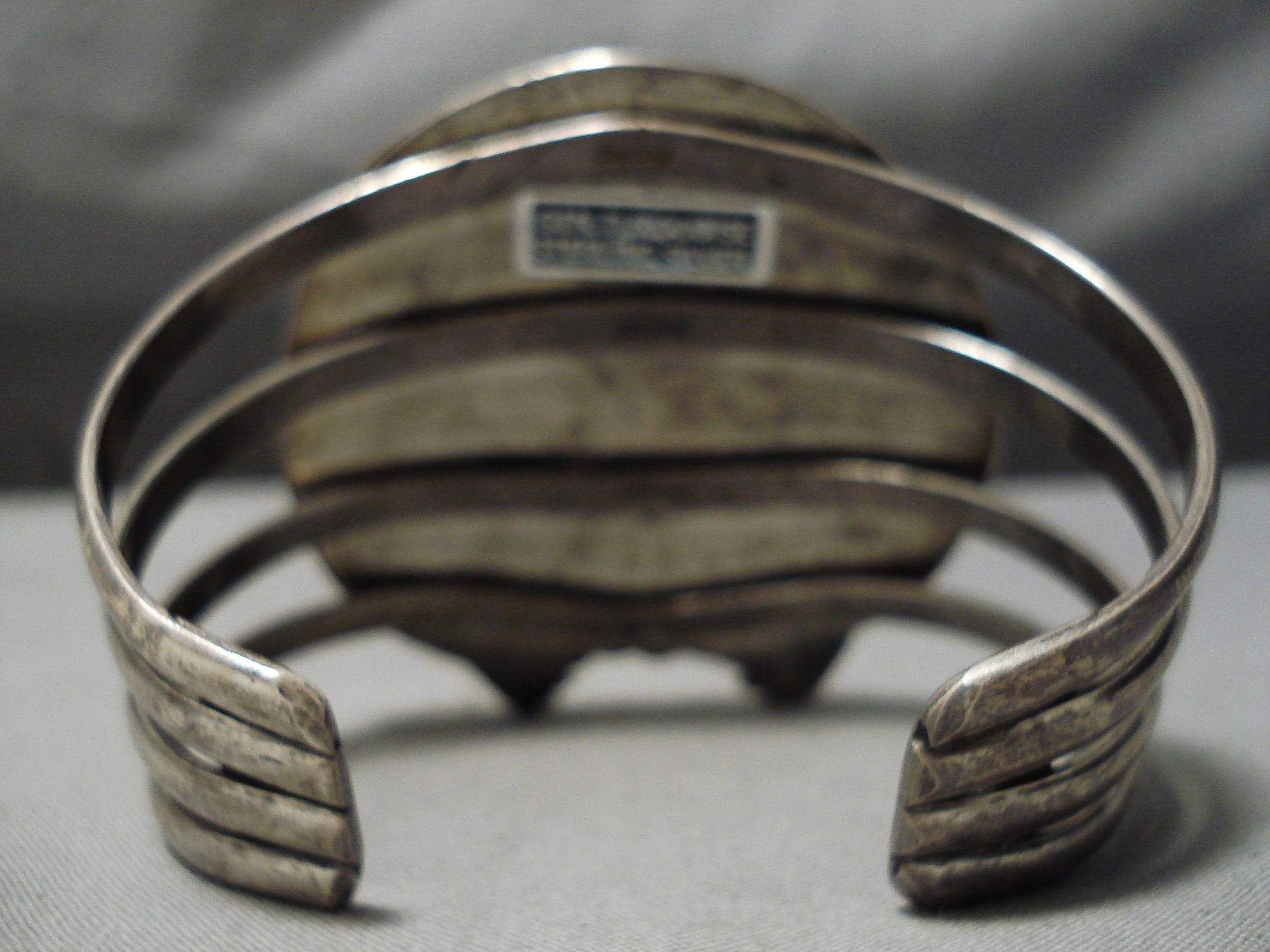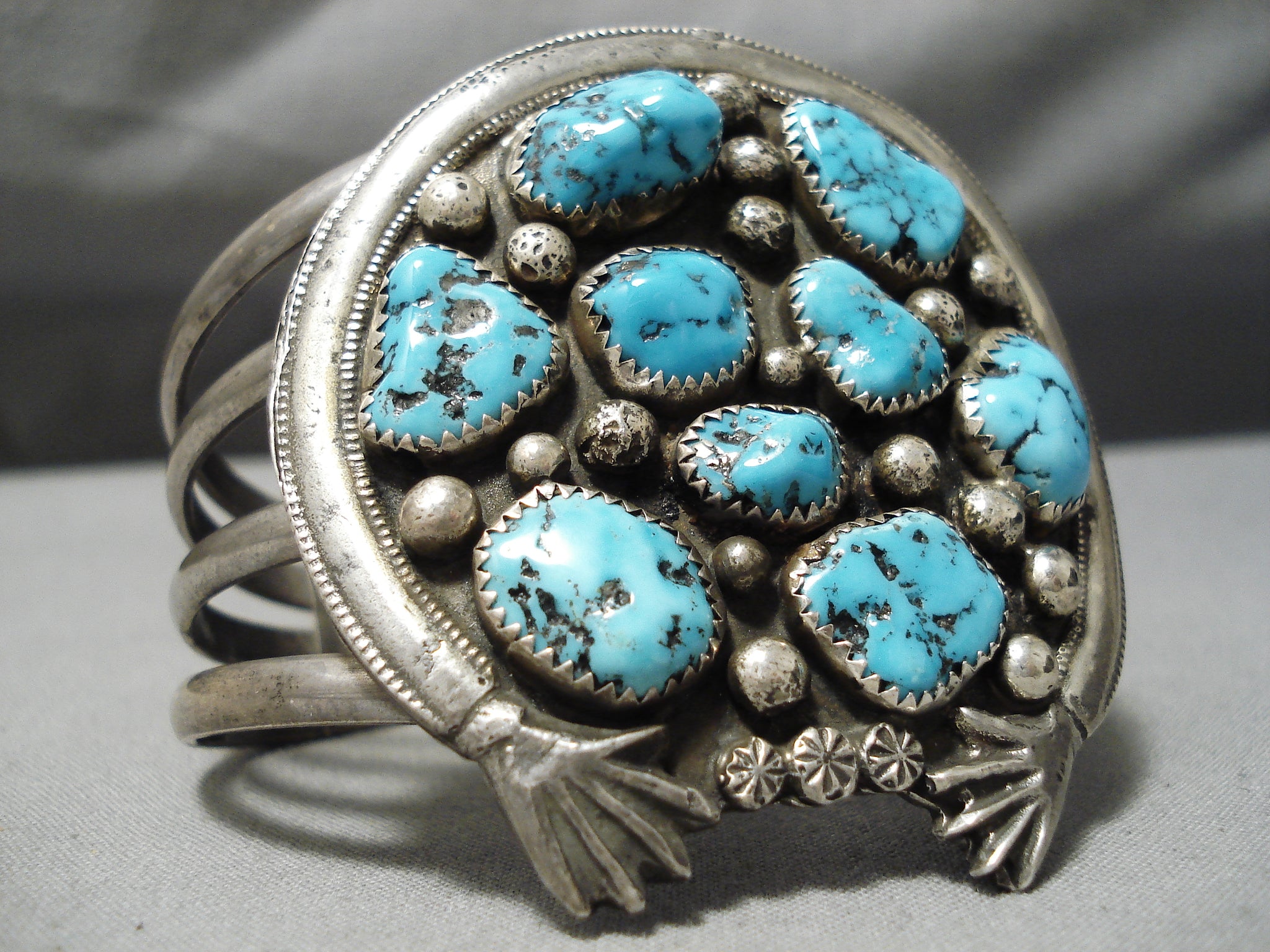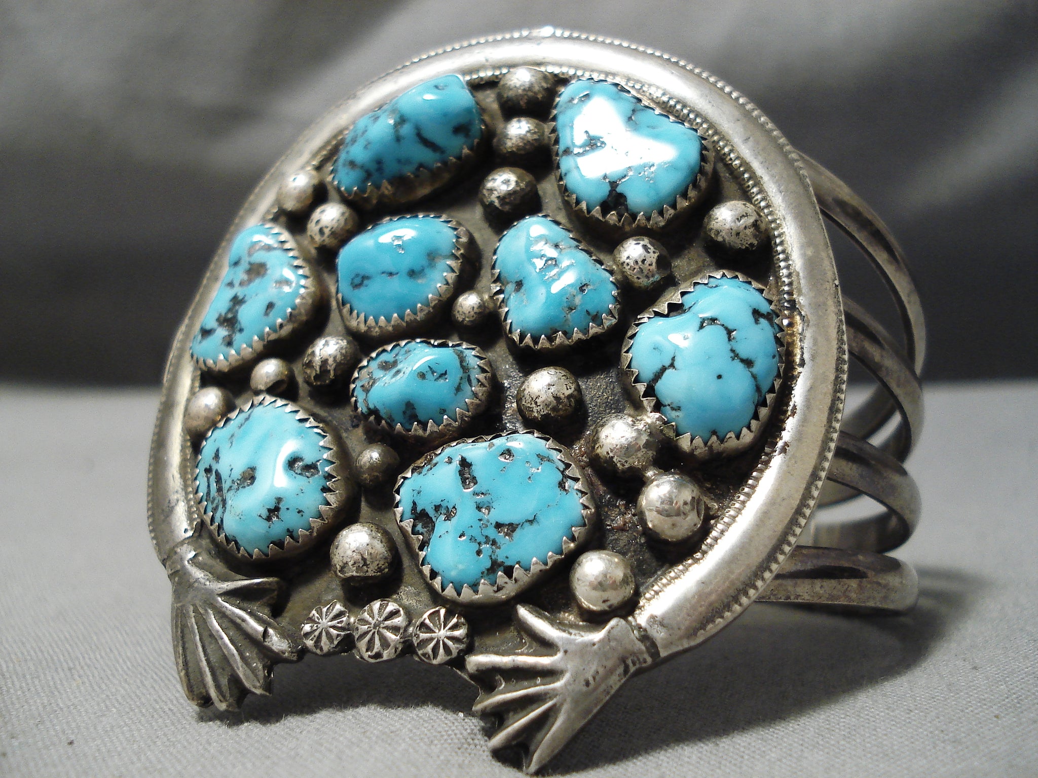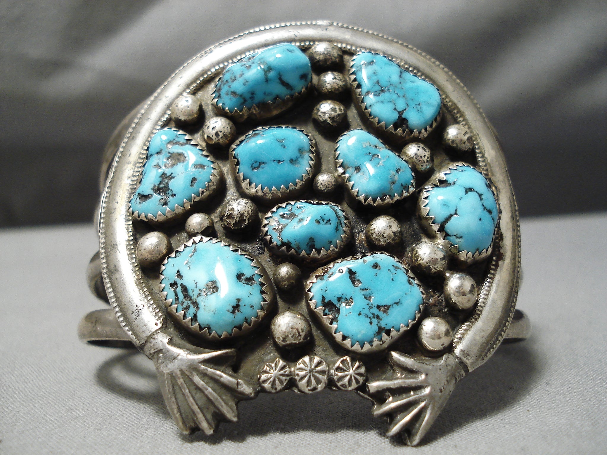 Important Vintage Native American Navajo Open Arms Sterling Silver Turquoise Bracelet Old