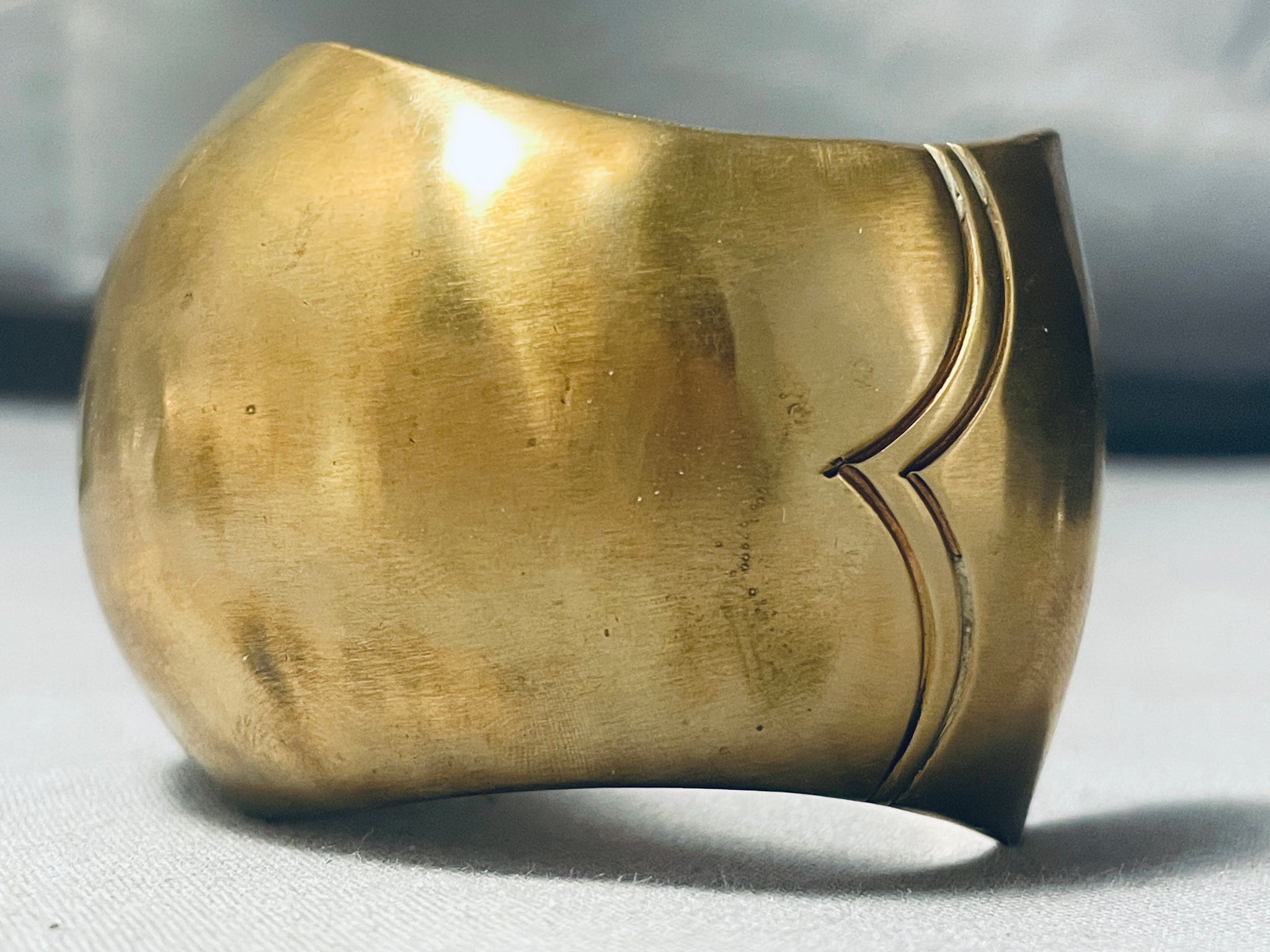 Important Vintage Native American Navajo Orville Tsinnie (d) Brass Hammered Bracelet