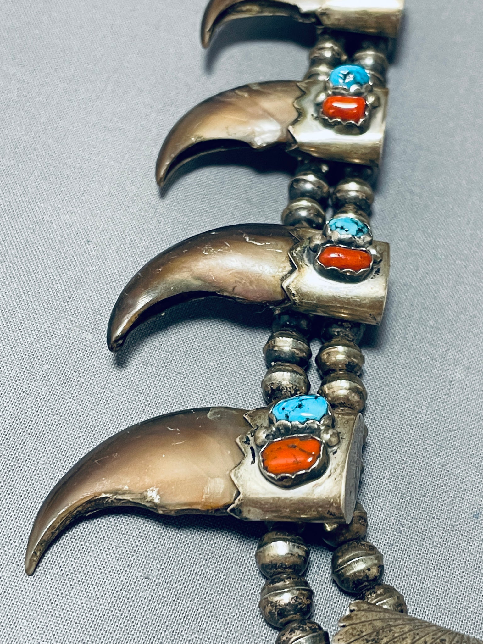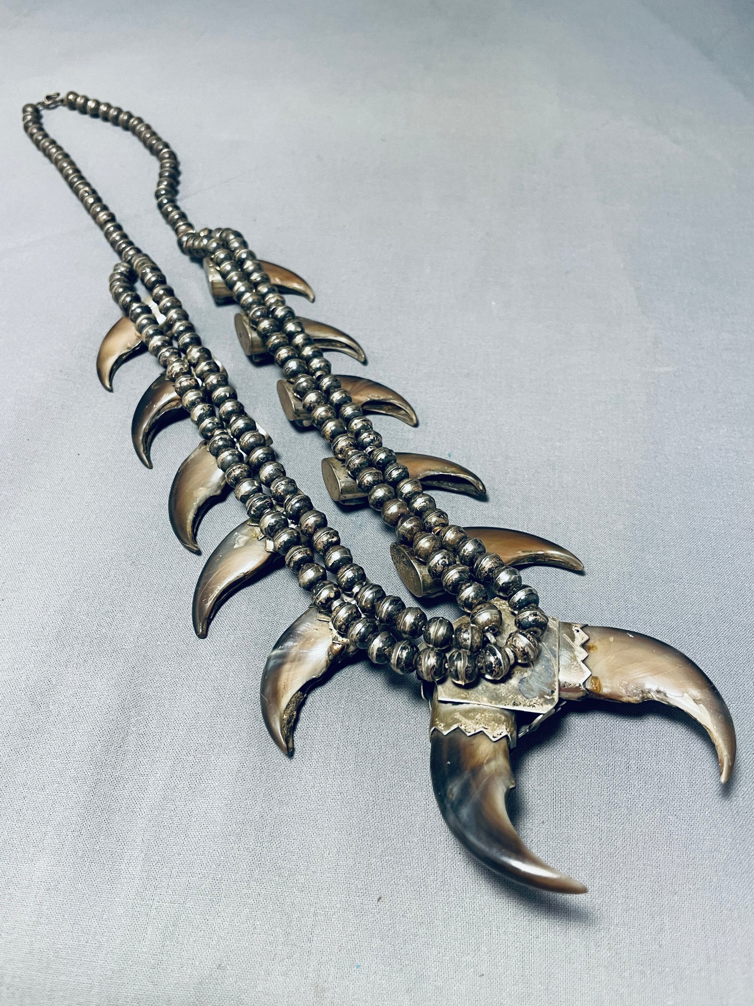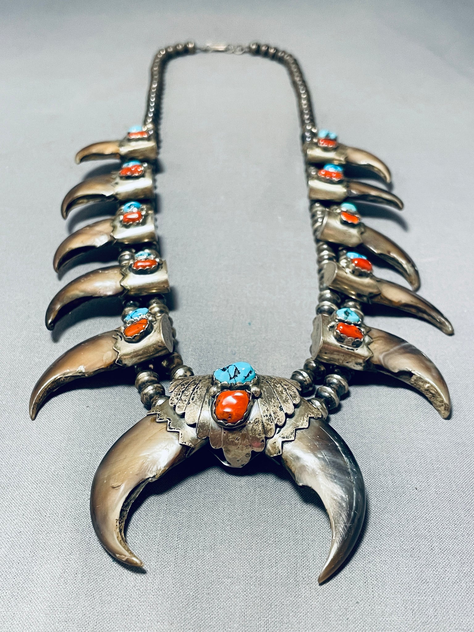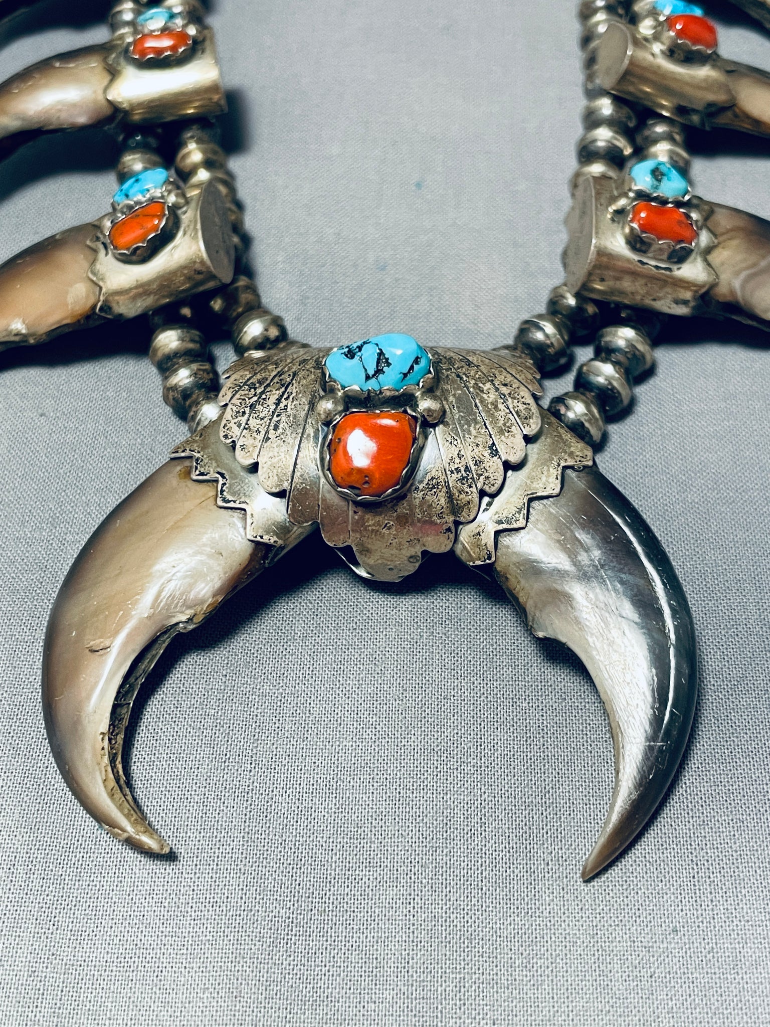 Important Vintage Native American Navajo Turquoise Sterling Silver Squash Blossom Necklace
