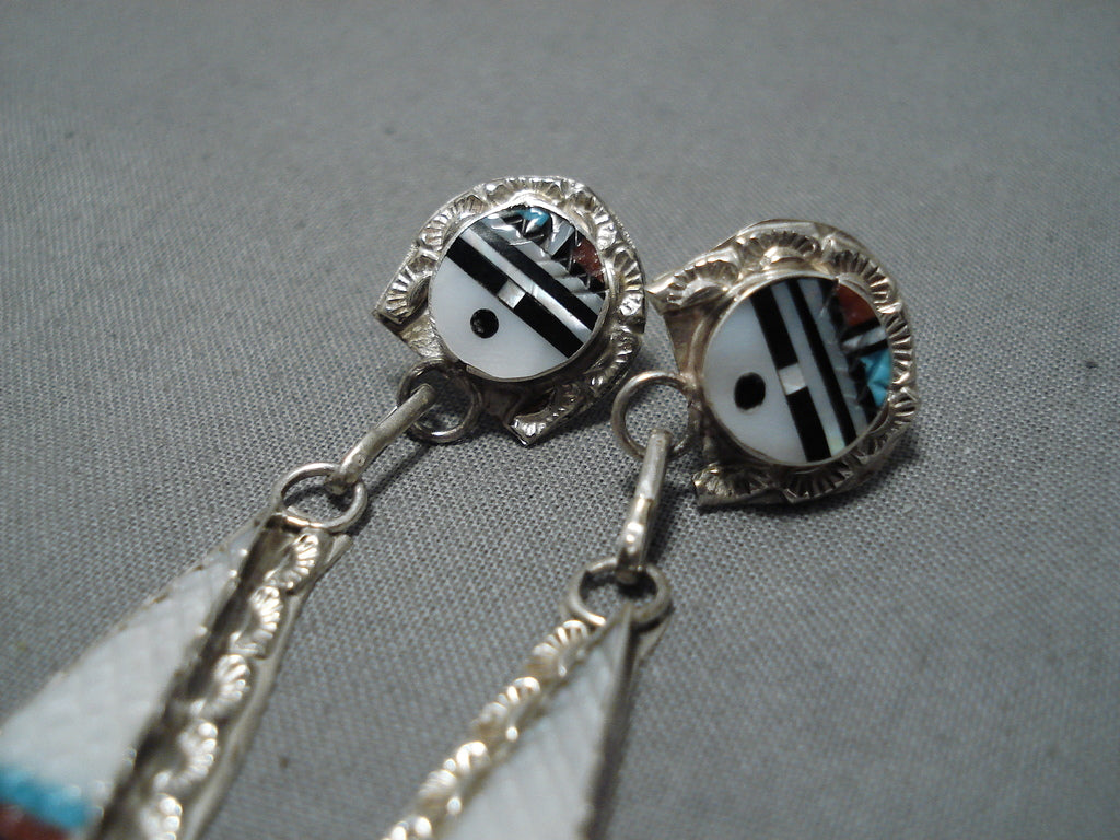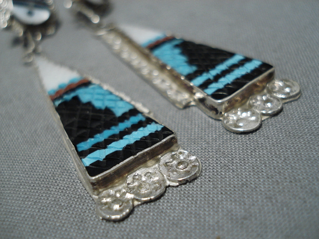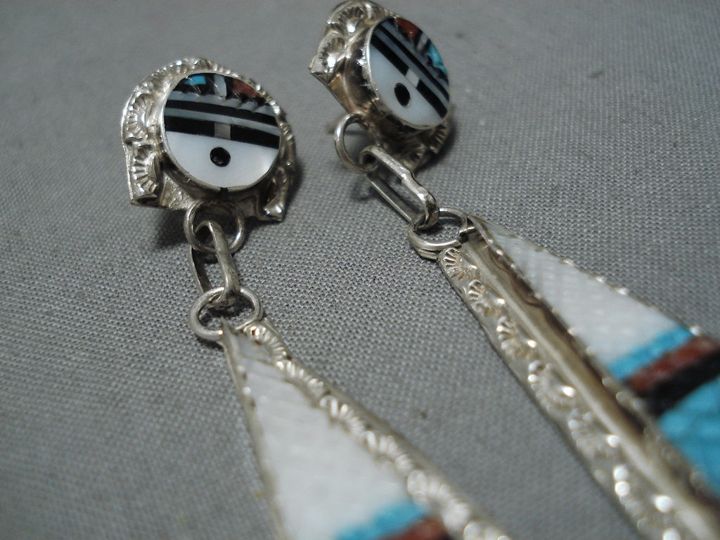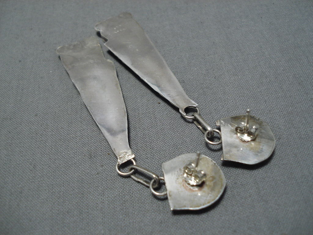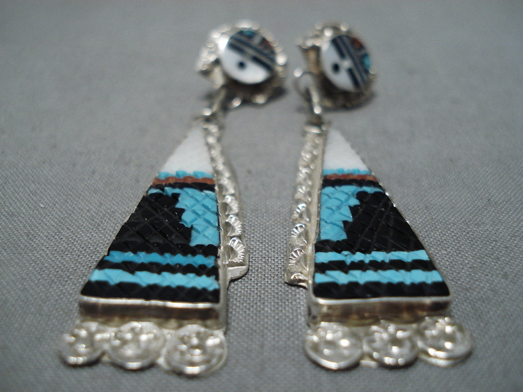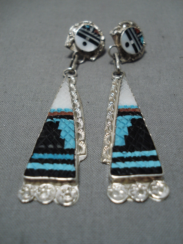 Important Vintage Native American Zuni Eldred Martinez Turquoise Sterling Silver Earrings