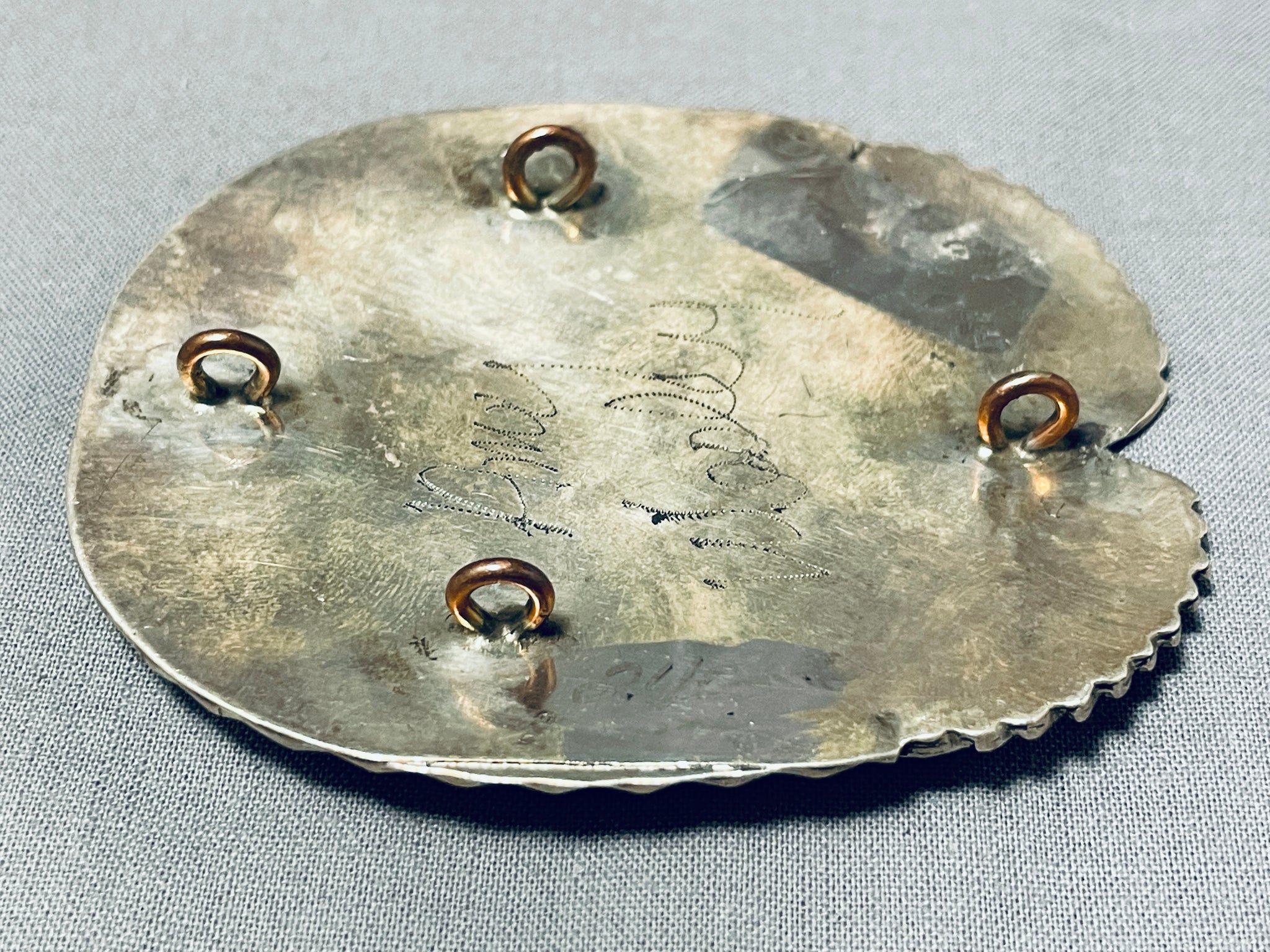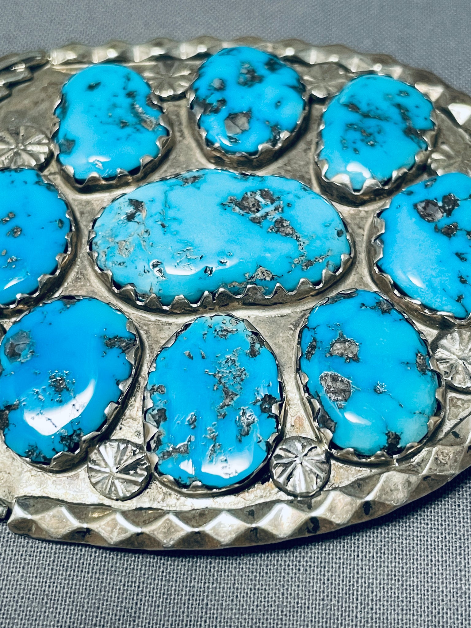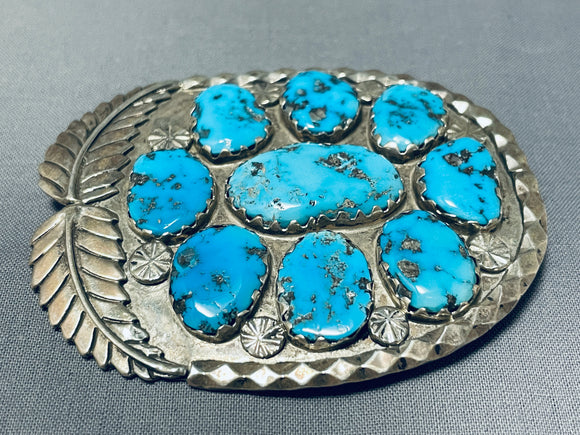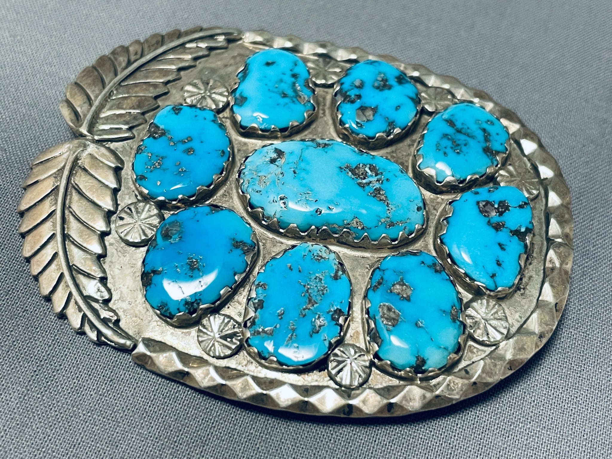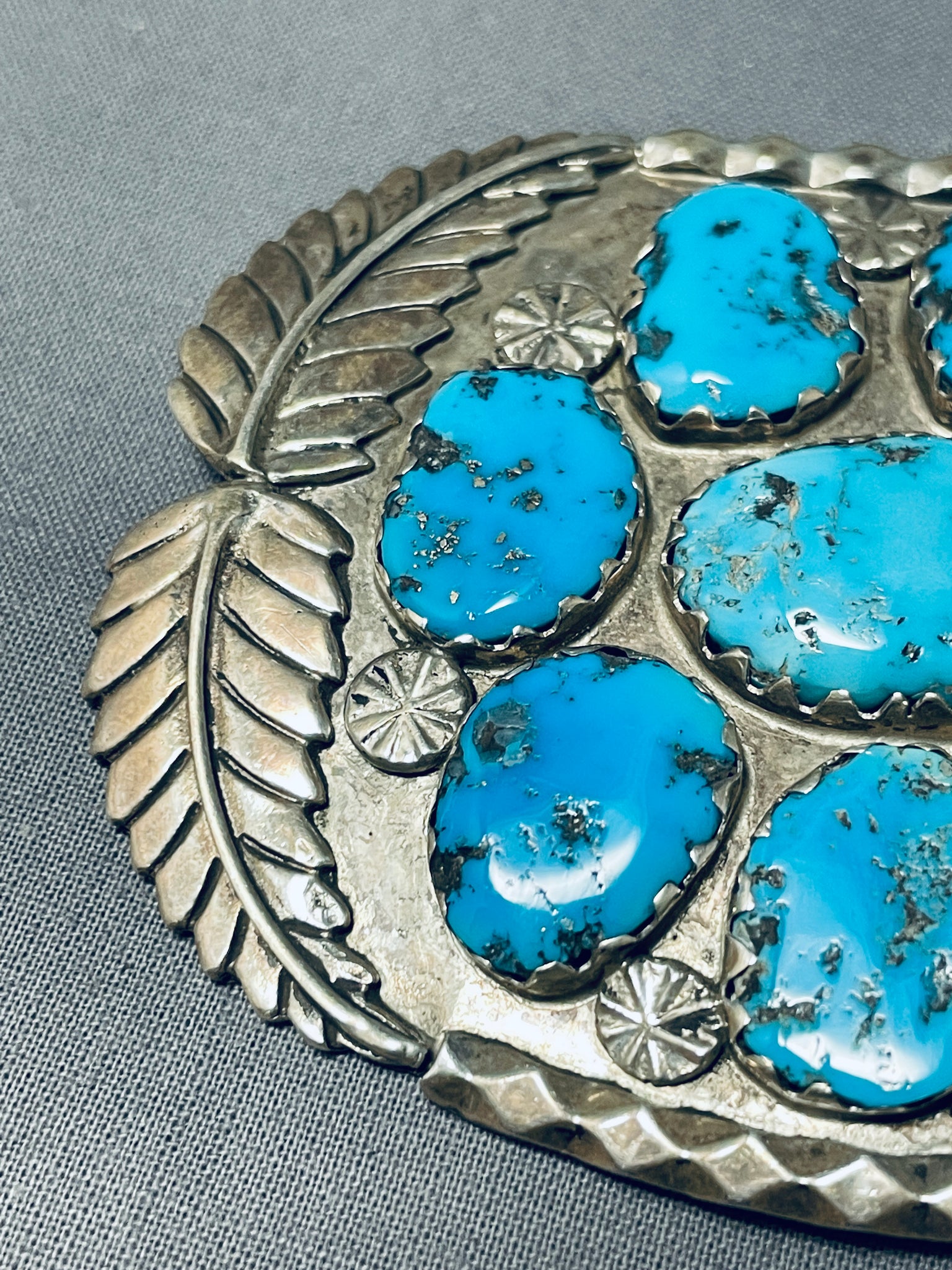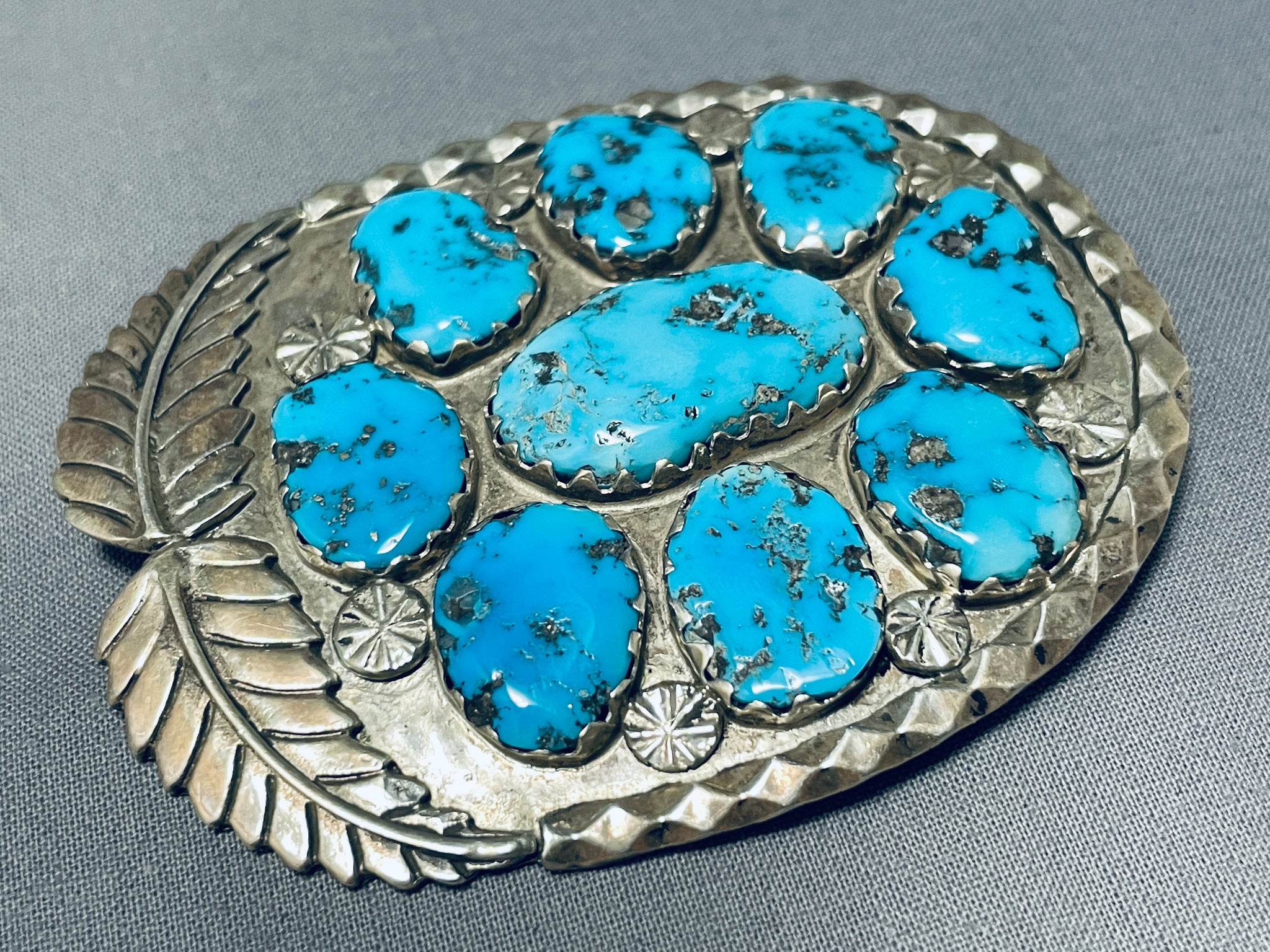Important Vintage Native American Zuni Sleeping Beauty Turquoise Sterling Silver Pin Signed