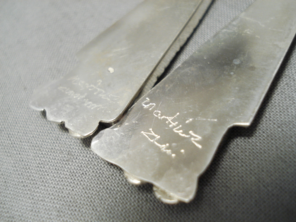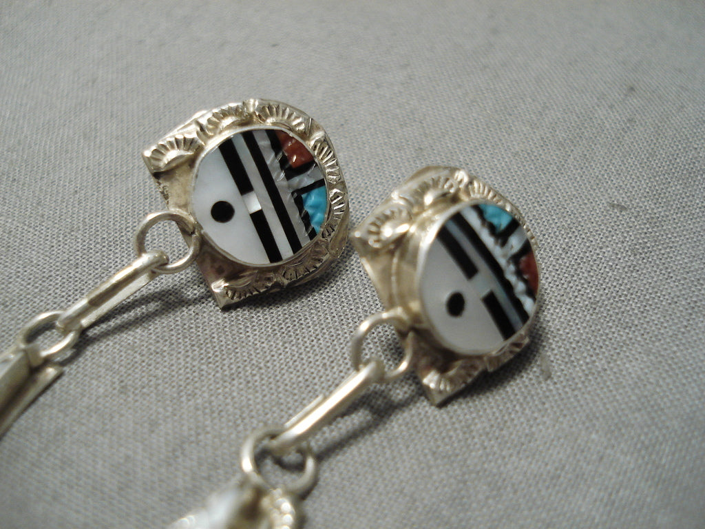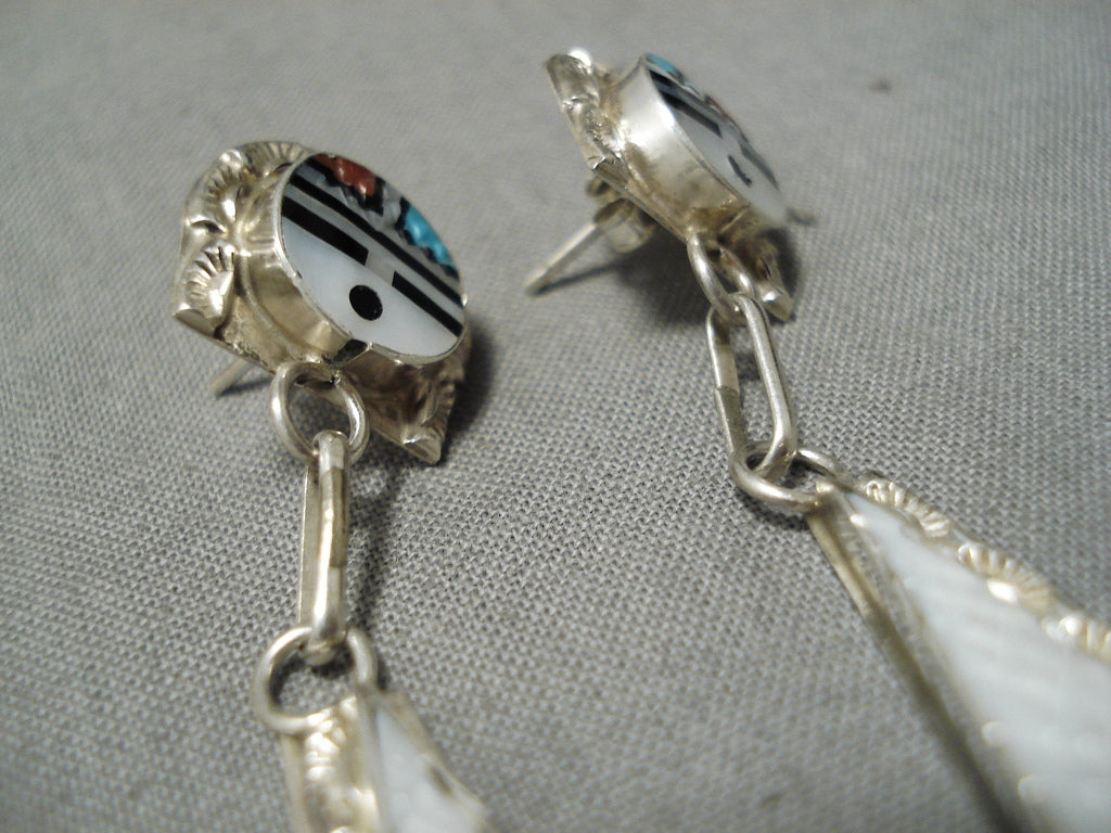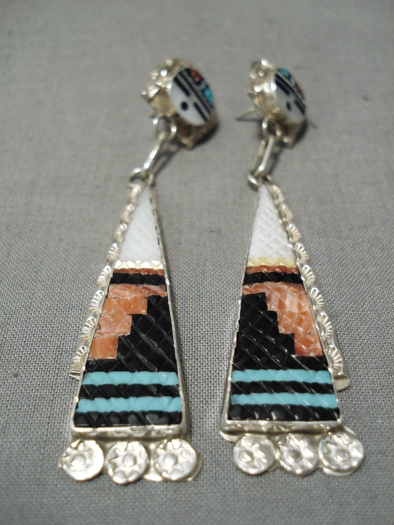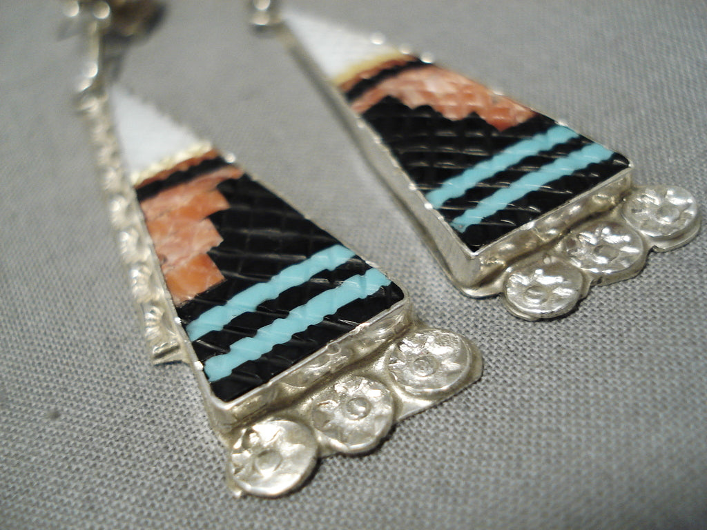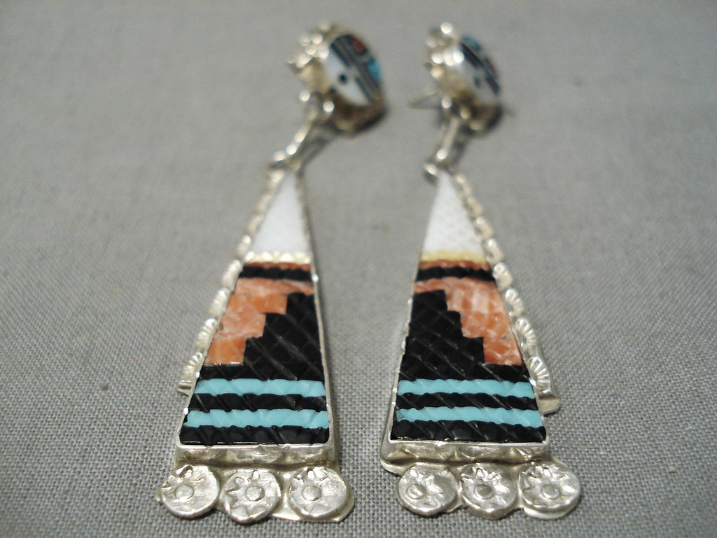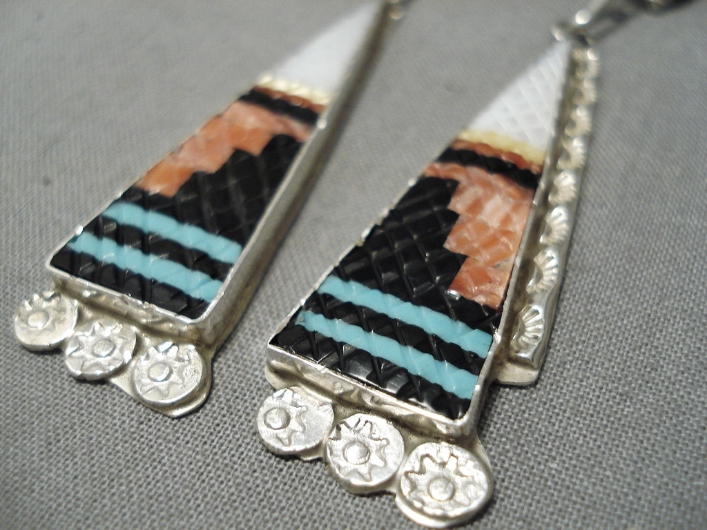 Important Zuni Native American Turquoise Inlay Sterling Silver Earrings