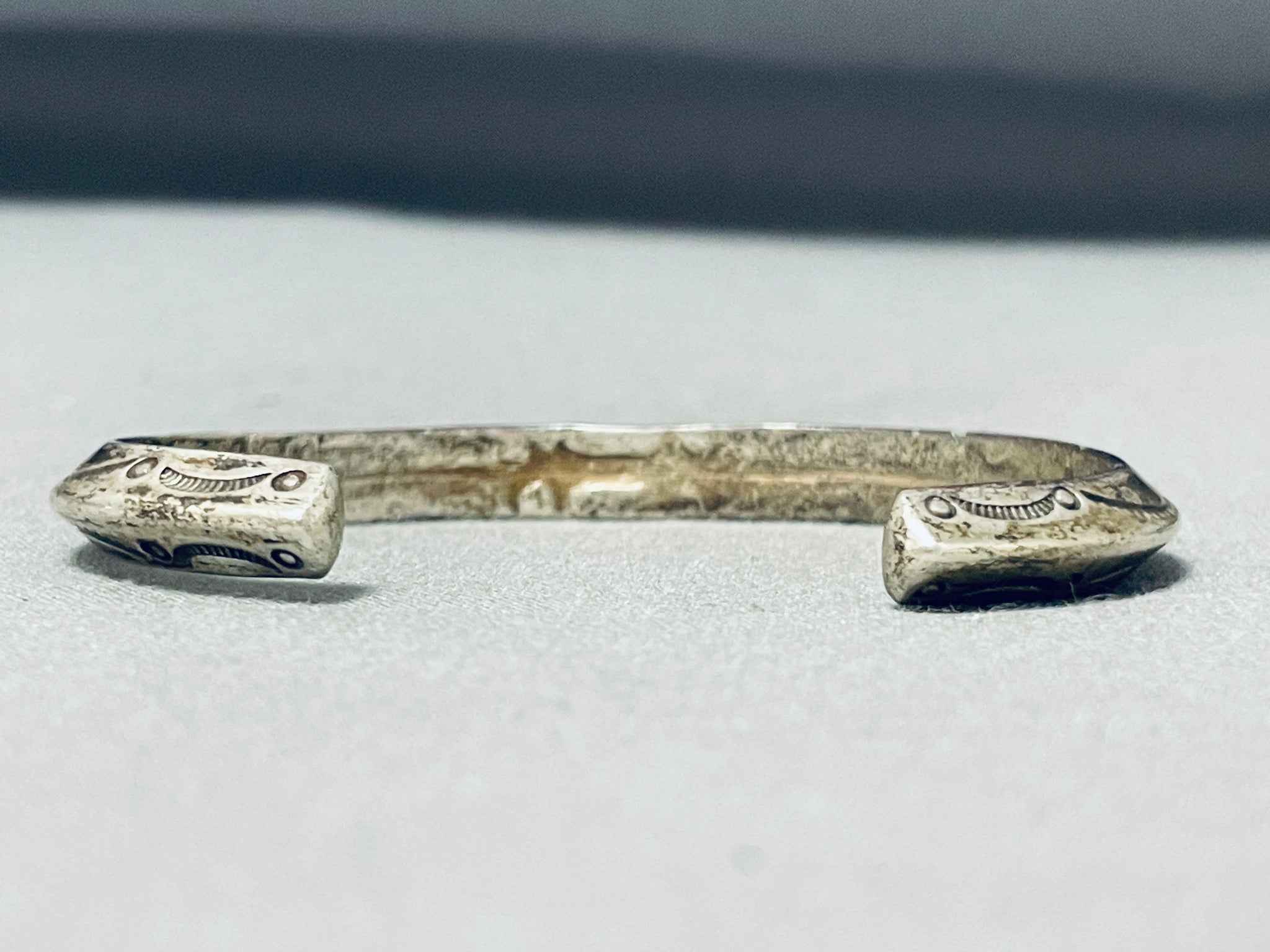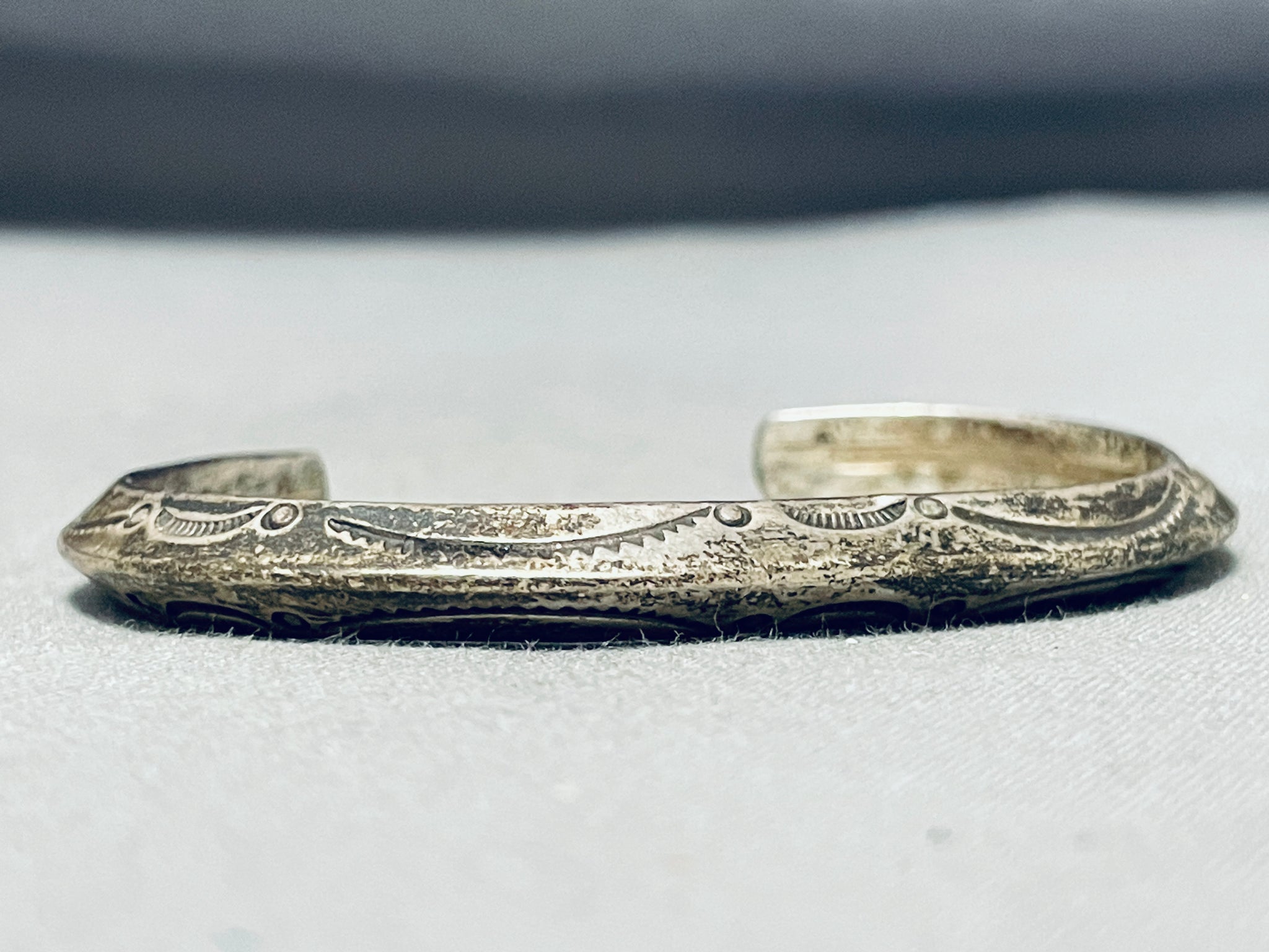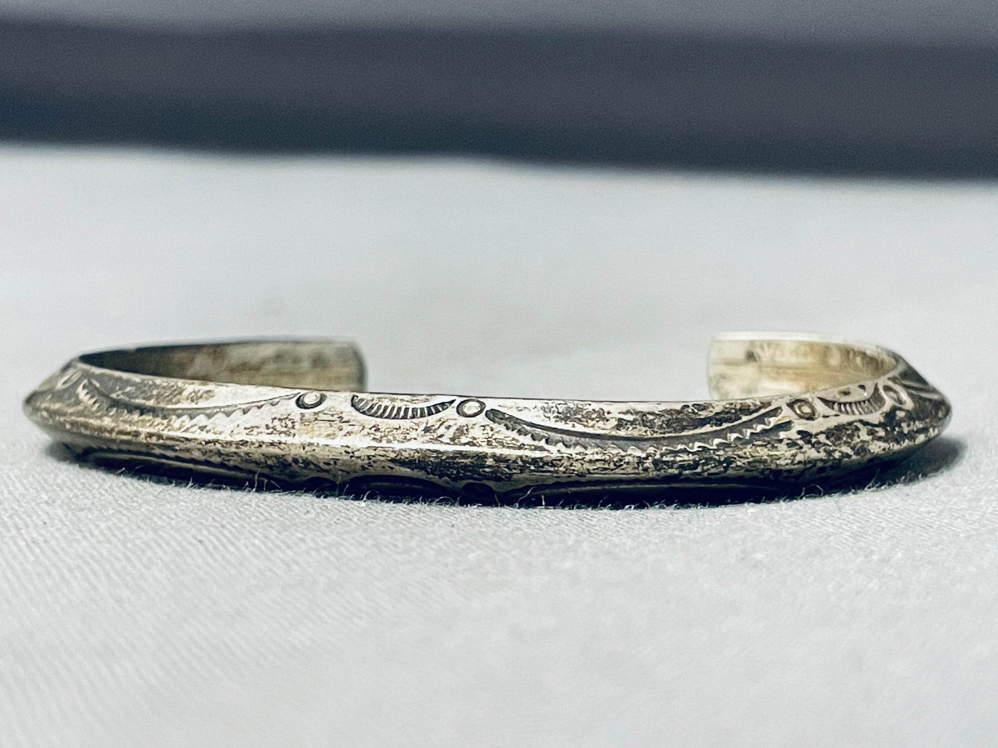 Impressive Vintage Native American Navajo Sterling Silver Handstamped Solid Bracelet