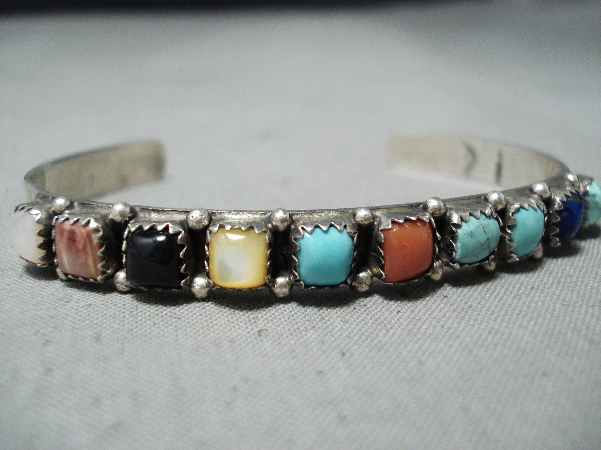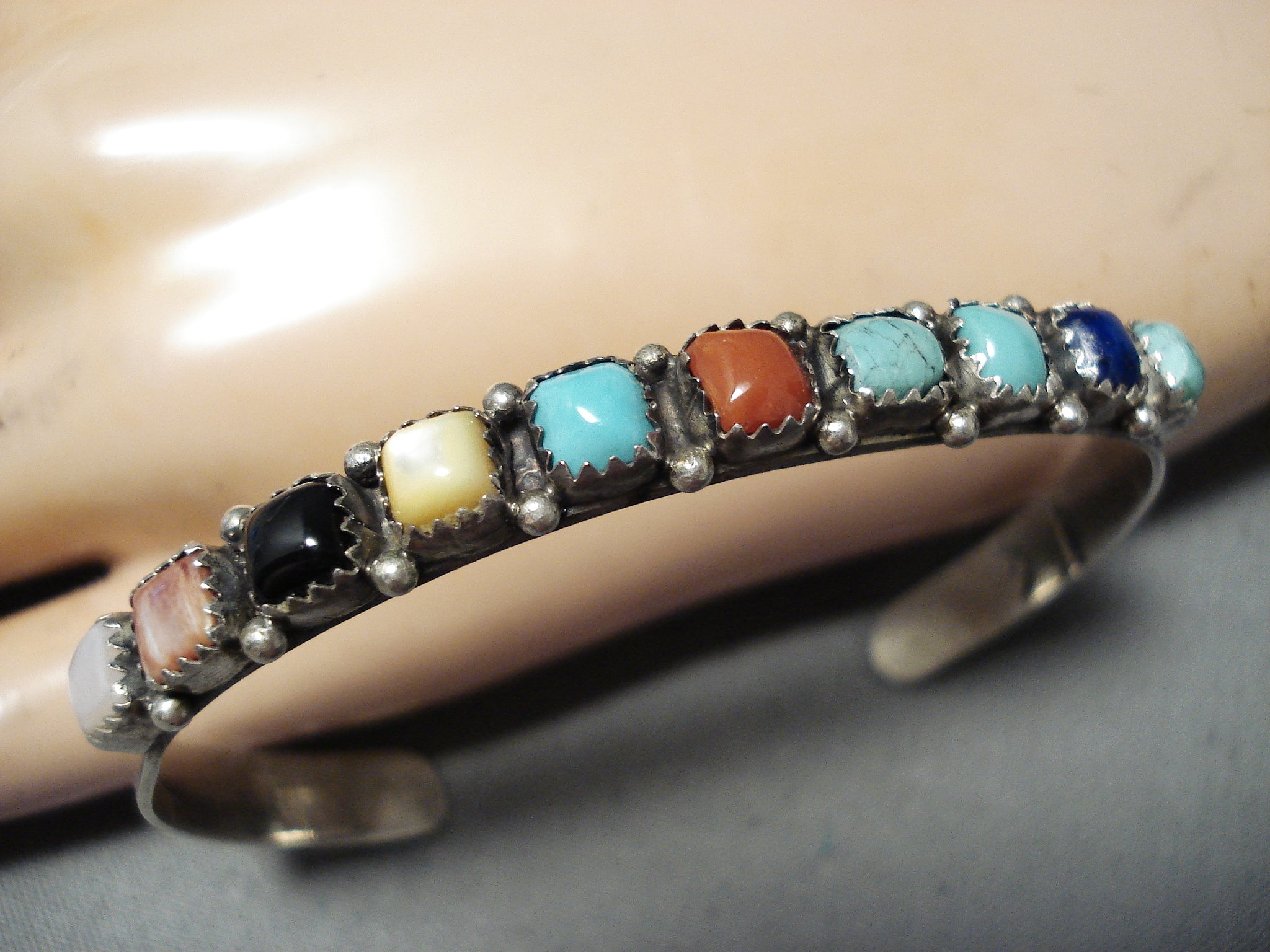 Impressive Vintage Native American Navajo Turquoise And Multi-stone Sterling Silver Bracelet