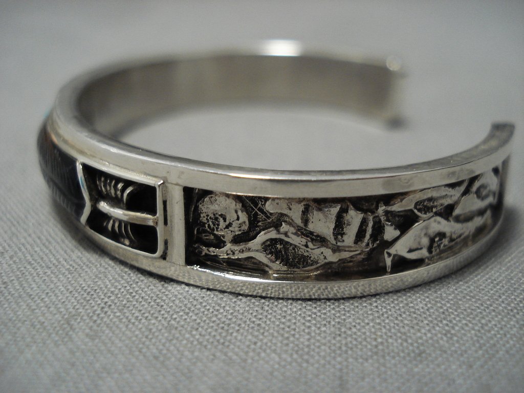 Incredible Don Dewa Sterling Silver Native American Turquoise Inlay Bracelet