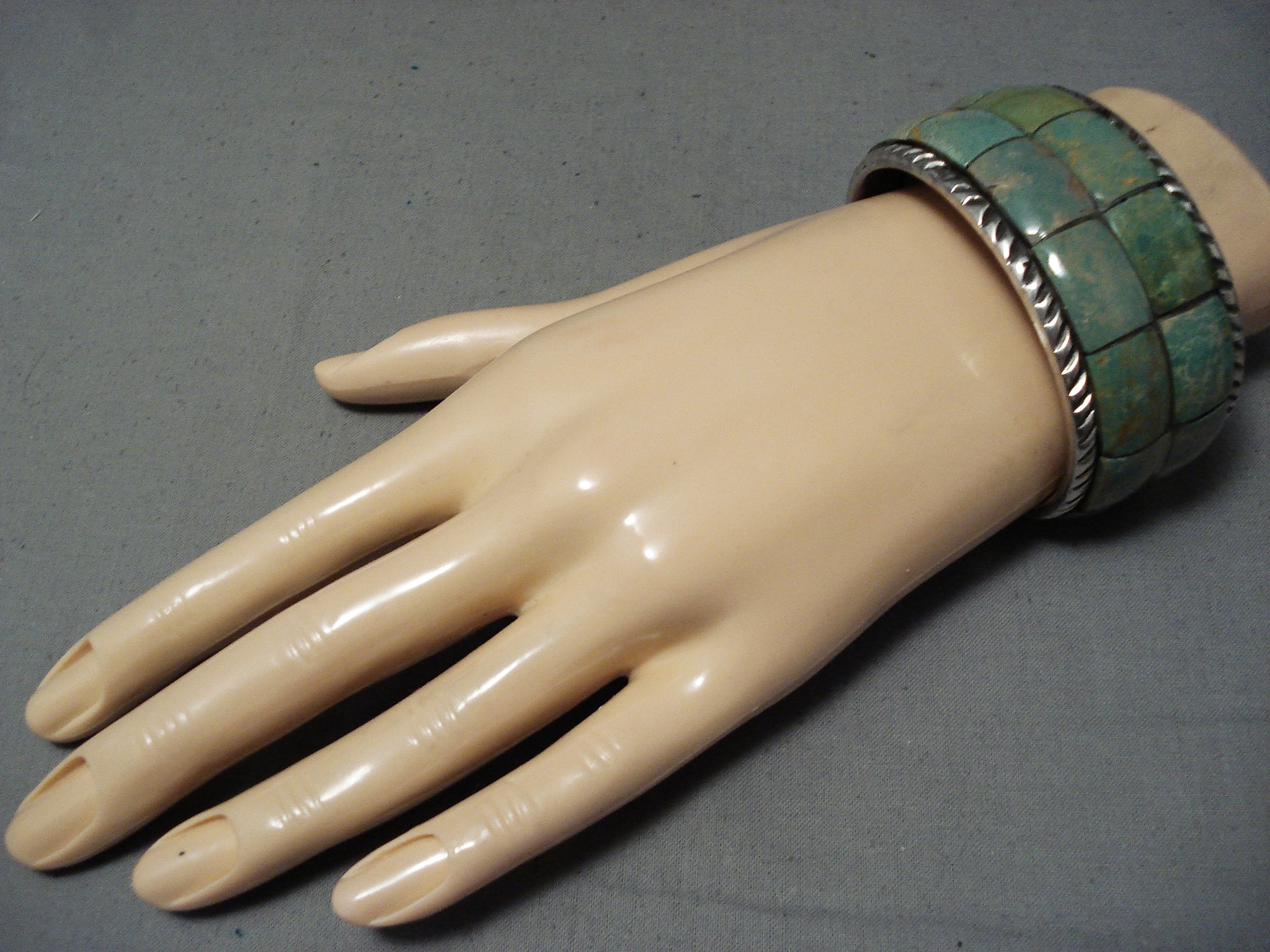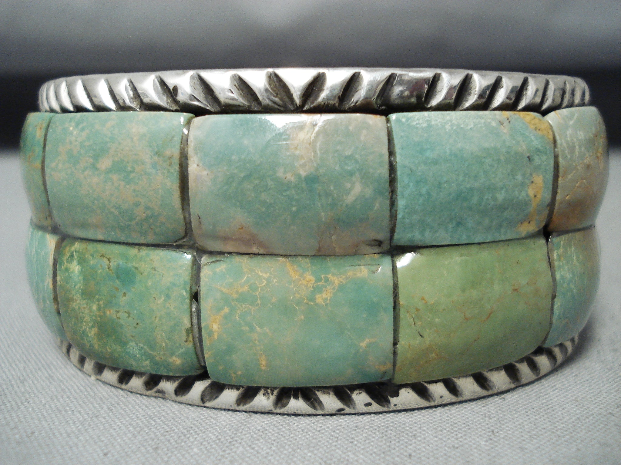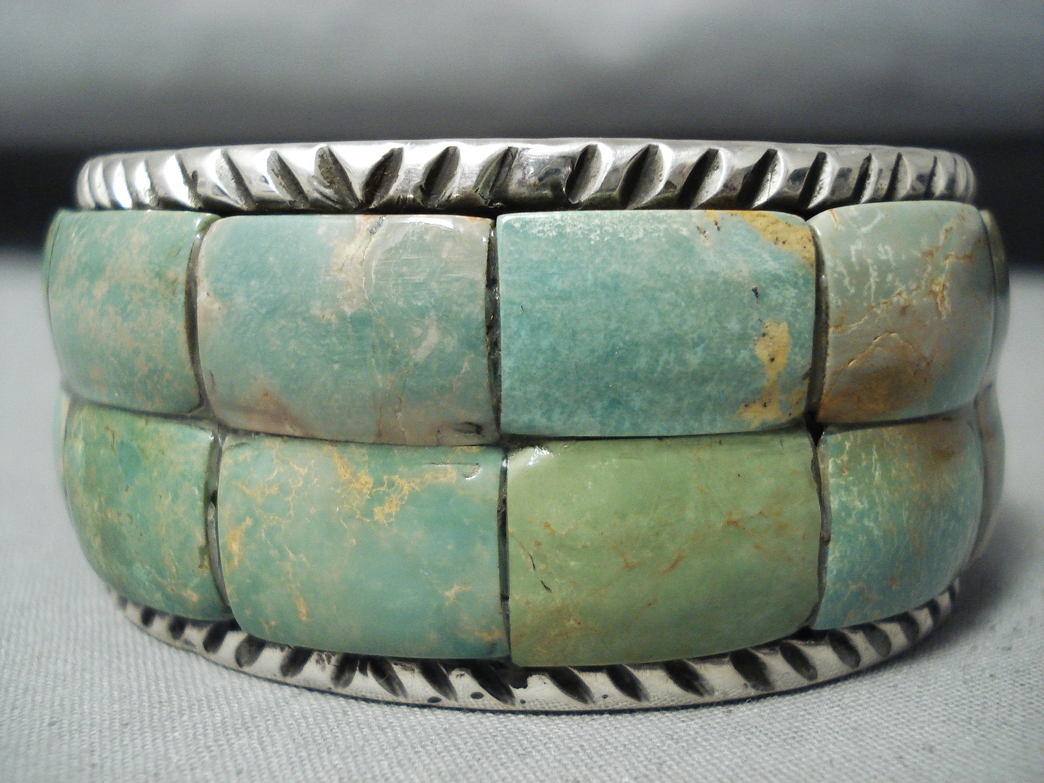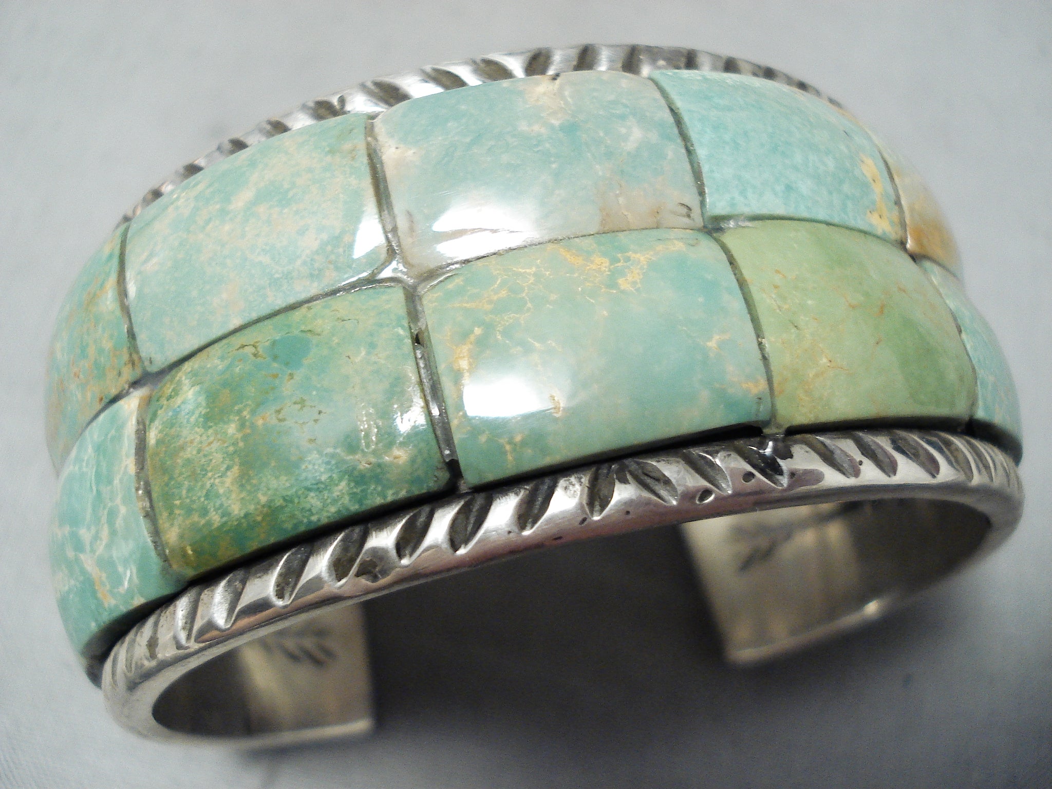Incredible Native American Navajo 18 Royston Turquoise Sterling Silver Bracelet