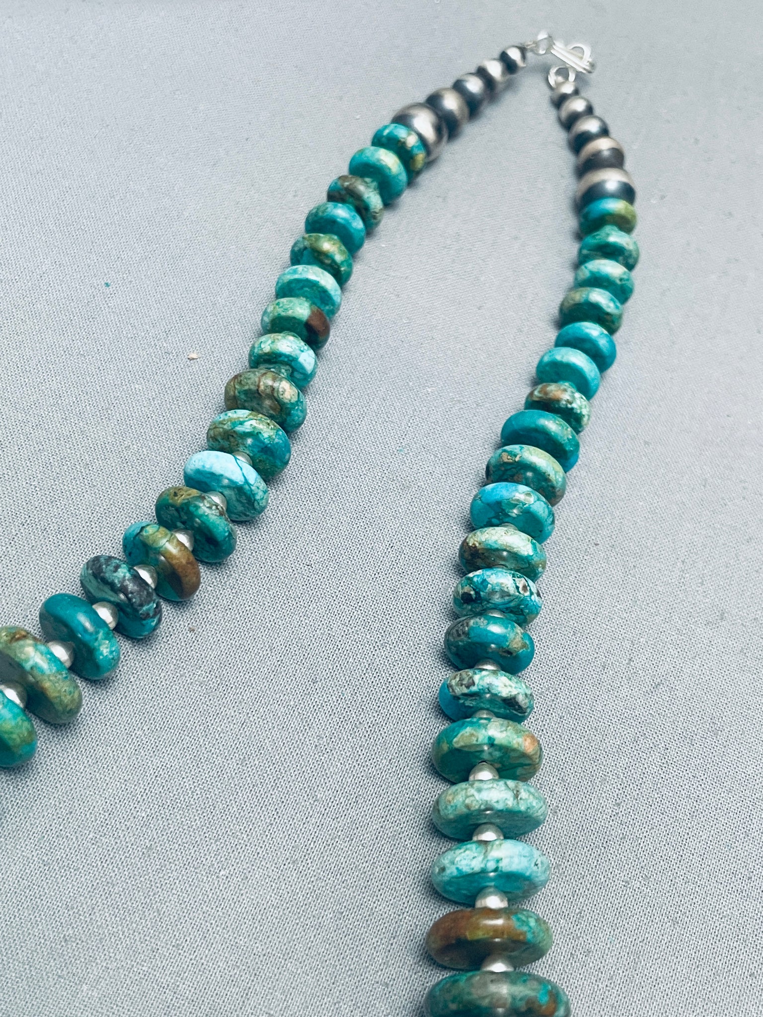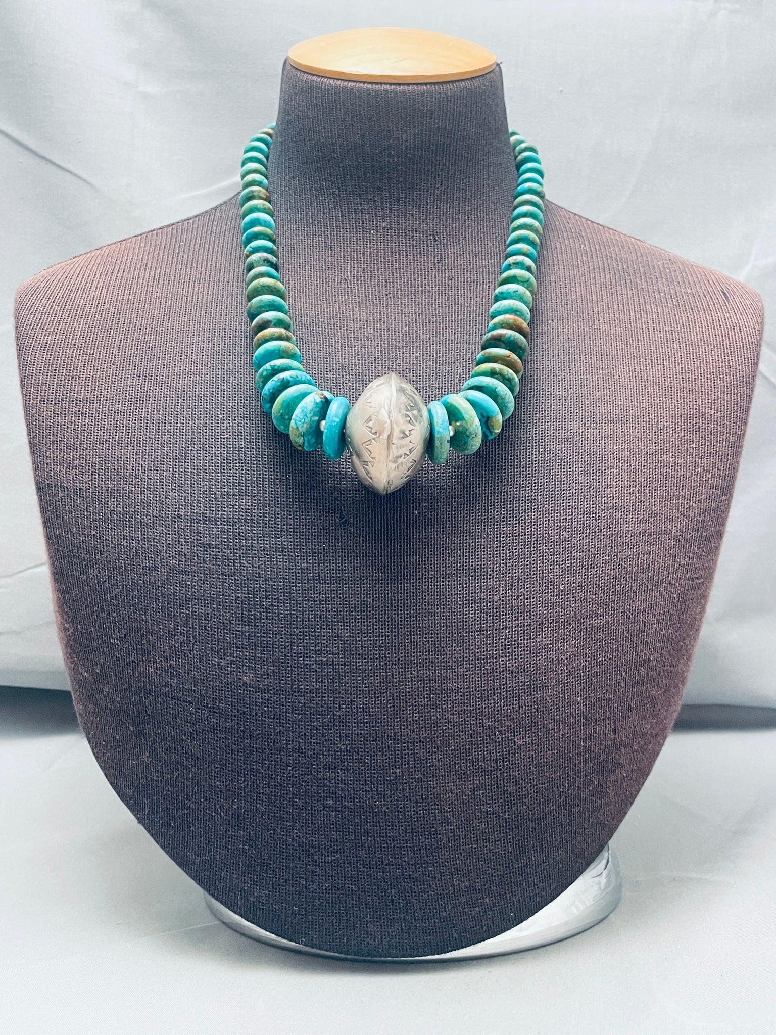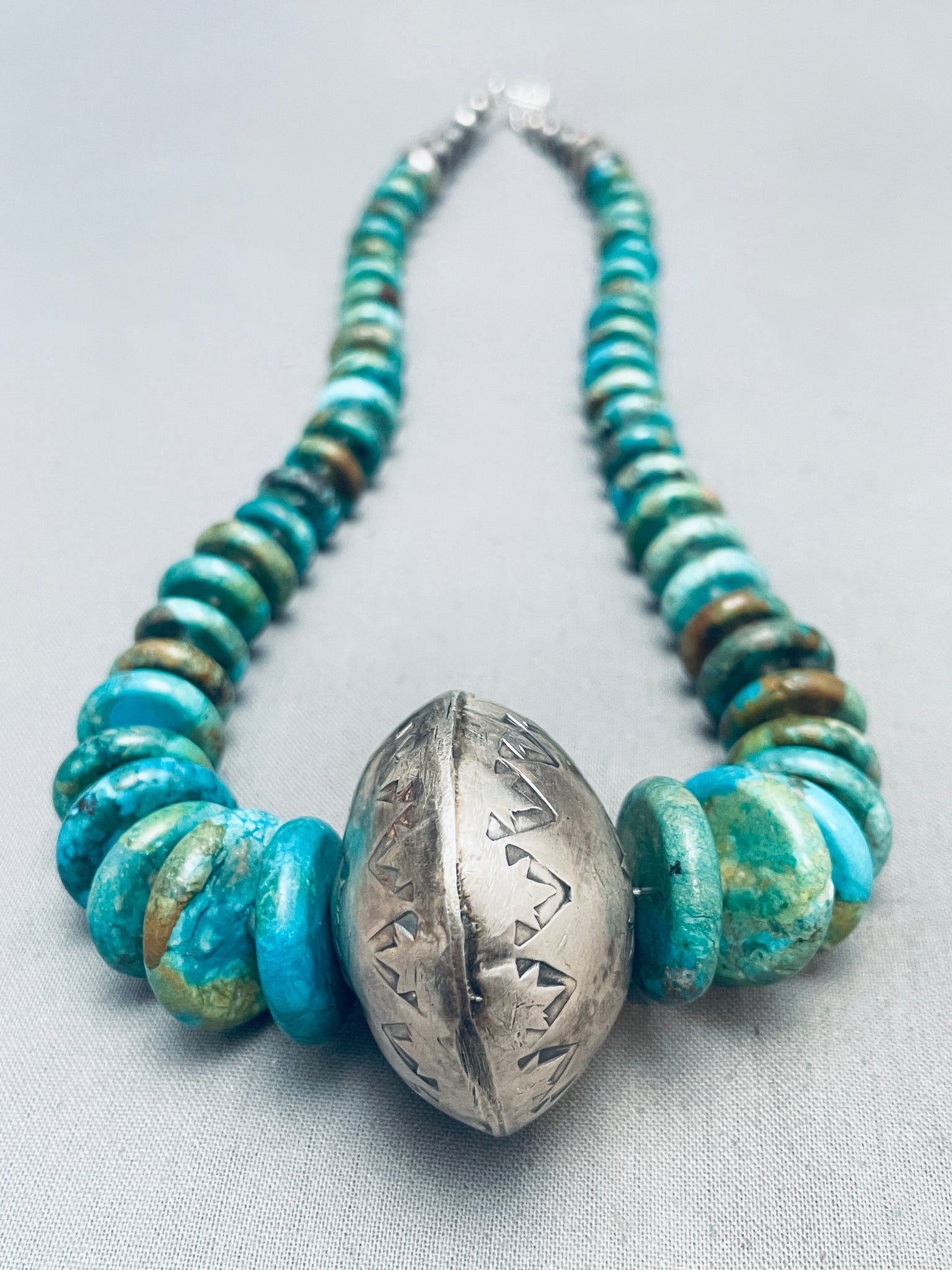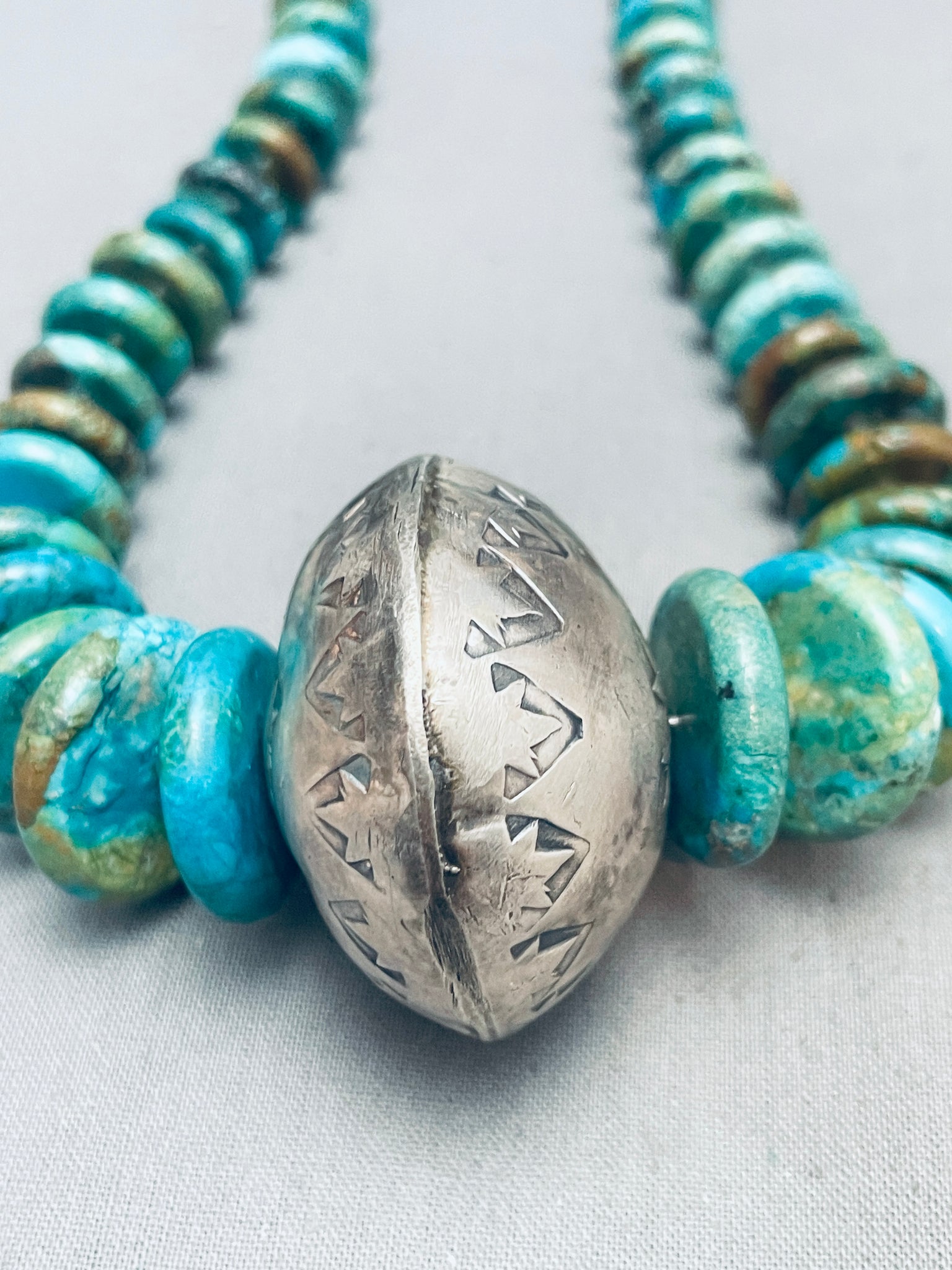 Incredible Native American Navajo Massive Bead Sterling Silver Turquoise Necklace