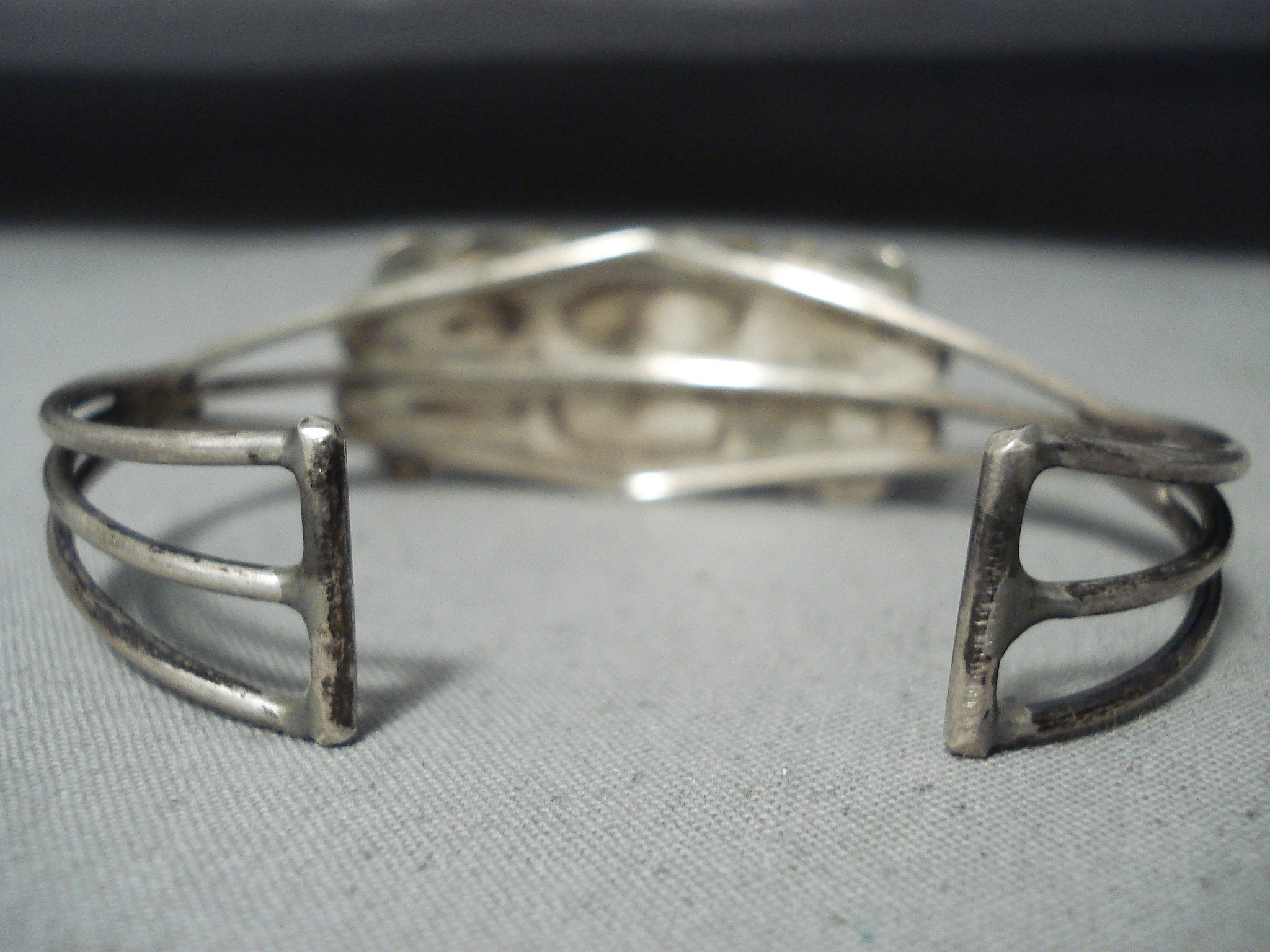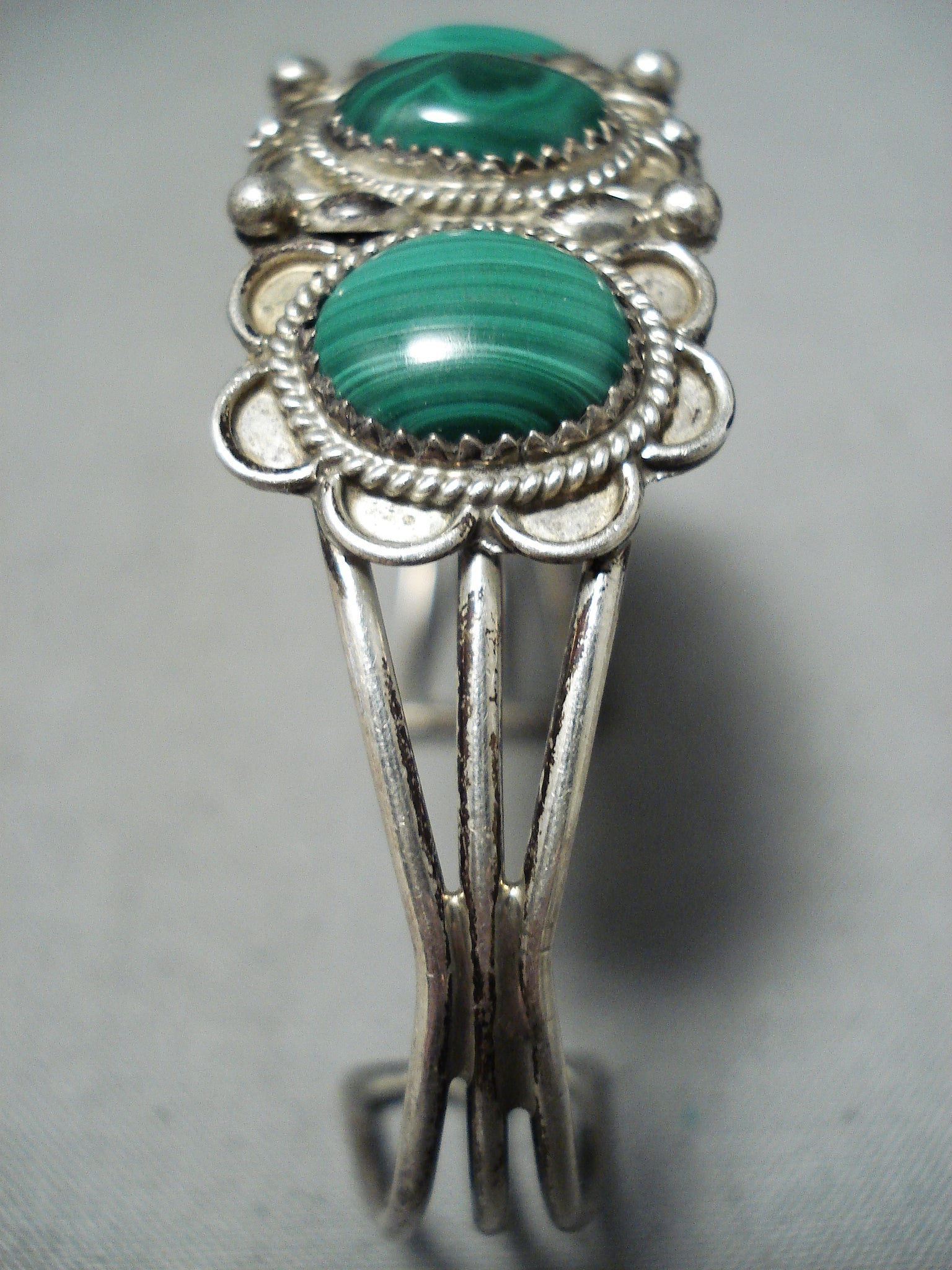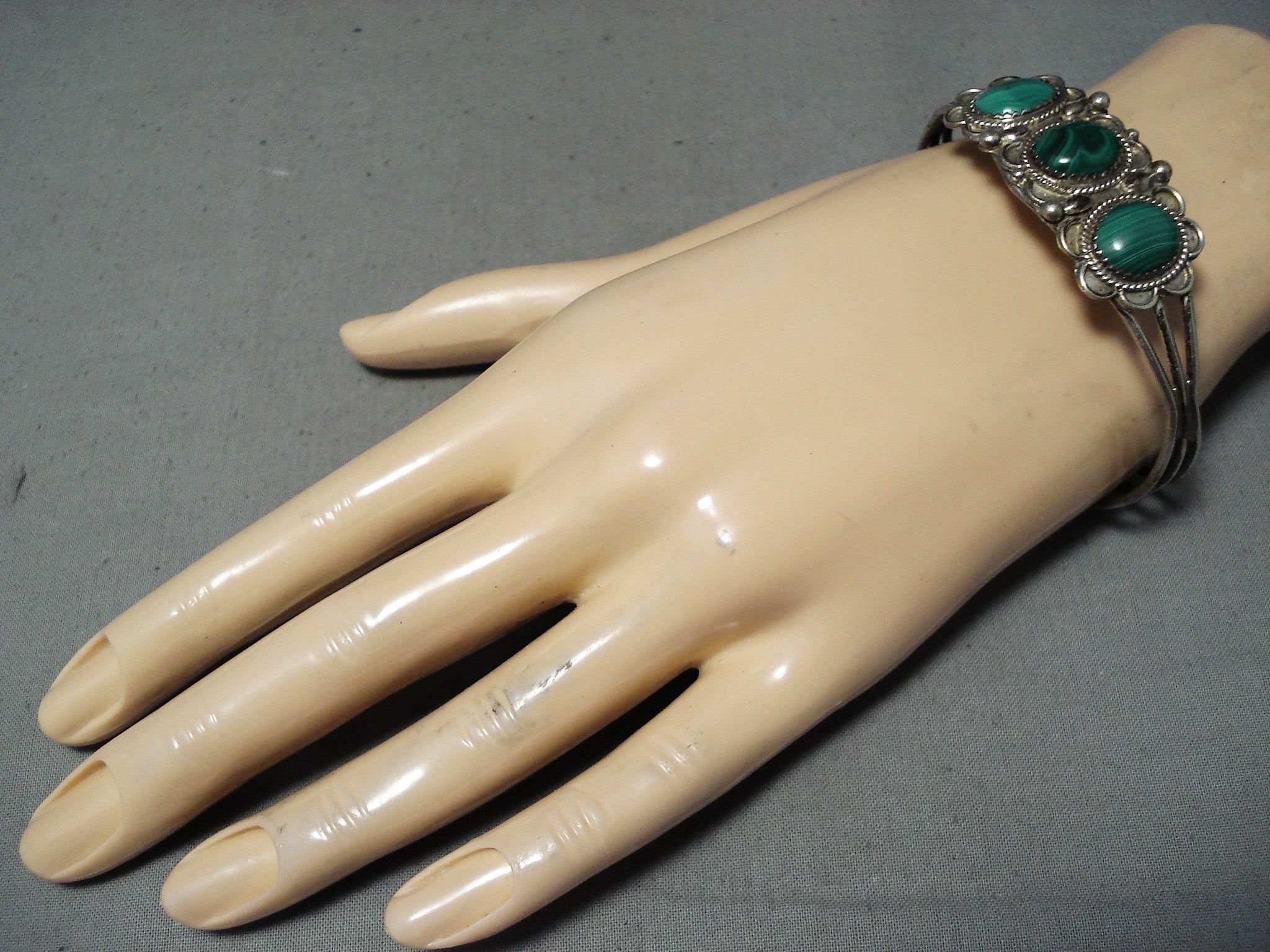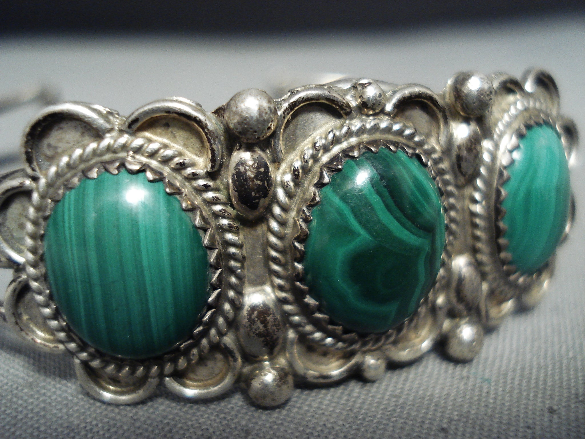 Incredible Vintage Native American Navajo 3 Malachite Sterling Silver Bracelet