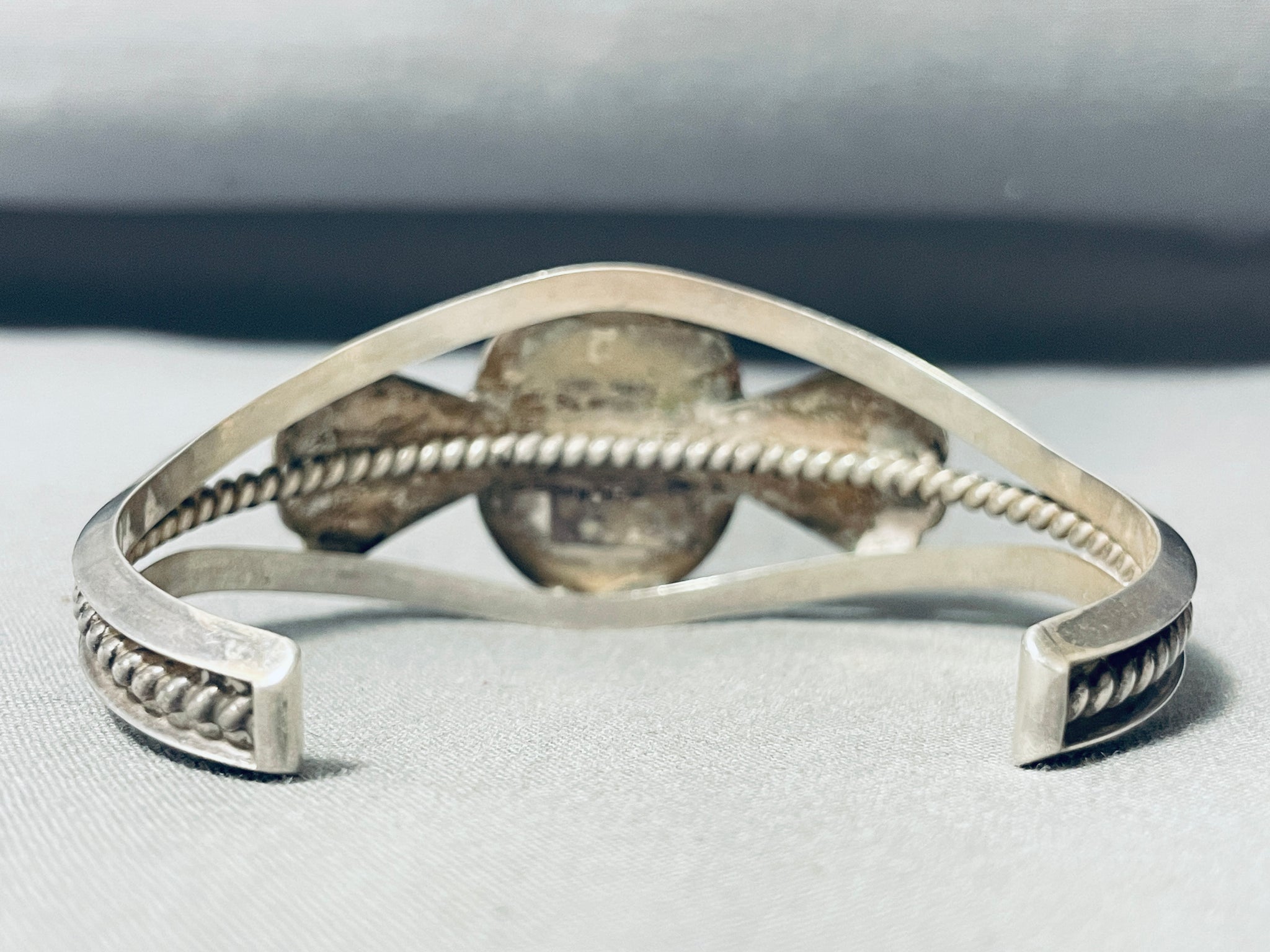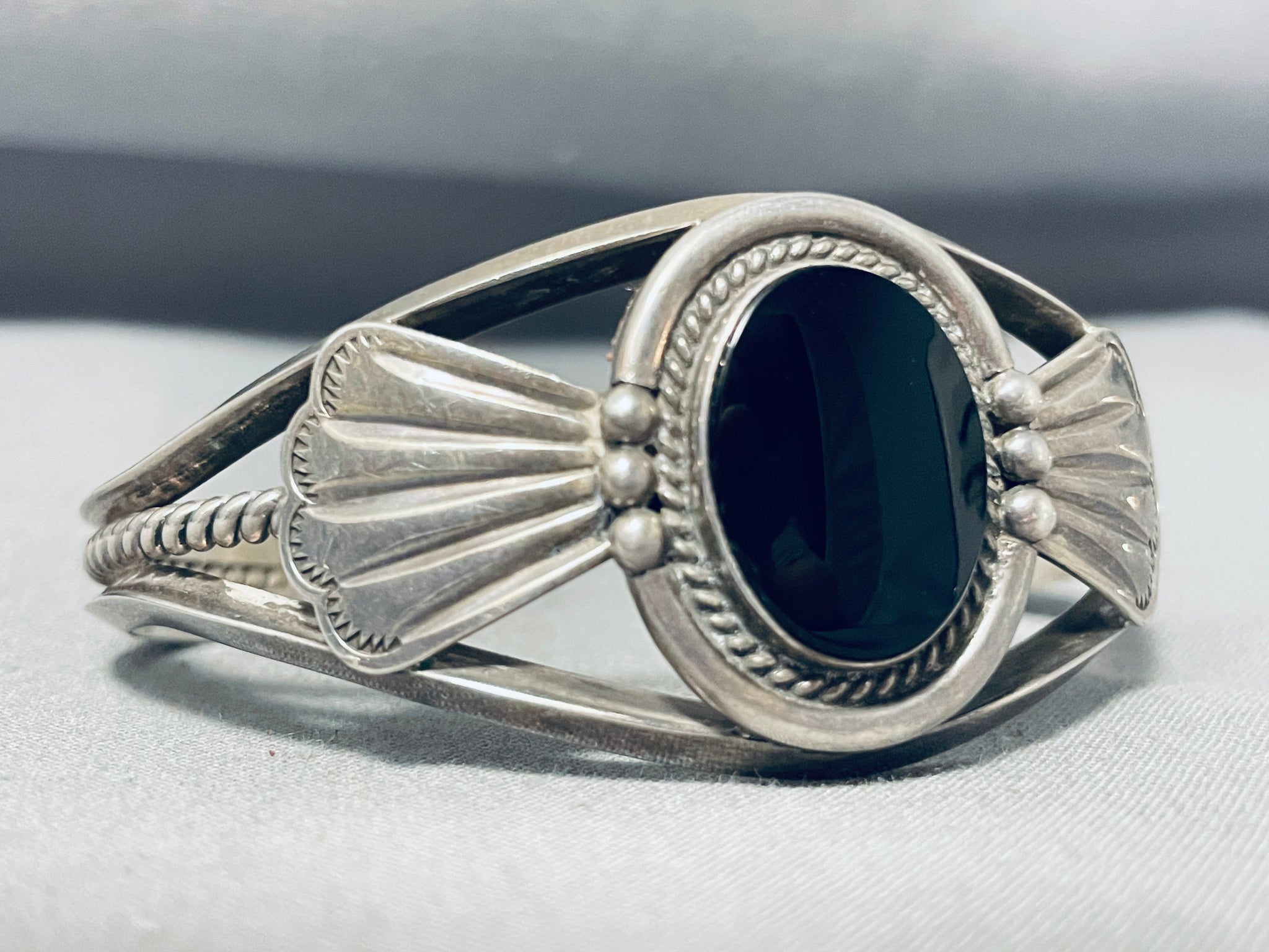 Incredible Vintage Native American Navajo Domed Jet Sterling Silver Flank Bracelet