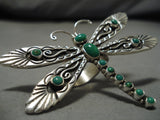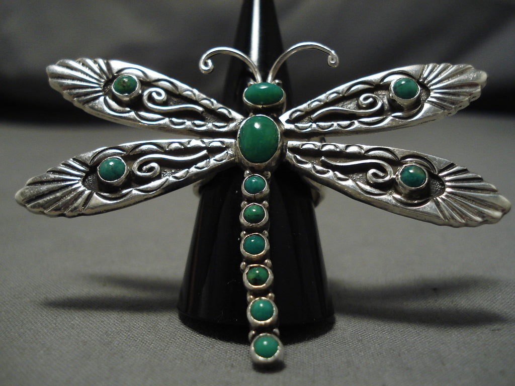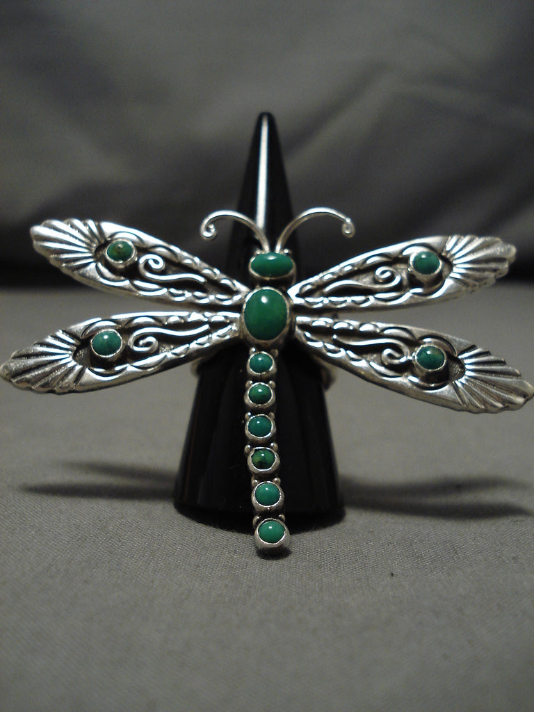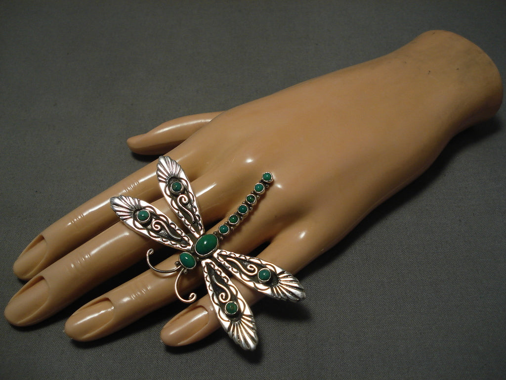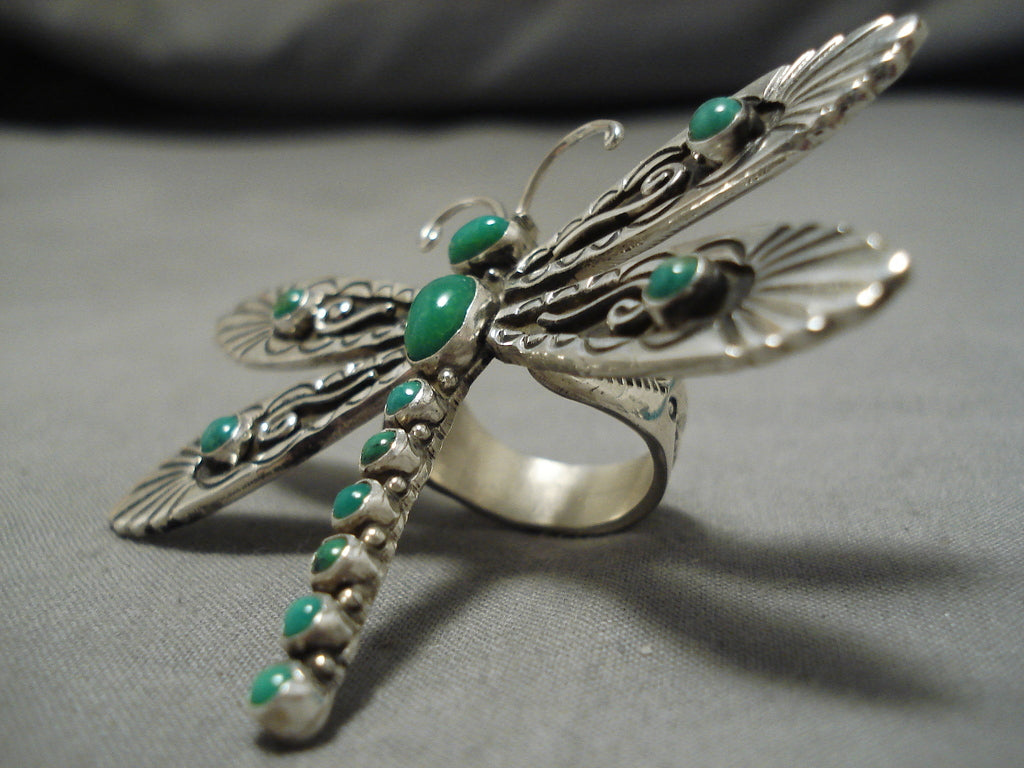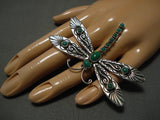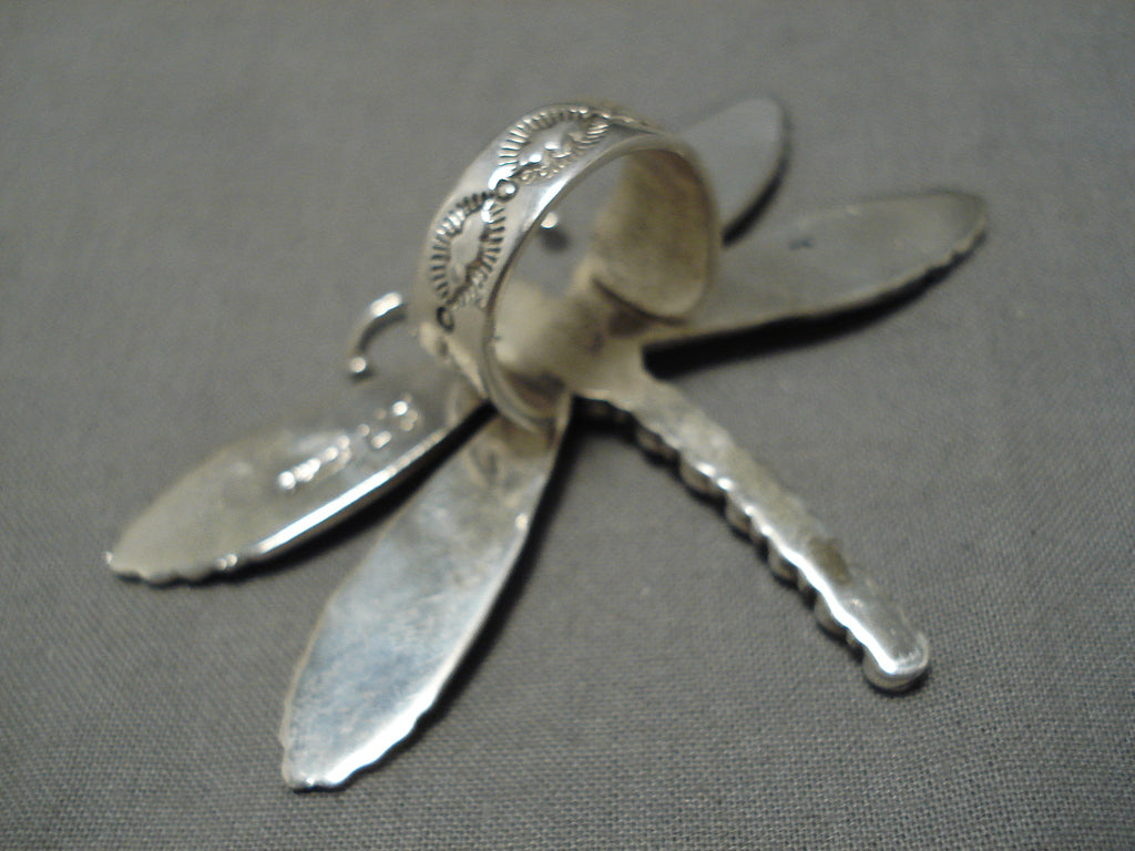 Incredible Vintage Native American Navajo Dragonfly Sterling Silver Gaspeite Ring