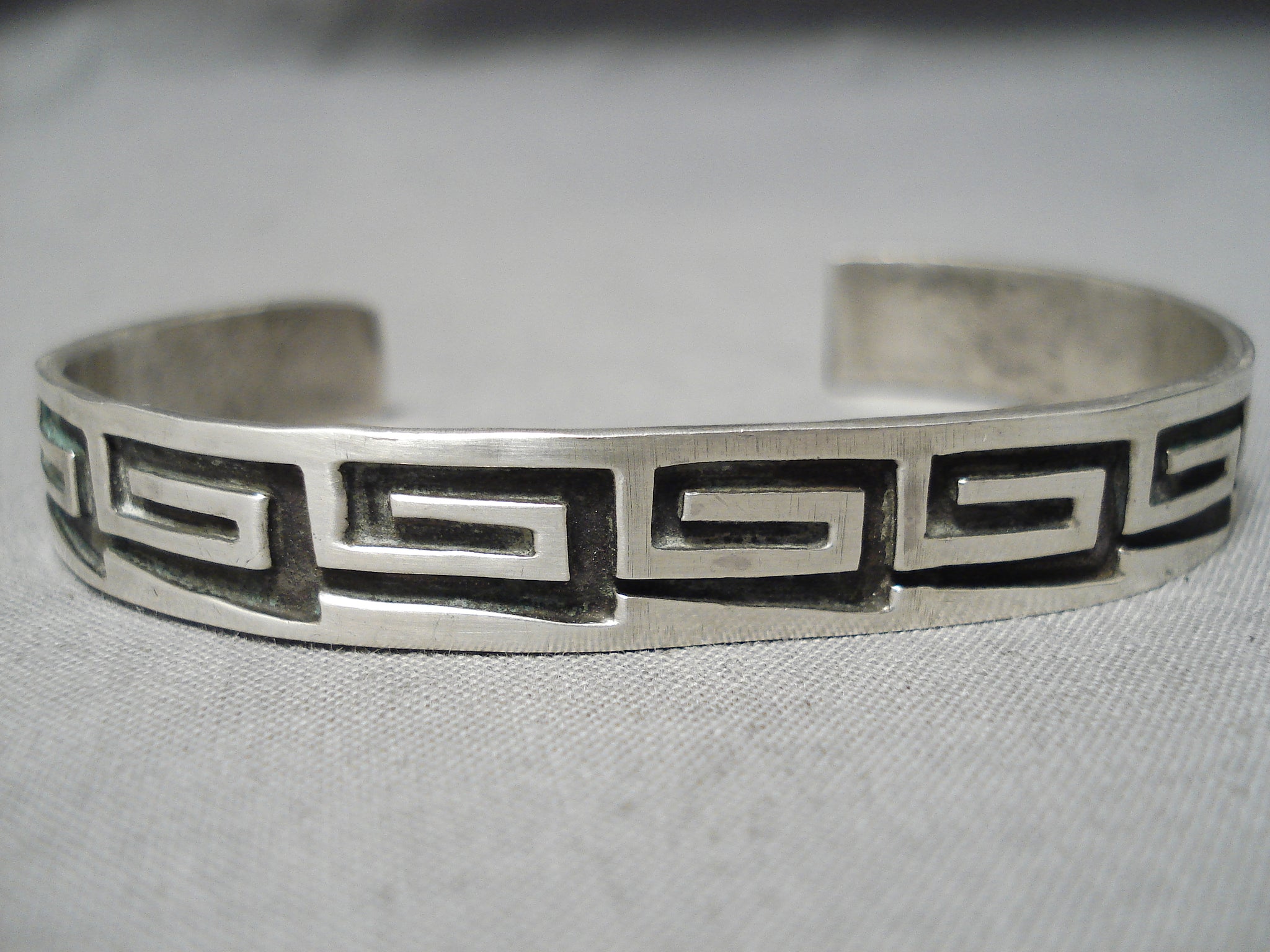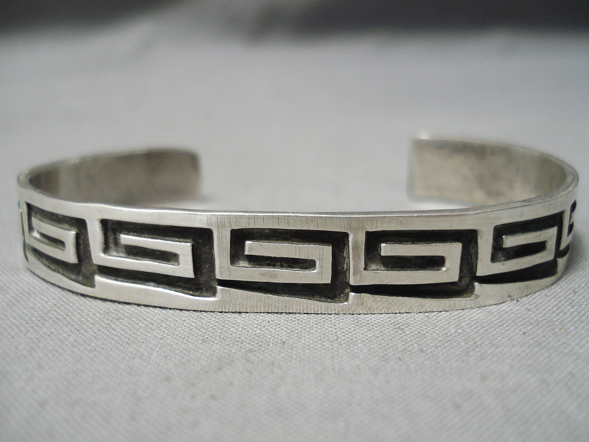 Incredible Vintage Native American Navajo Geometric Water Wave Sterling Silver Bracelet