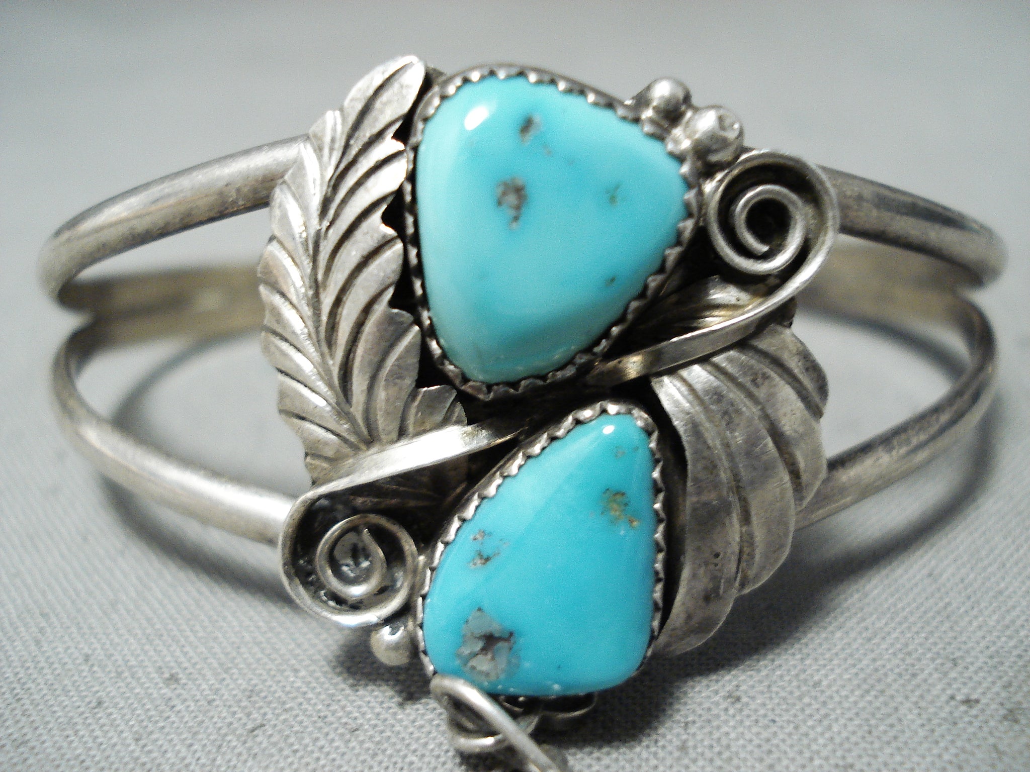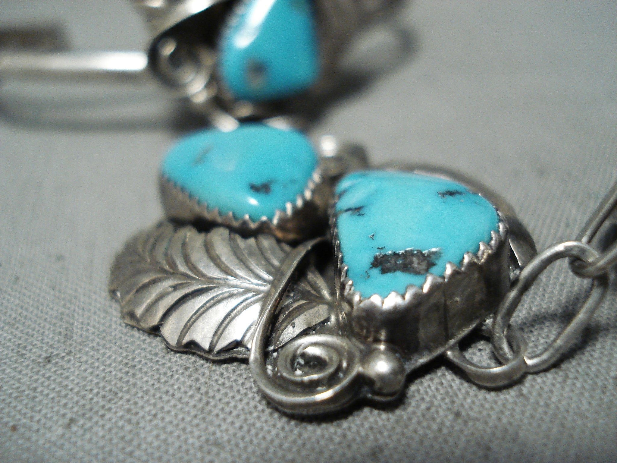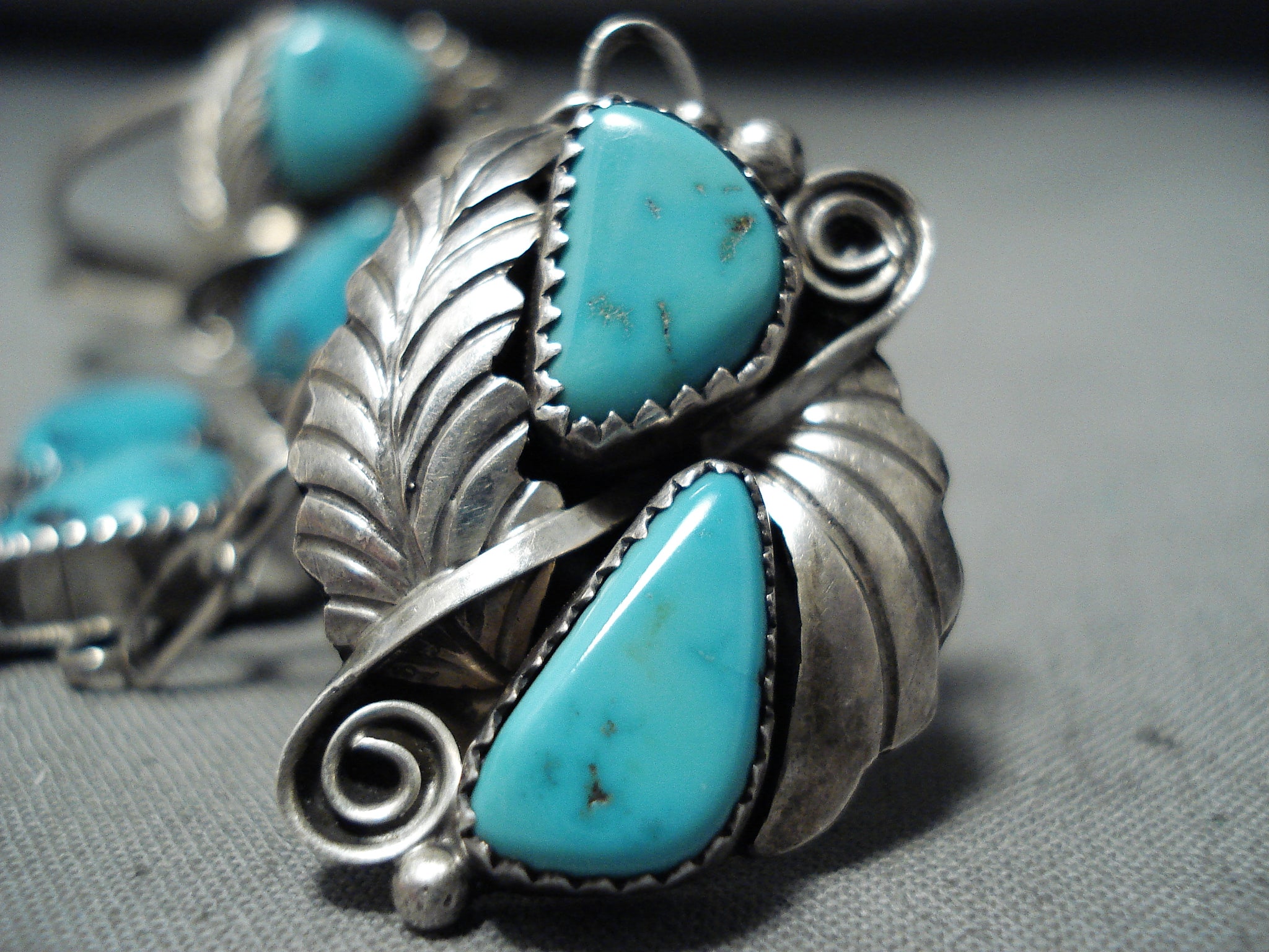 Incredible Vintage Native American Navajo Morenci Turquoise Sterling Silver Slave Bracelet