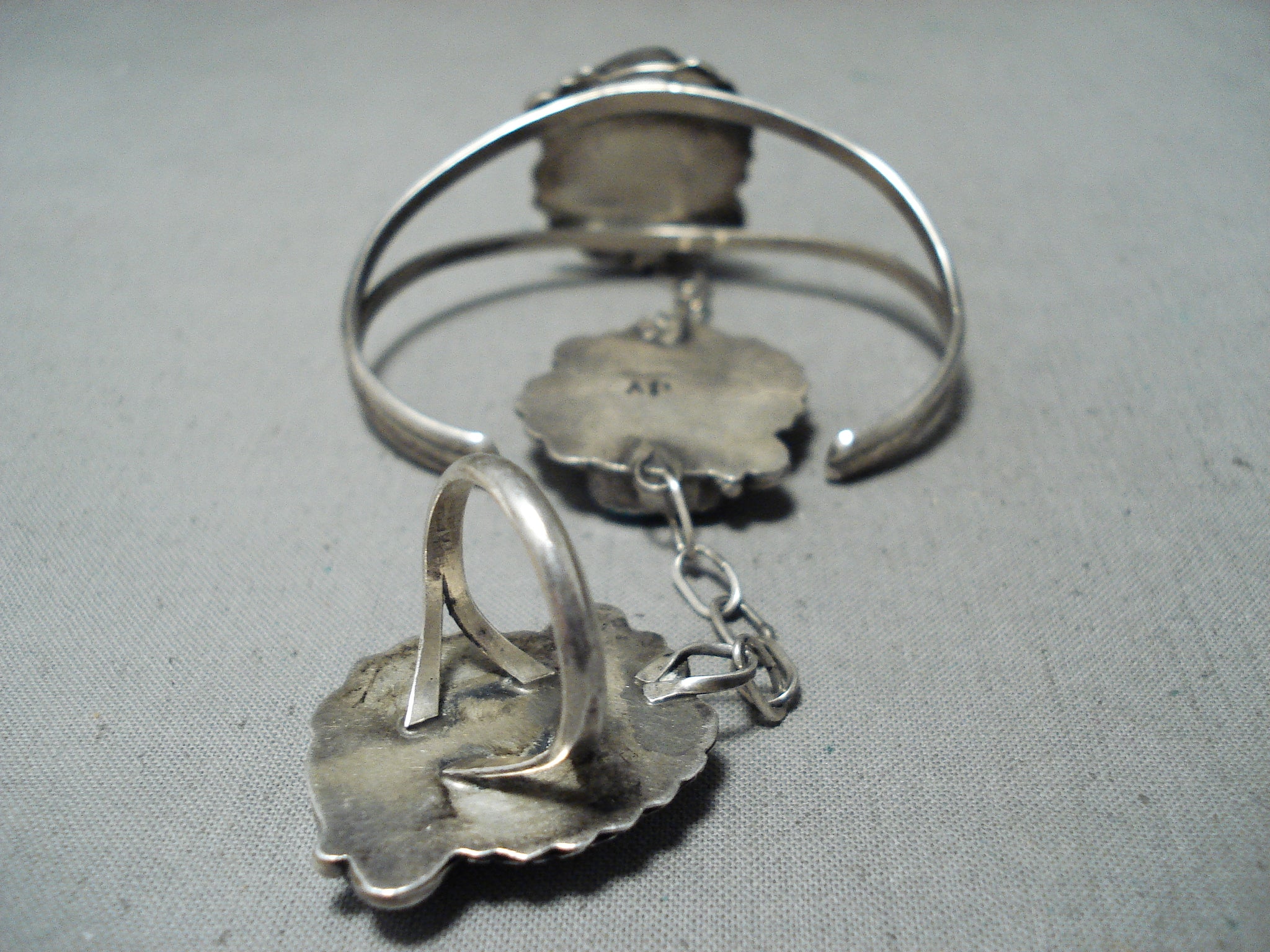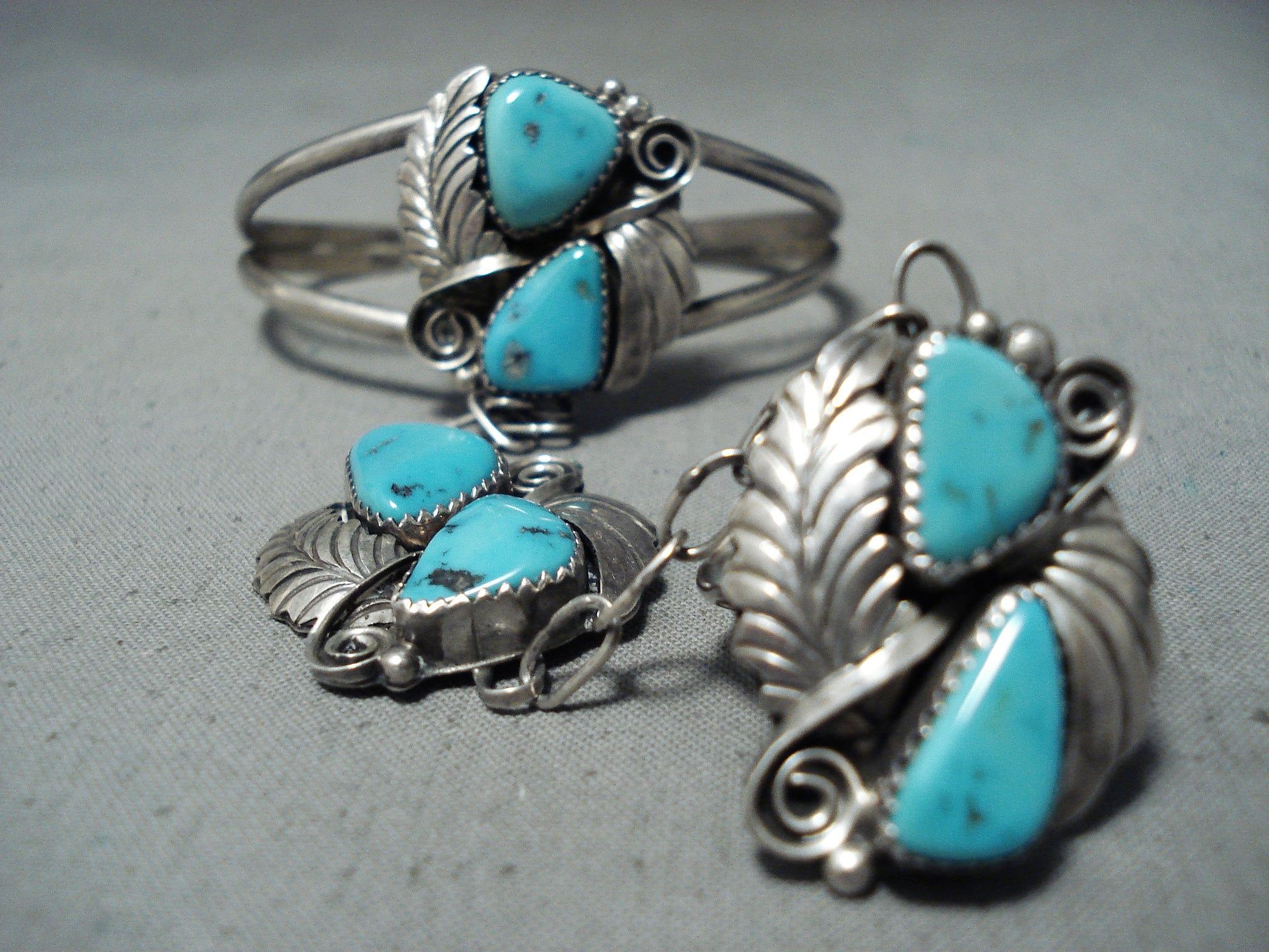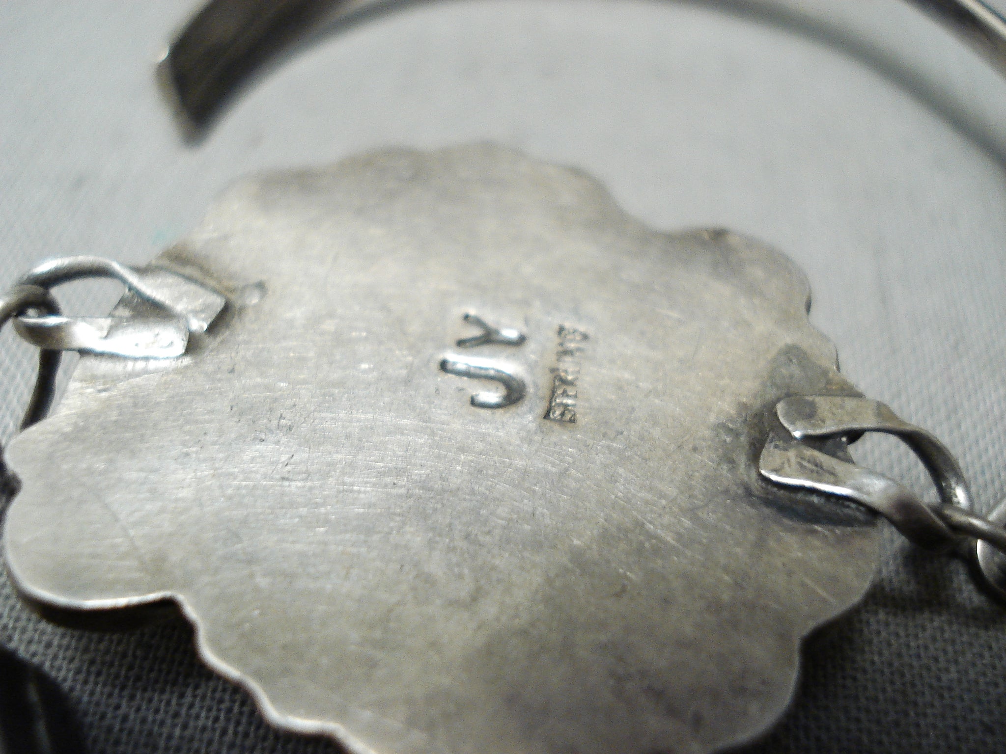 Incredible Vintage Native American Navajo Morenci Turquoise Sterling Silver Slave Bracelet