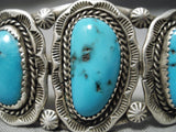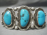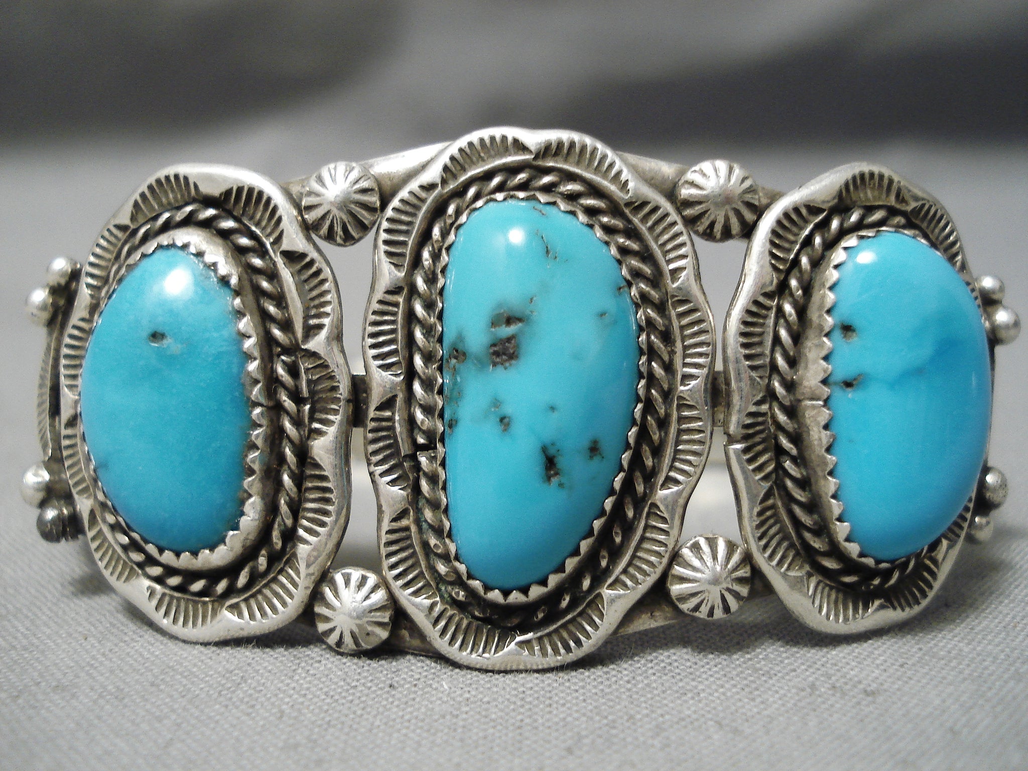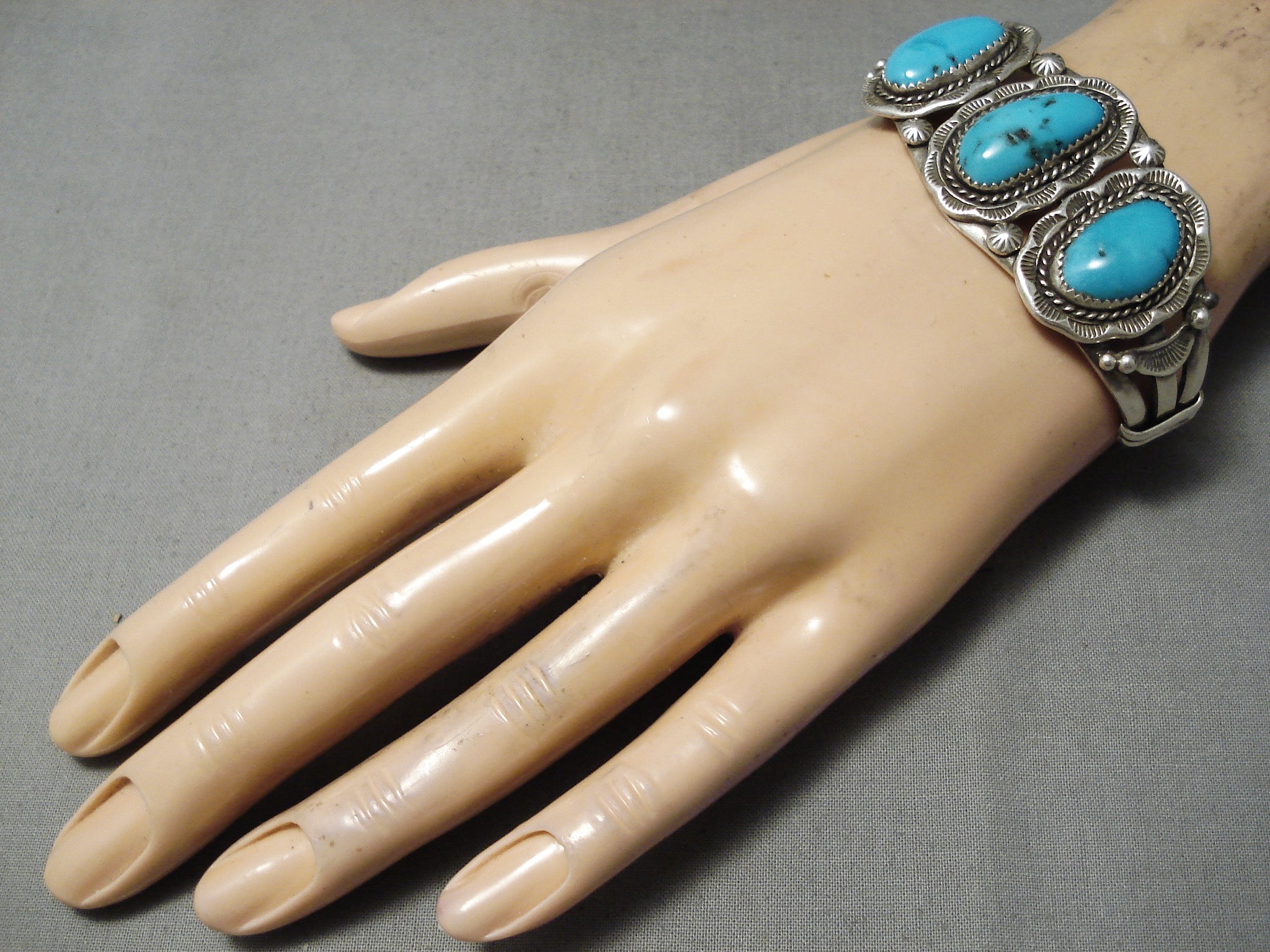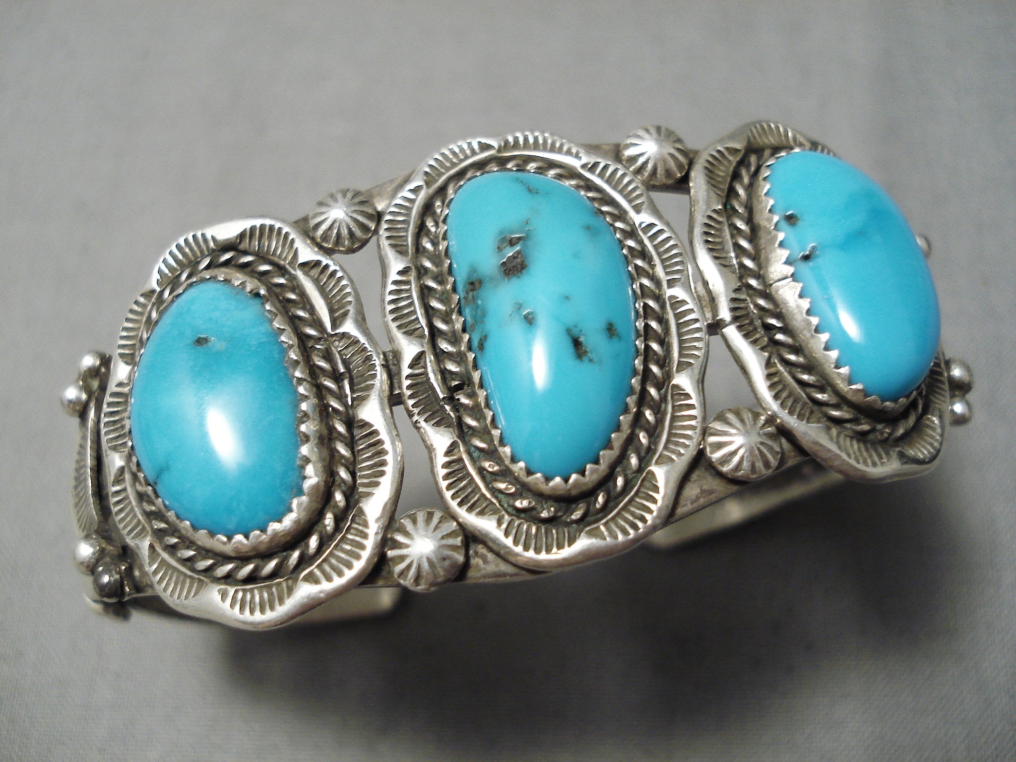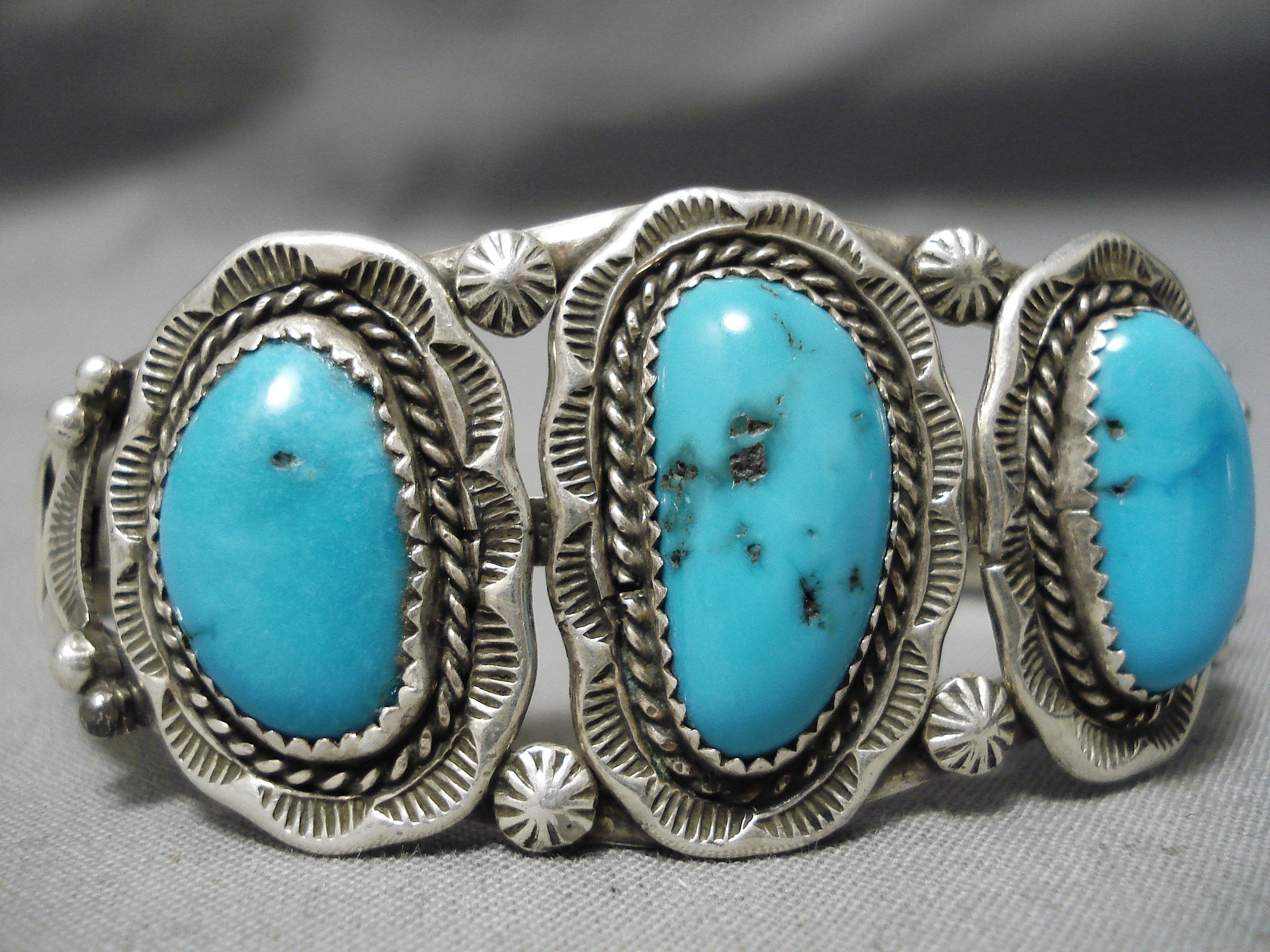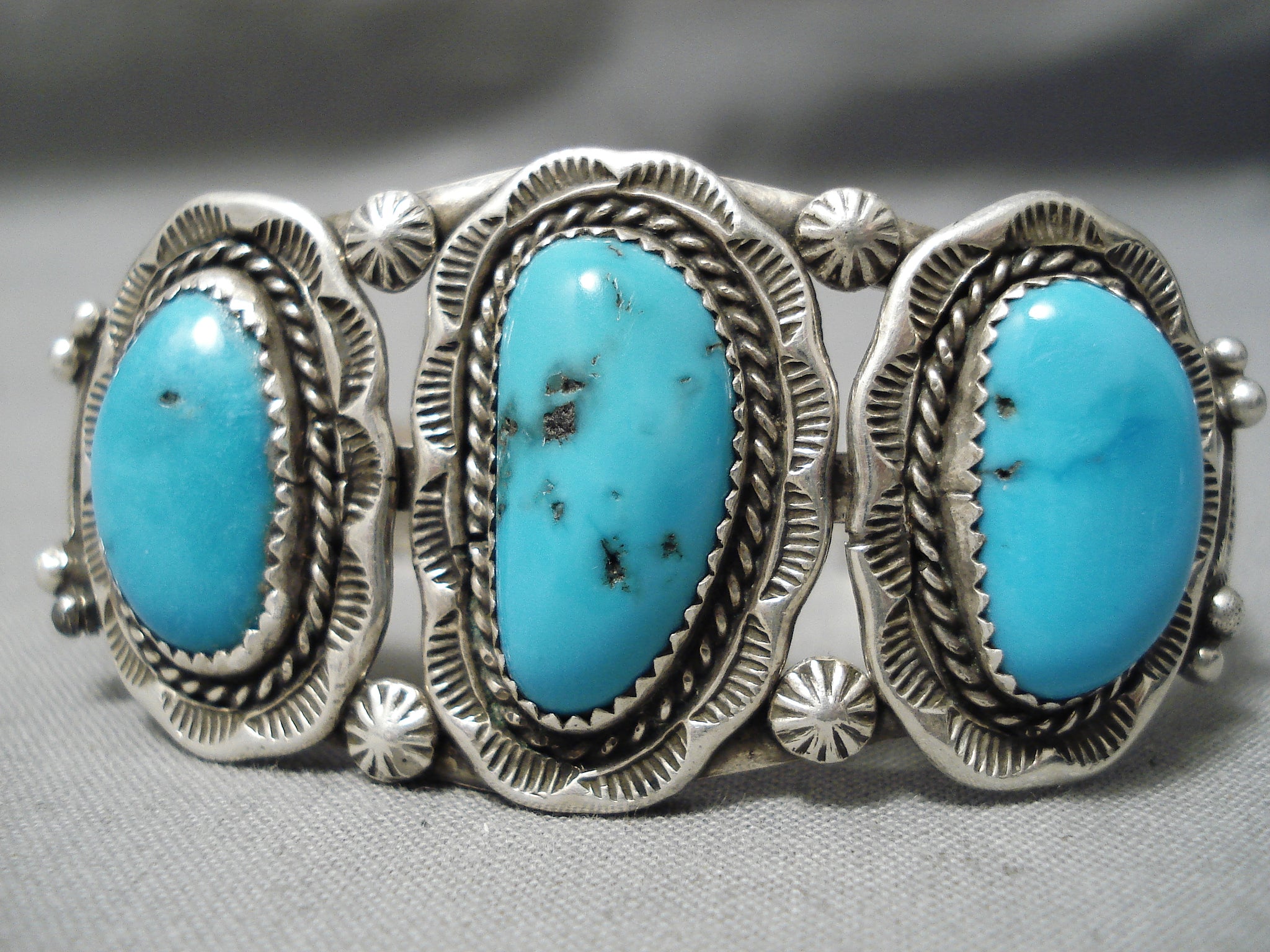 Incredible Vintage Native American Navajo Sky Blue Turquoise Sterling Silver Bracelet Old