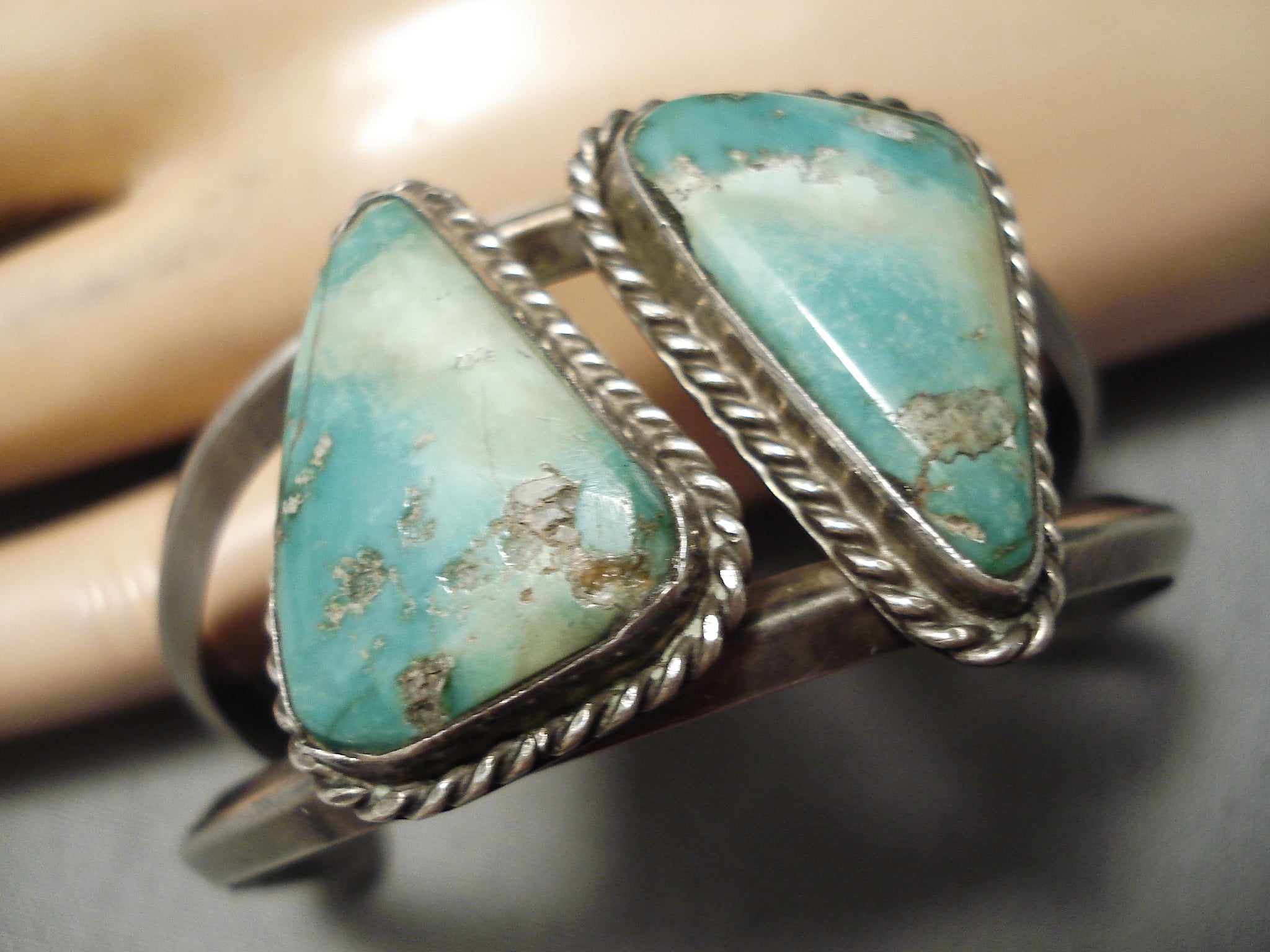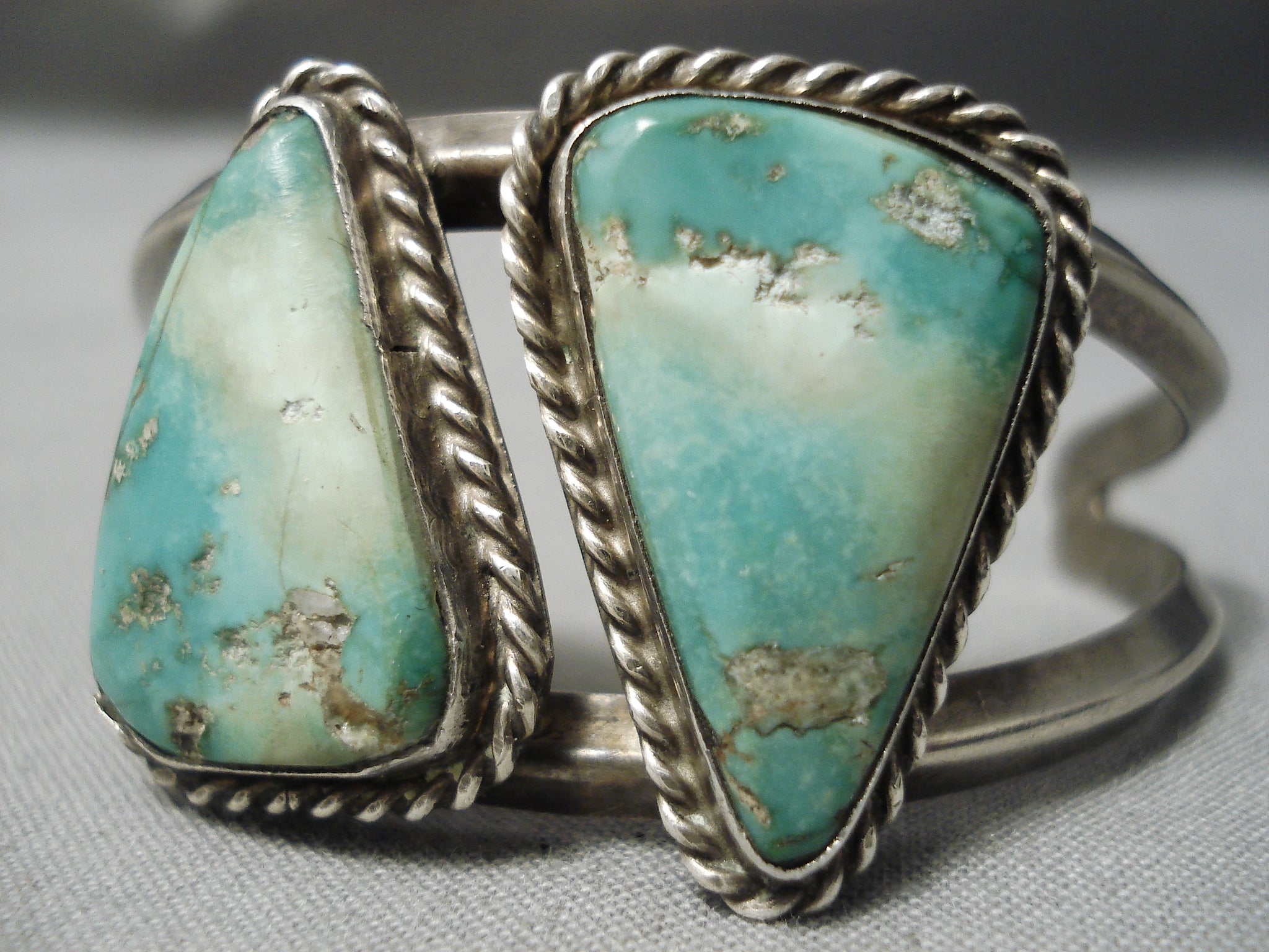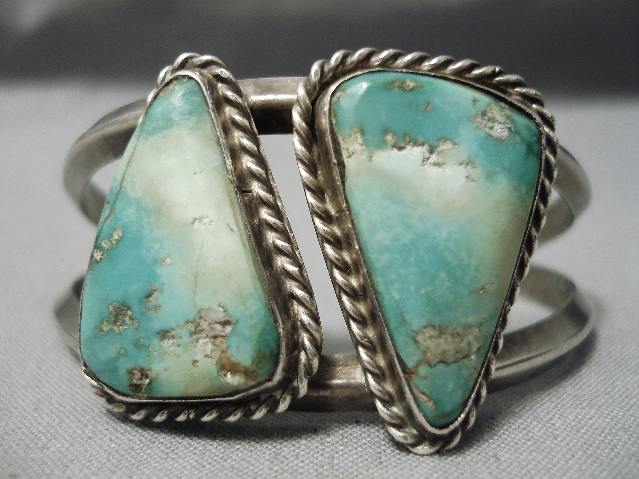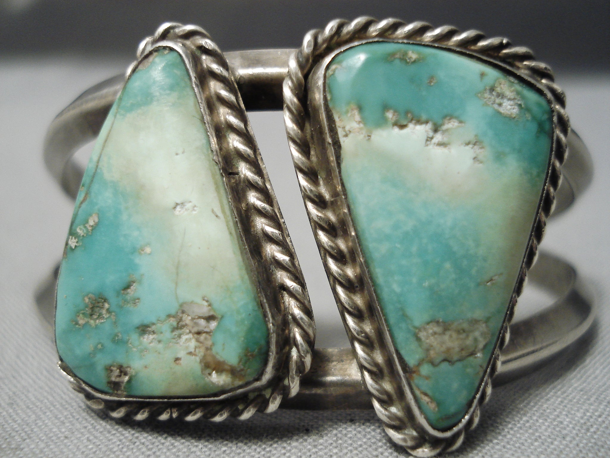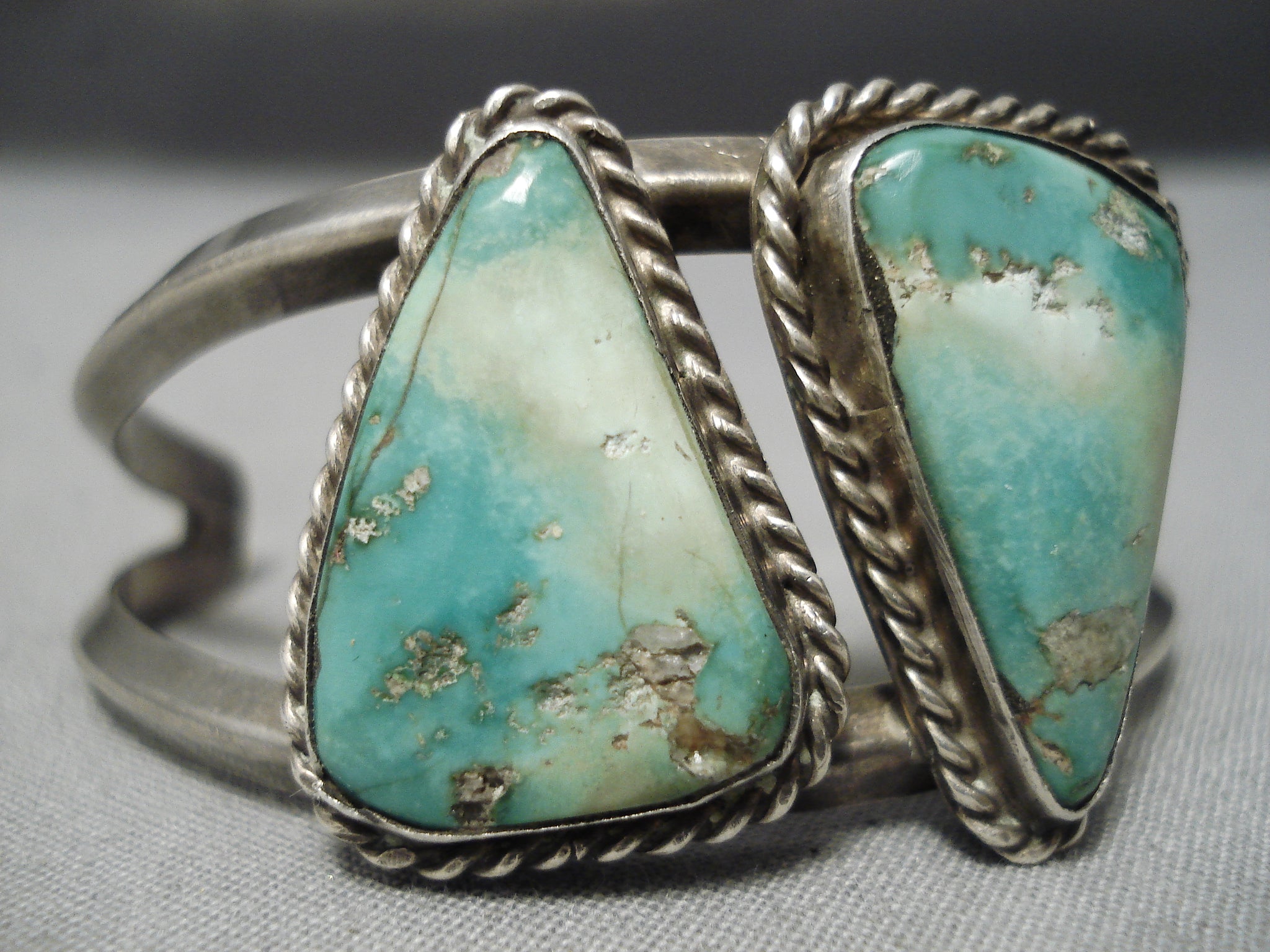 Incredible Vintage Native American Navajo Triangle Turquoise Sterling Silver Bracelet Old
