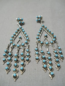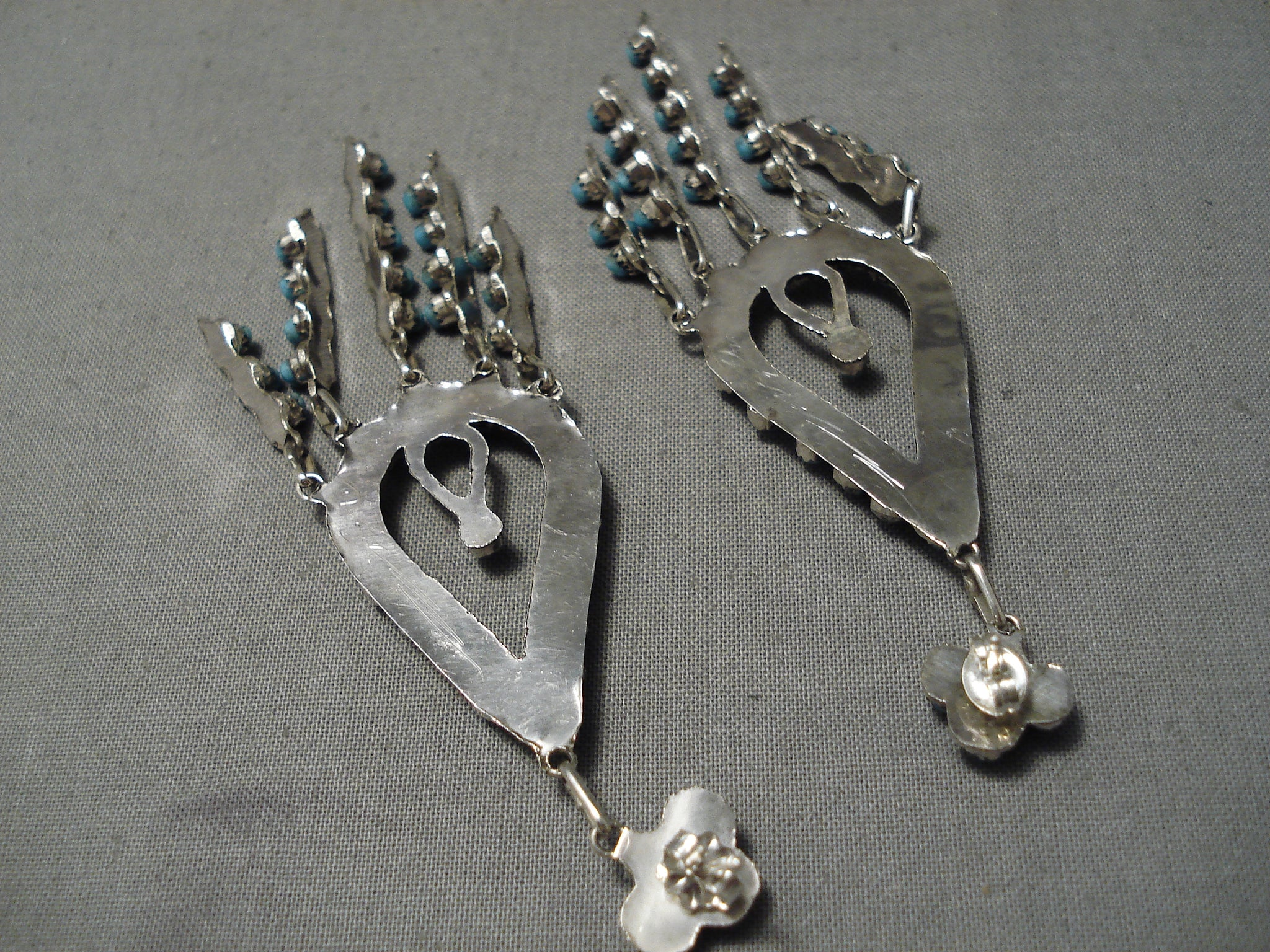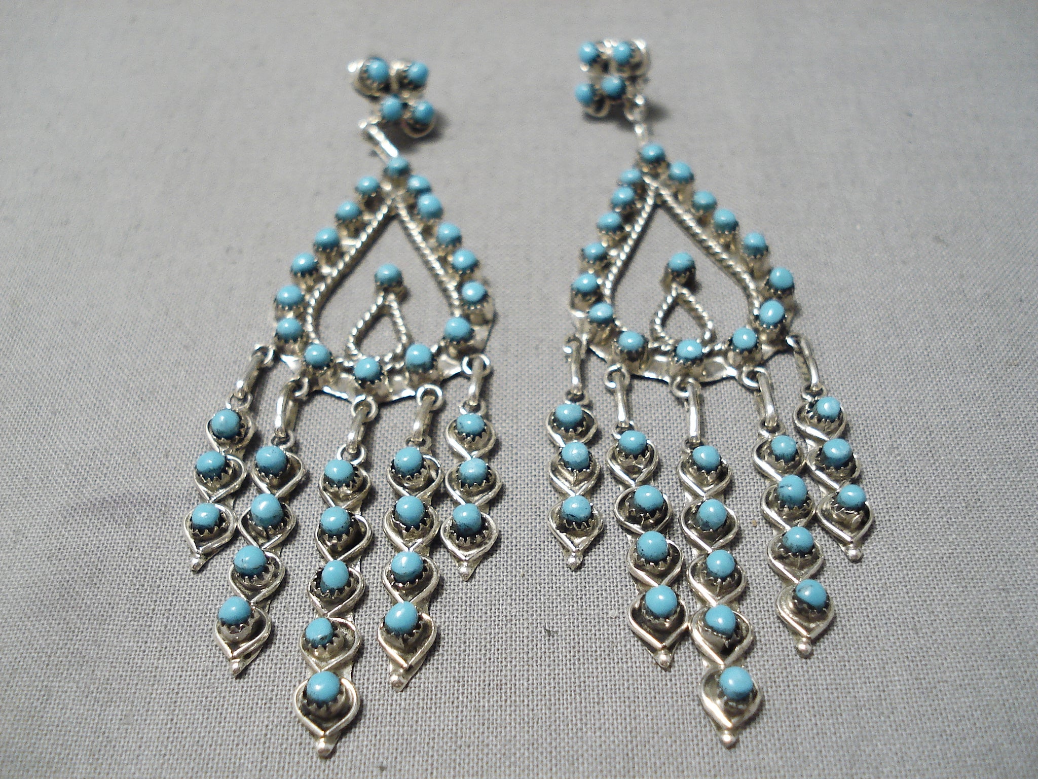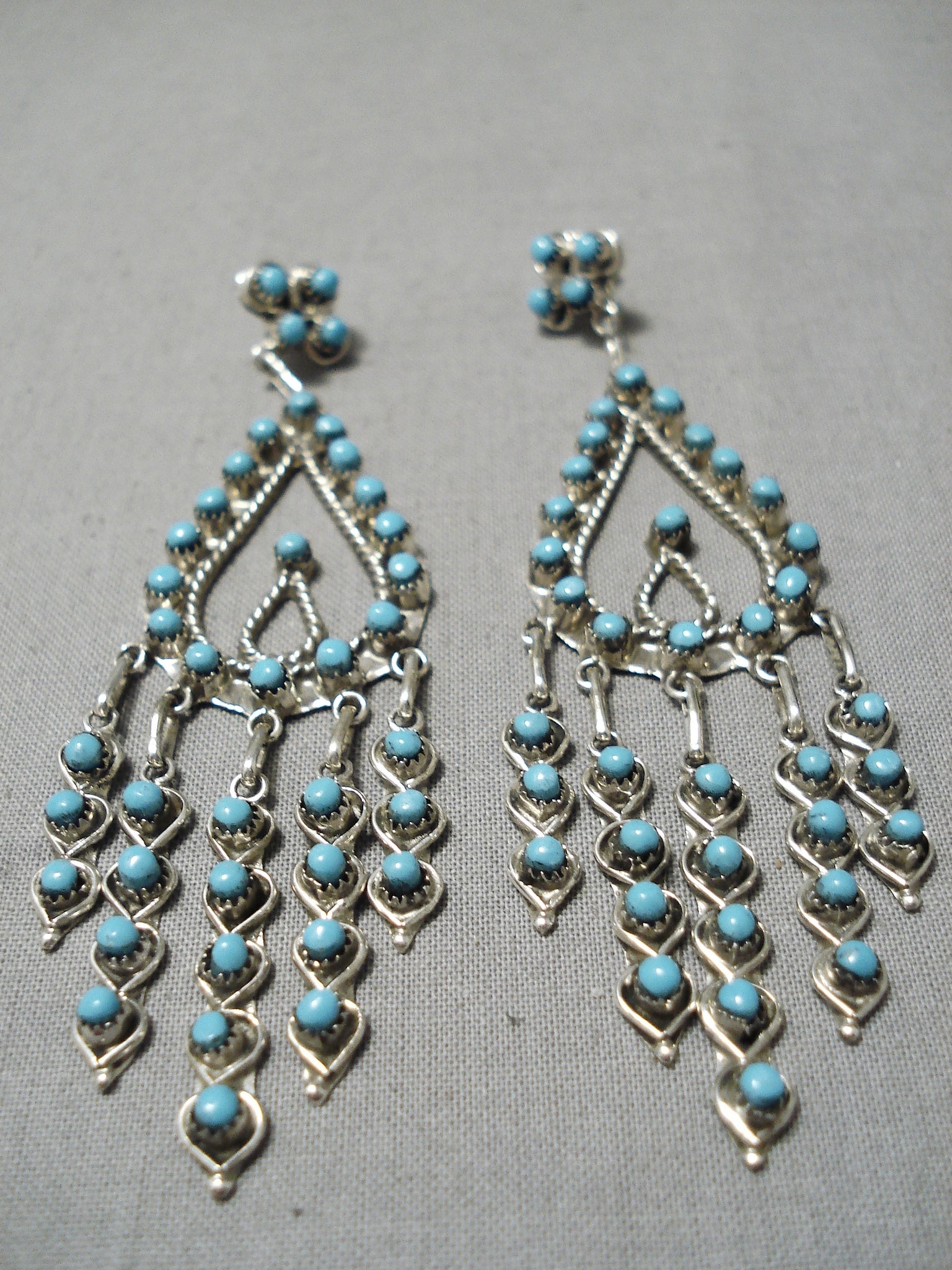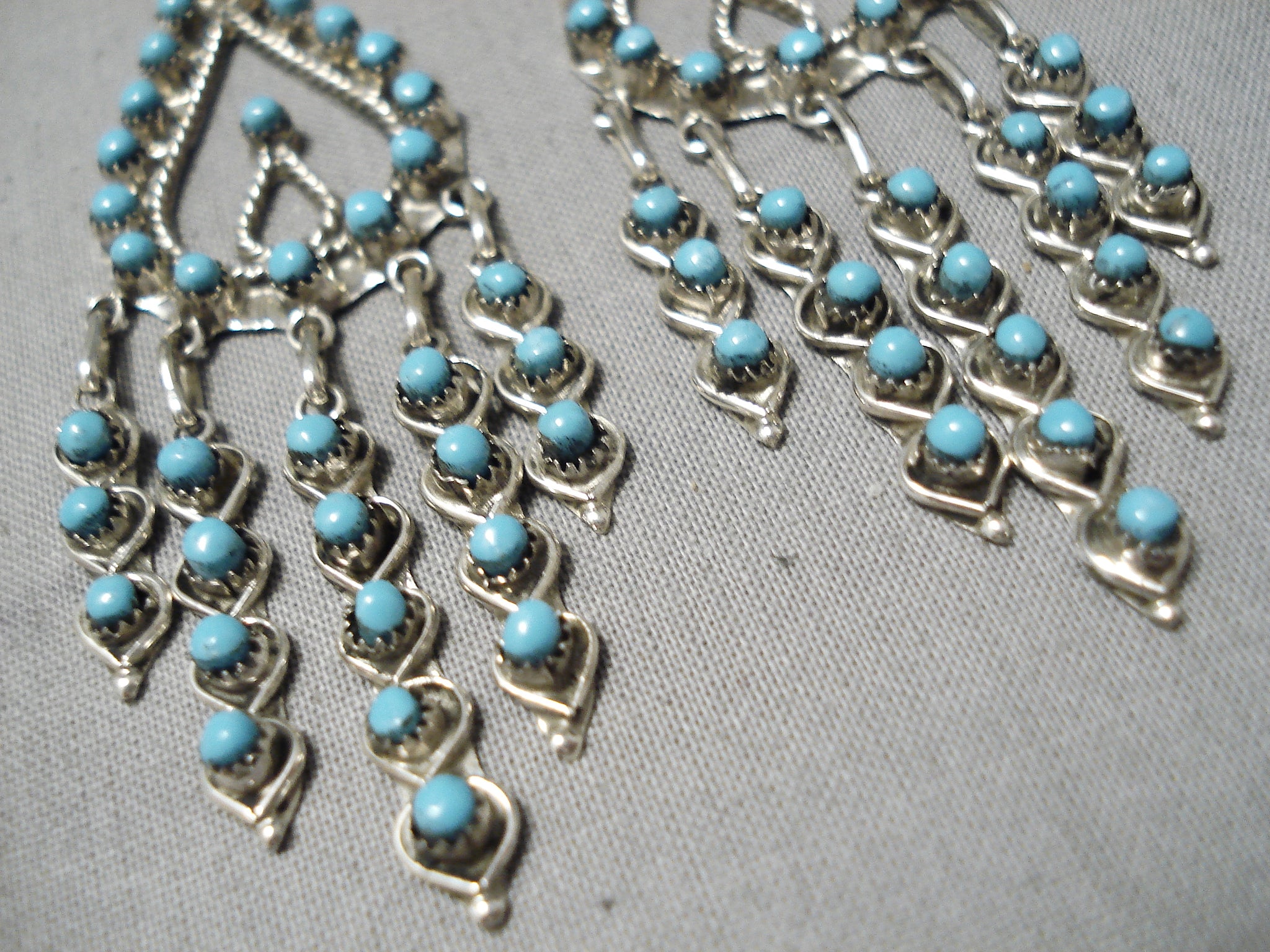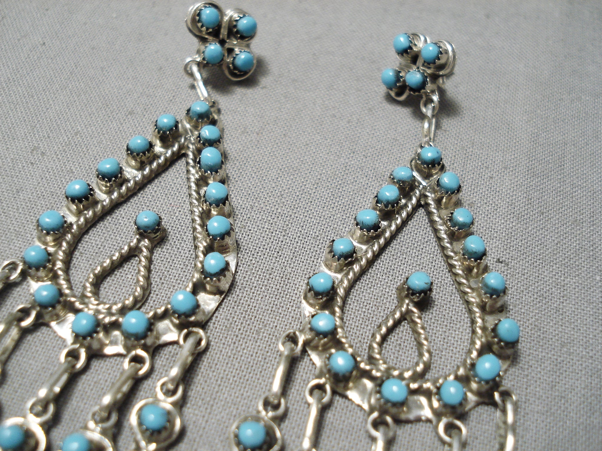 Incredible Vintage Native American Zuni American Blue Gem Turquoise Sterling Silver Earrings