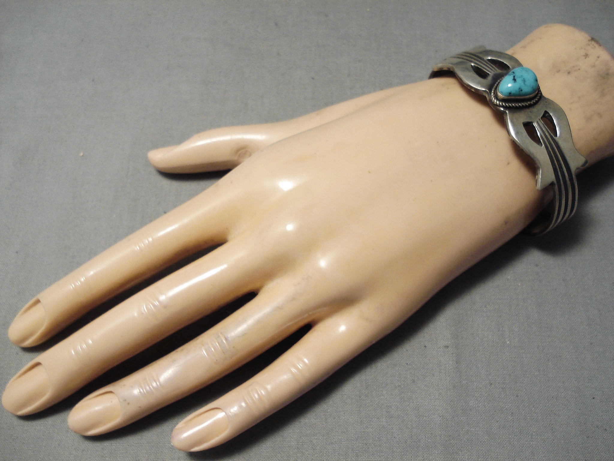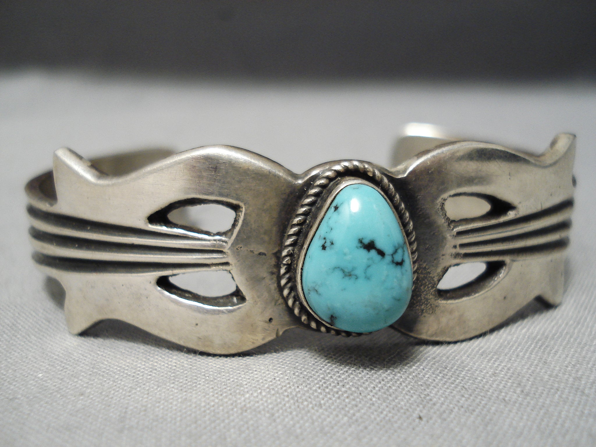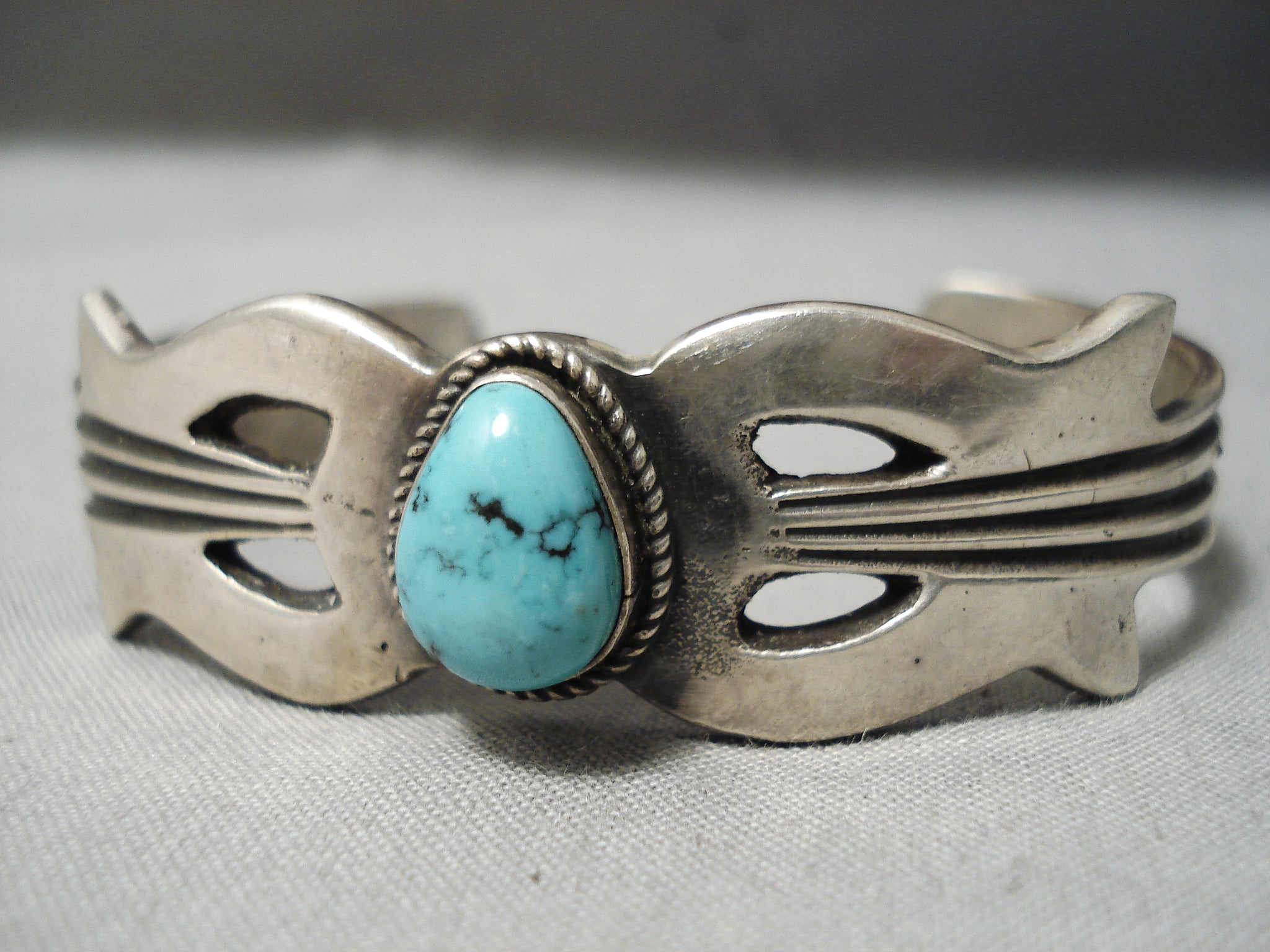 Incredible Vintage Native American Zuni Sterling Silver Blue Diamond Turquoise Bracelet