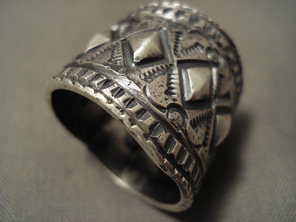 Intense And Intricate Navajo All Native American Jewelry Silver Repoussed Ring