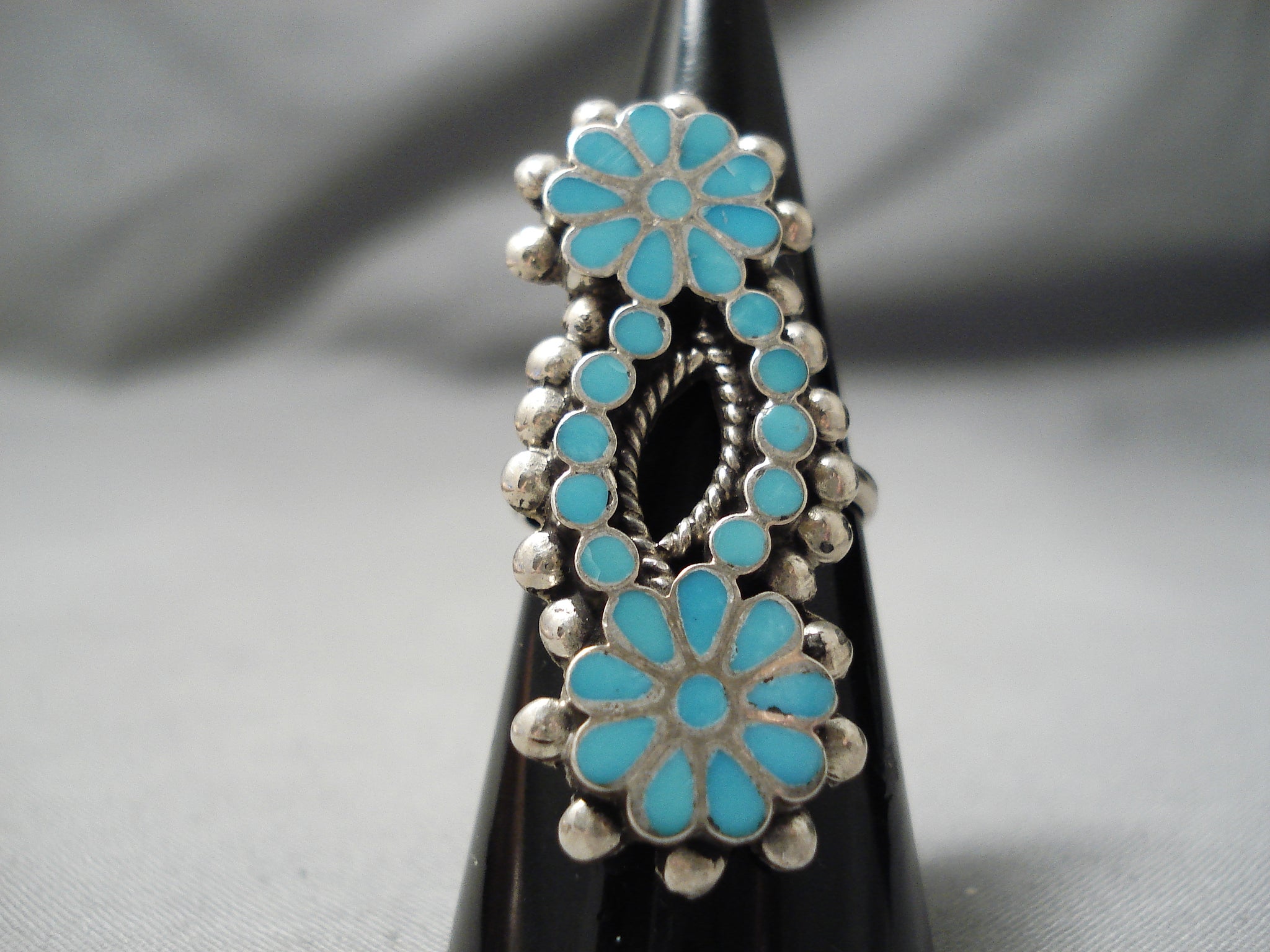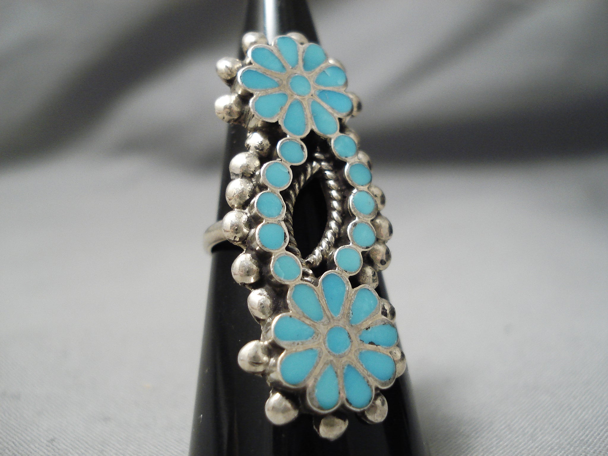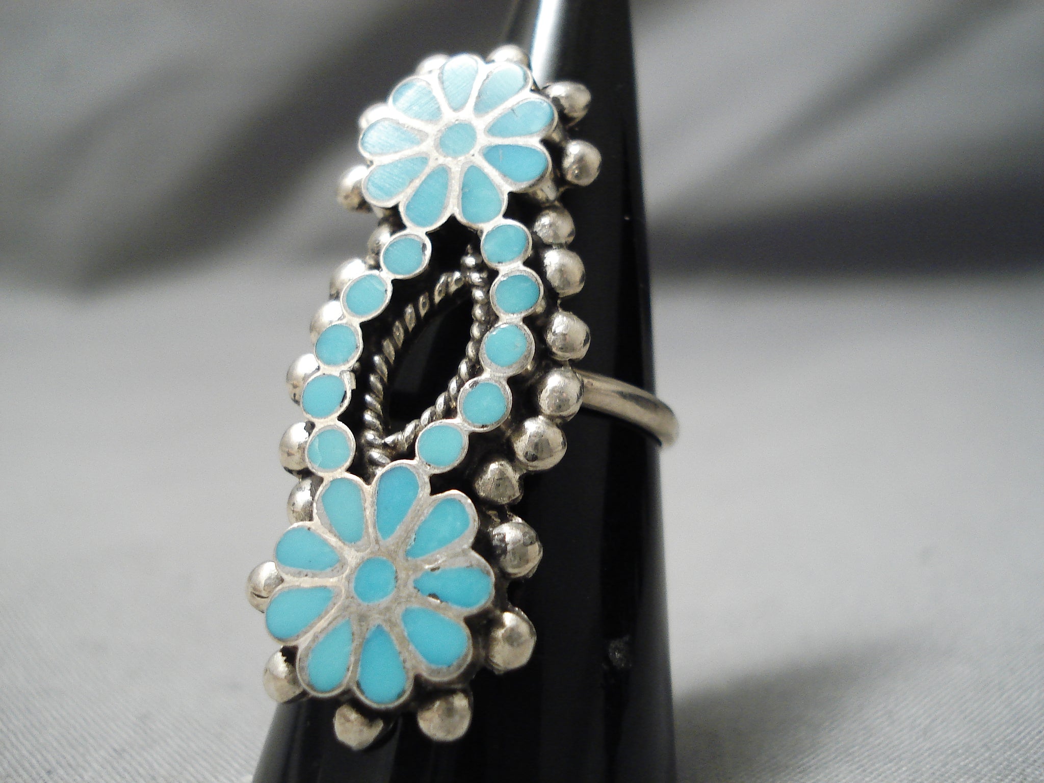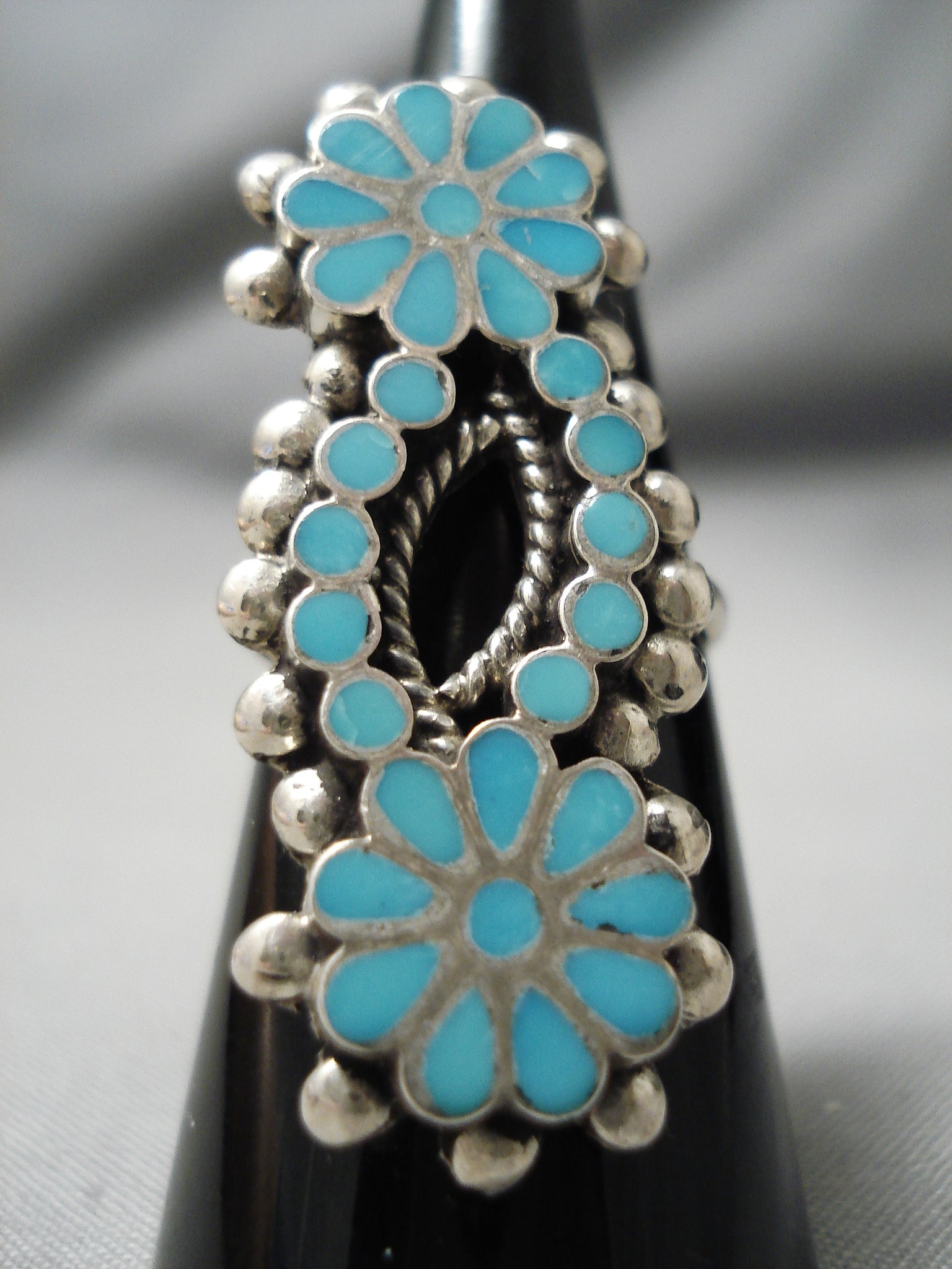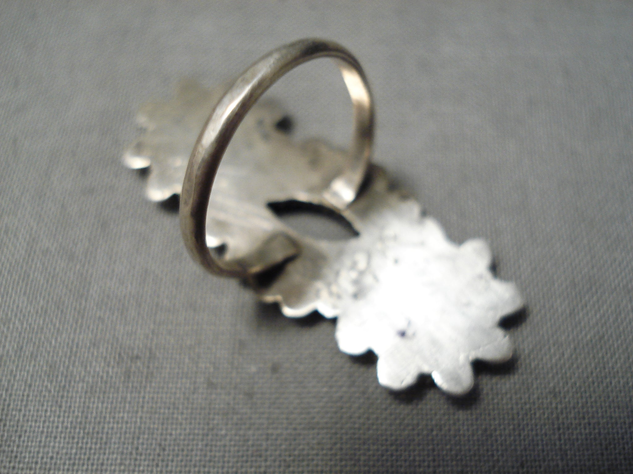 Intricate Important Vintage Zuni Native American Turquoise Sterling Silver Ring
