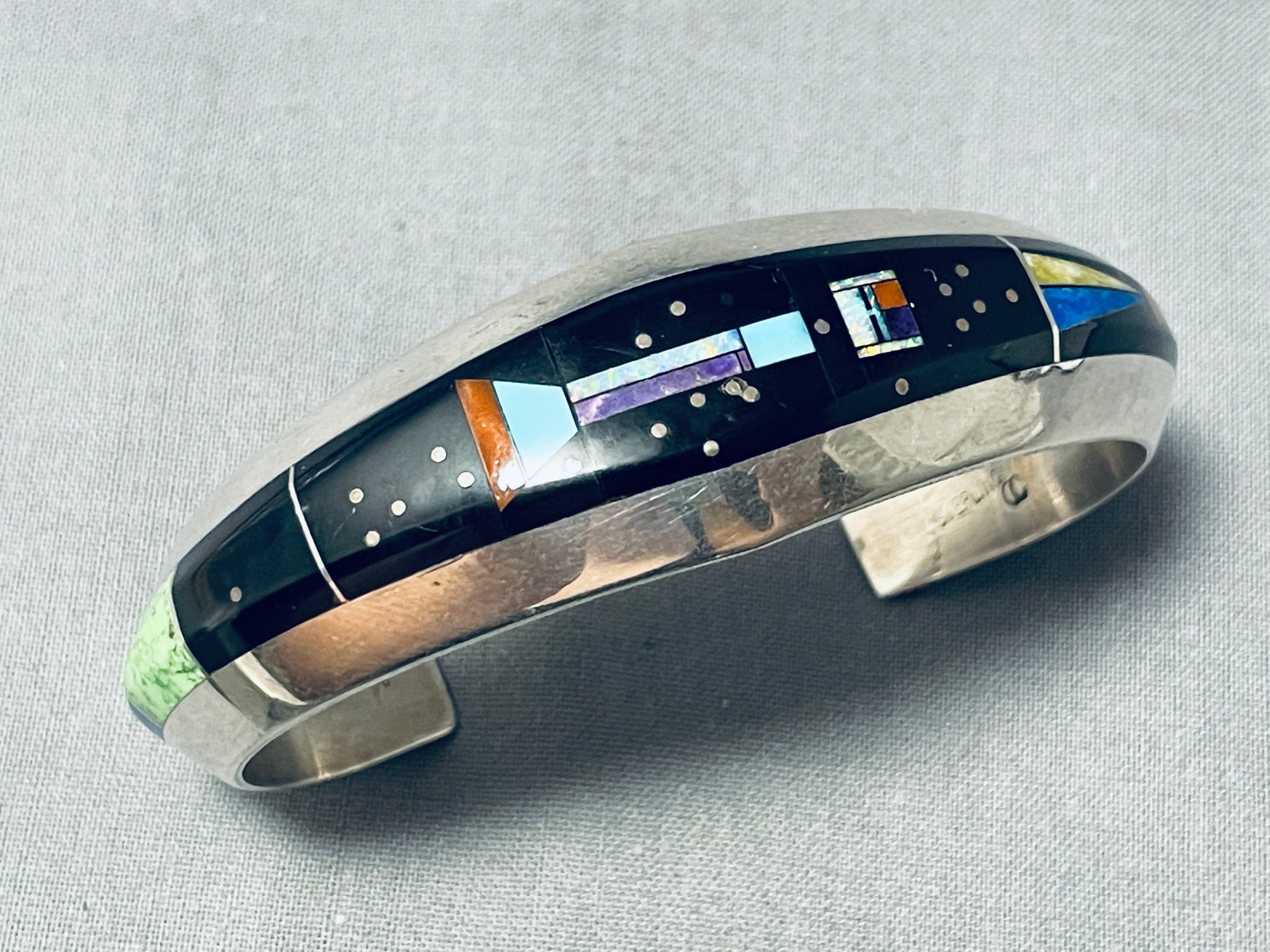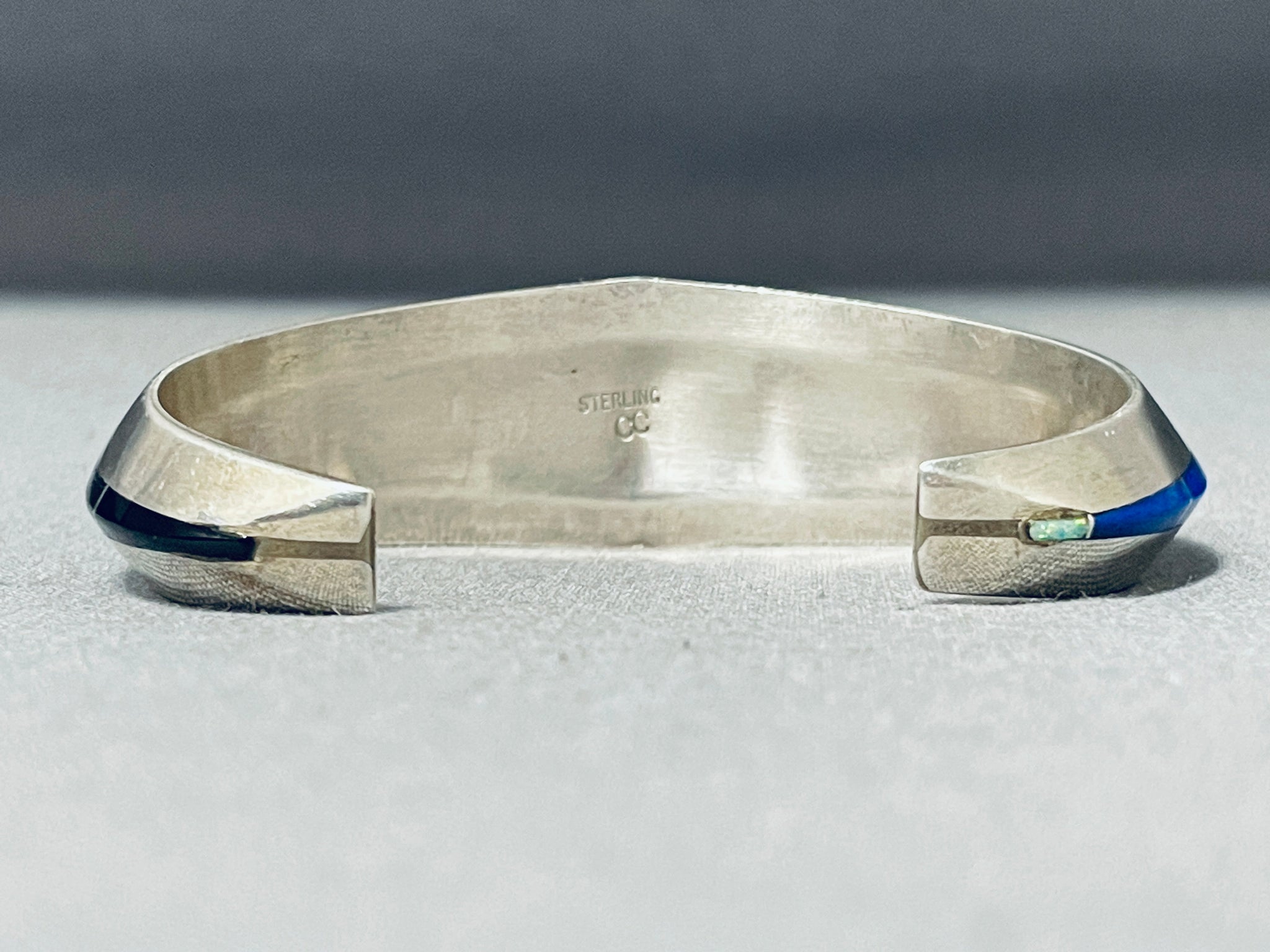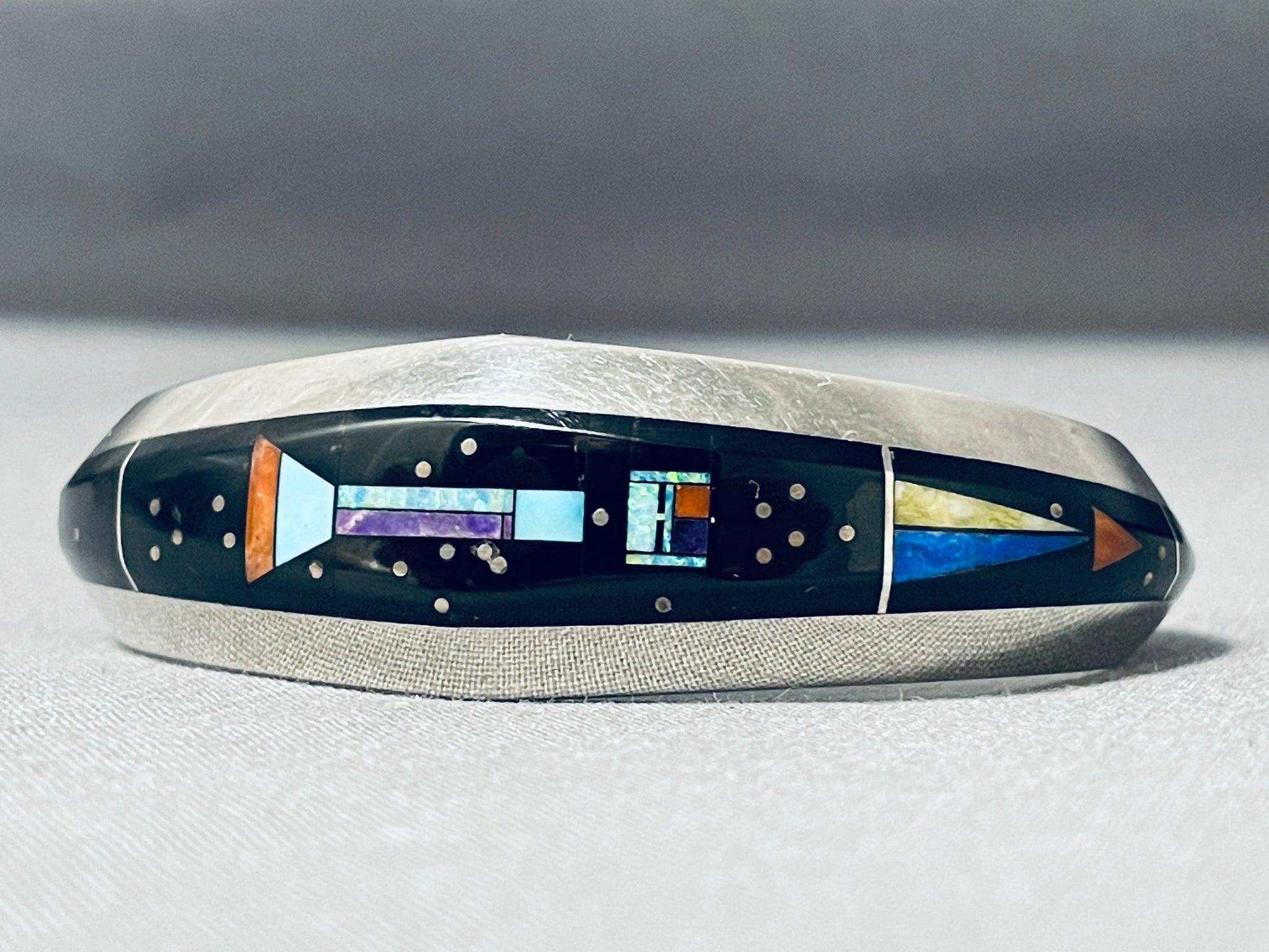 Intricate Space Kachina Turquoise Native American Navajo Sterling Silver Bracelet